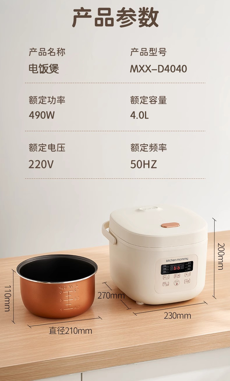厨创妈咪(kitchen mommy) MXX-D4040 4L 4L大容量电饭煲 白色(单位:台)