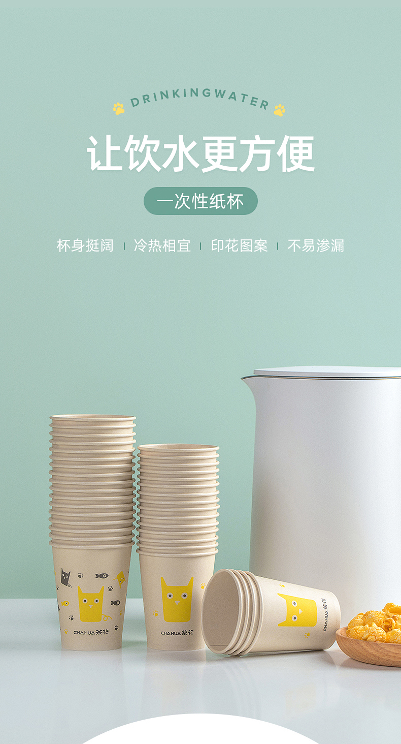 茶花(CHAHUA) 一次性纸杯子 225ml40只/包 一次性纸杯子 混色(单位:包)
