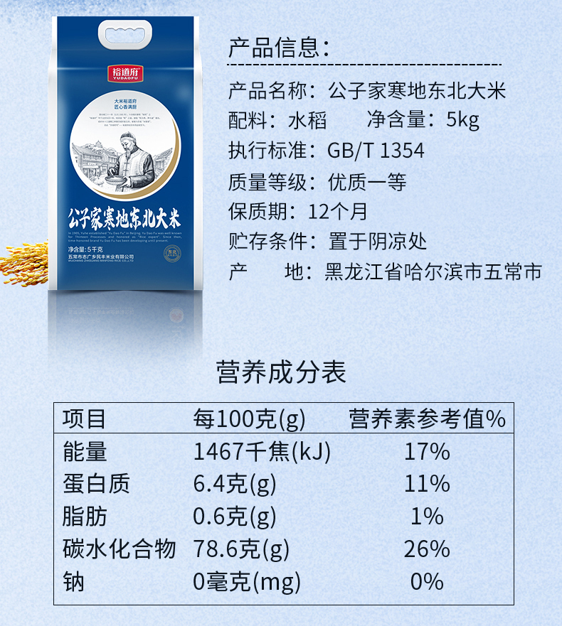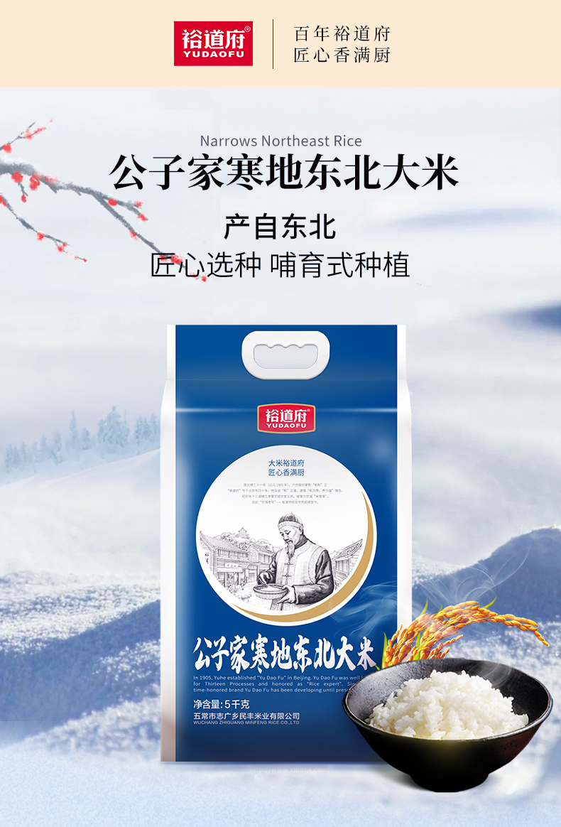 裕道府寒地东北大米5kg 单位:袋 深蓝色