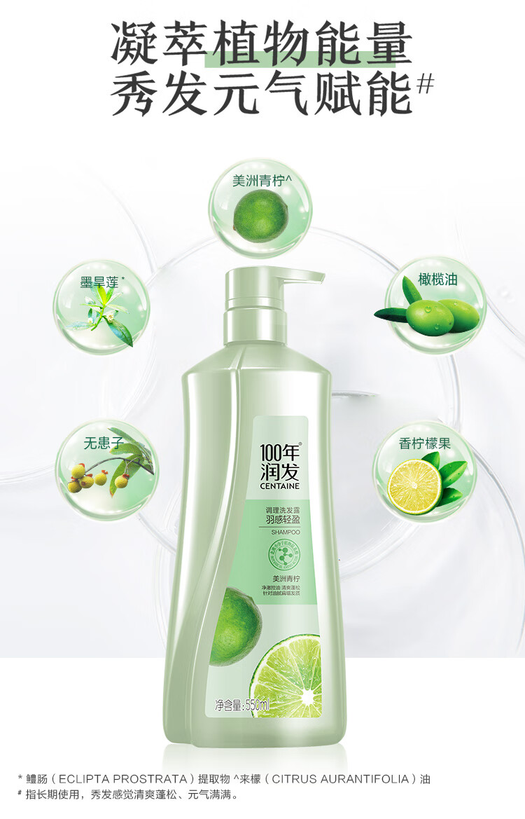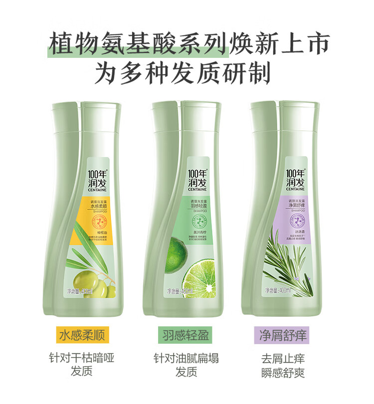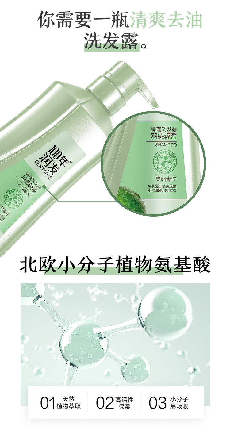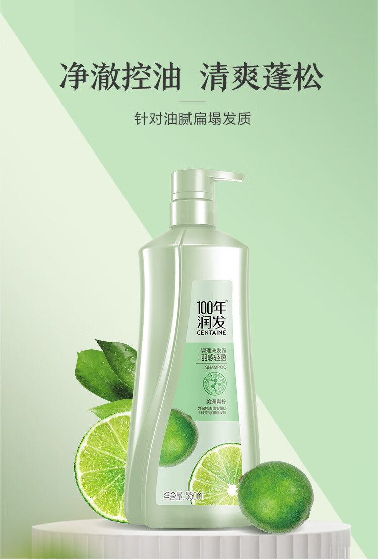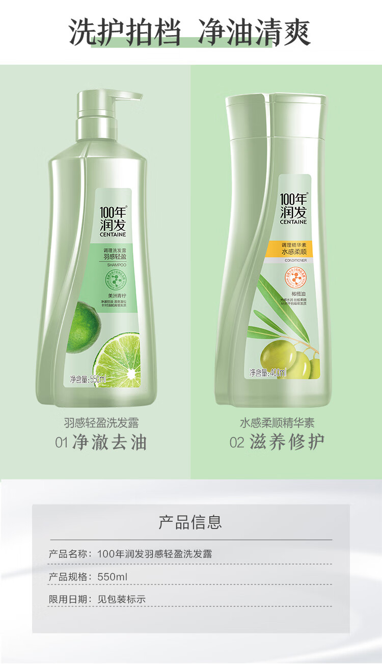 100年润发洗发水羽感轻盈男女士养护发氨基酸洗发露液头水膏百年润发550ml