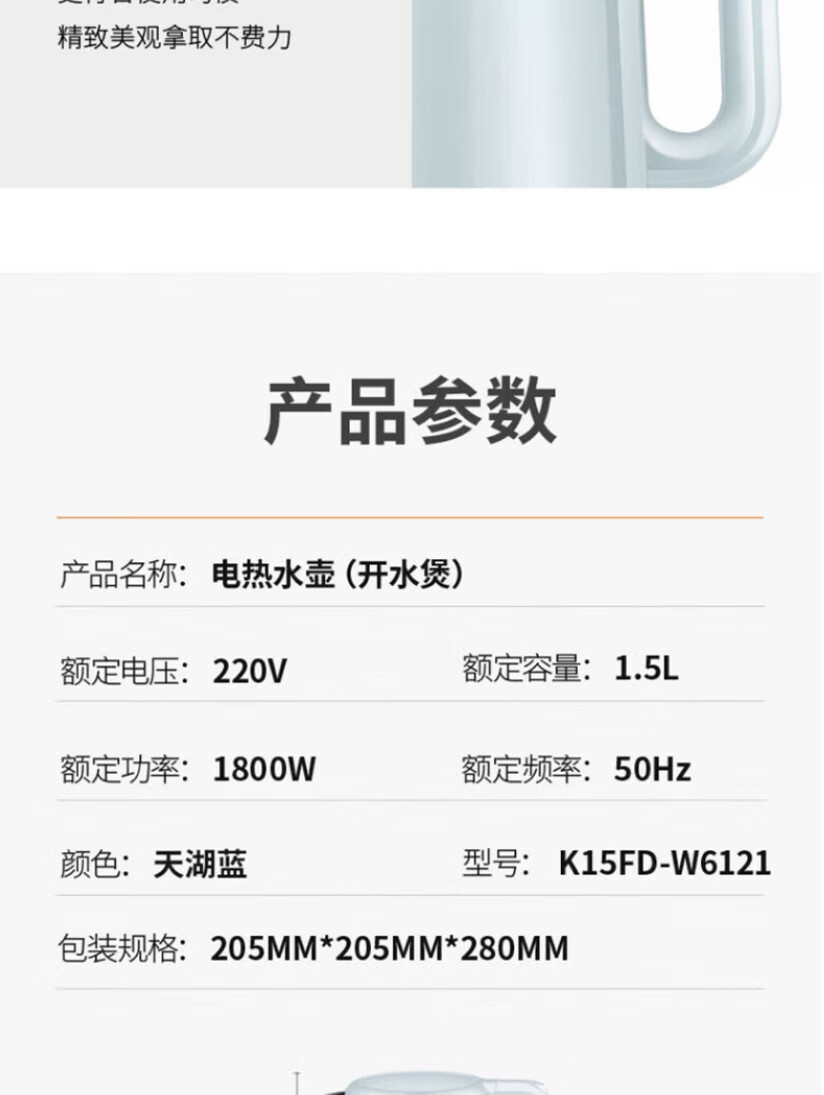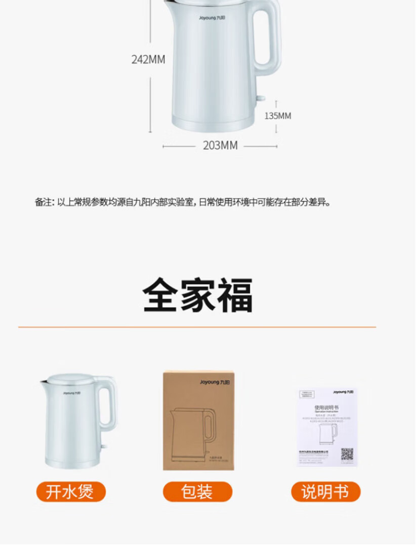 九阳(Joyoung) K15FD-W6121 1.5L 电热水壶 蓝色(单位:台)