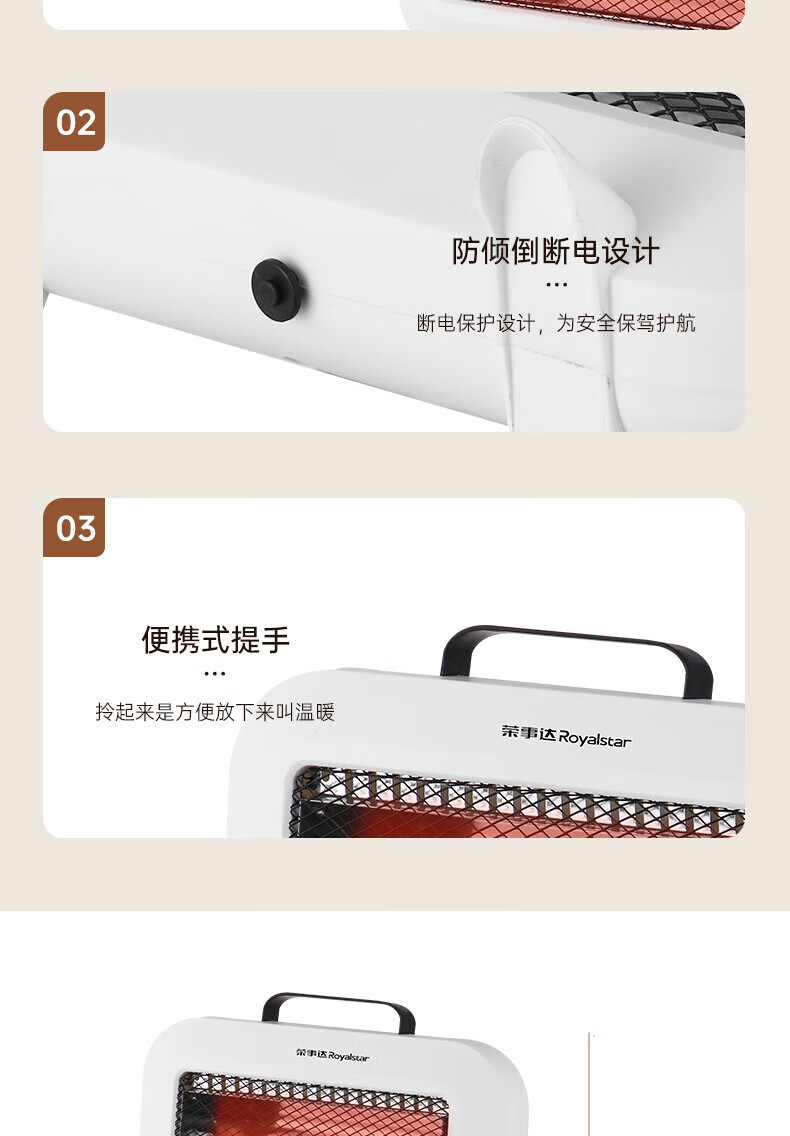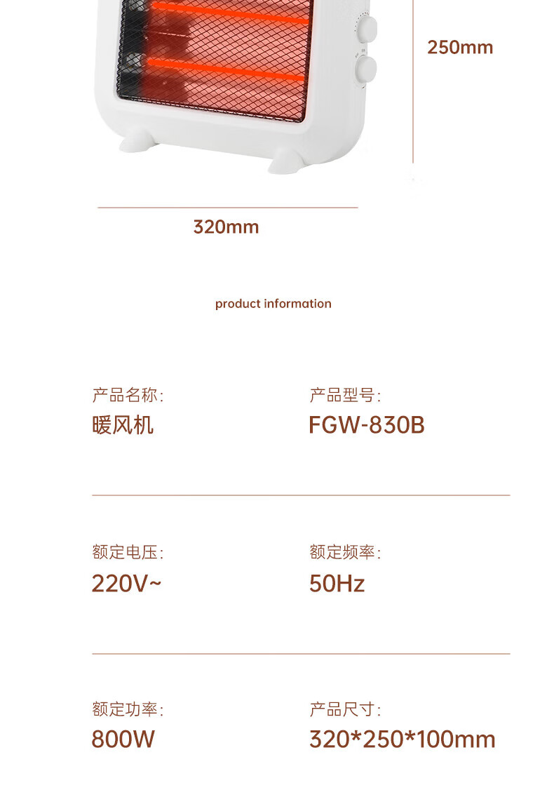 荣事达(Royalstar) FGW-830B 800W 大功率取暖器 白色(单位:个)