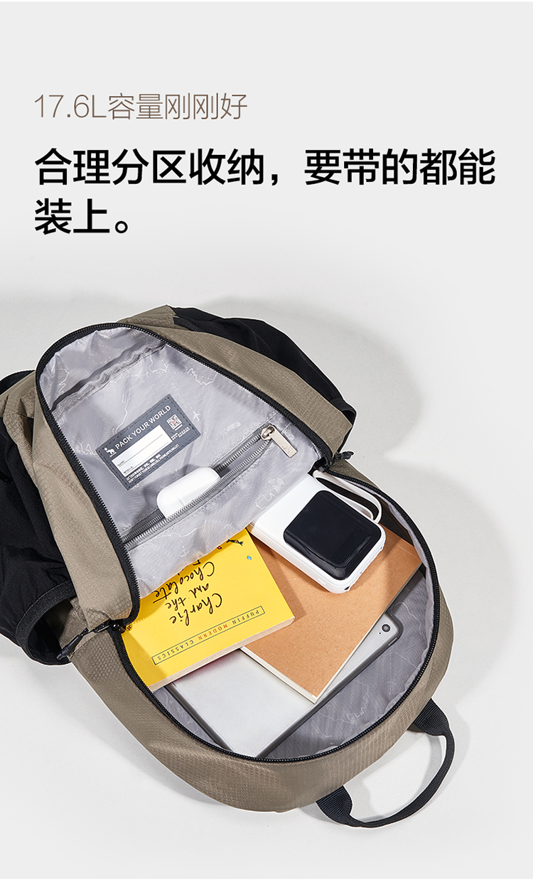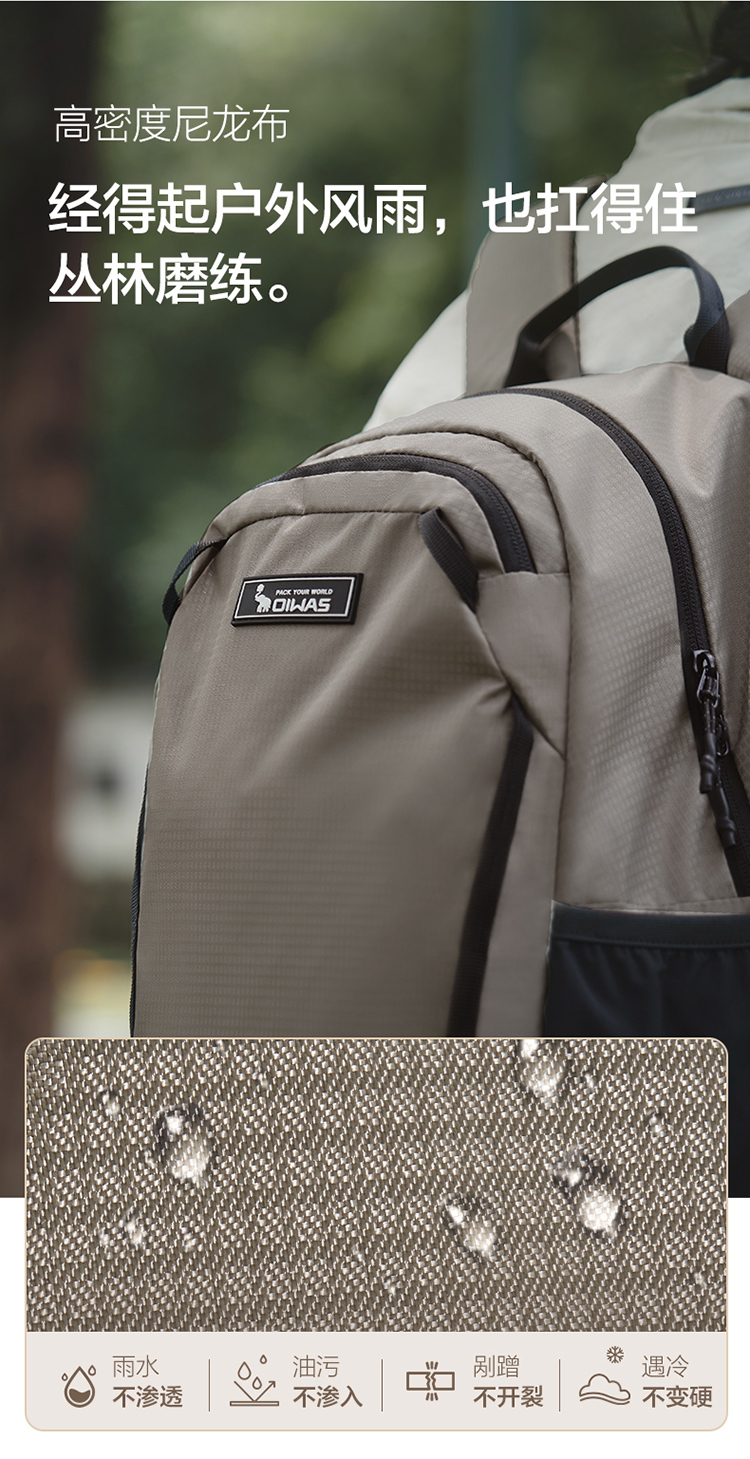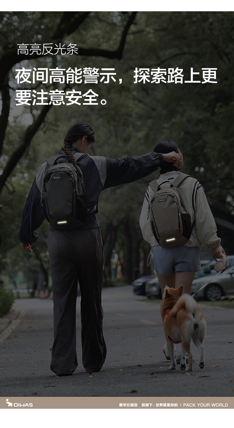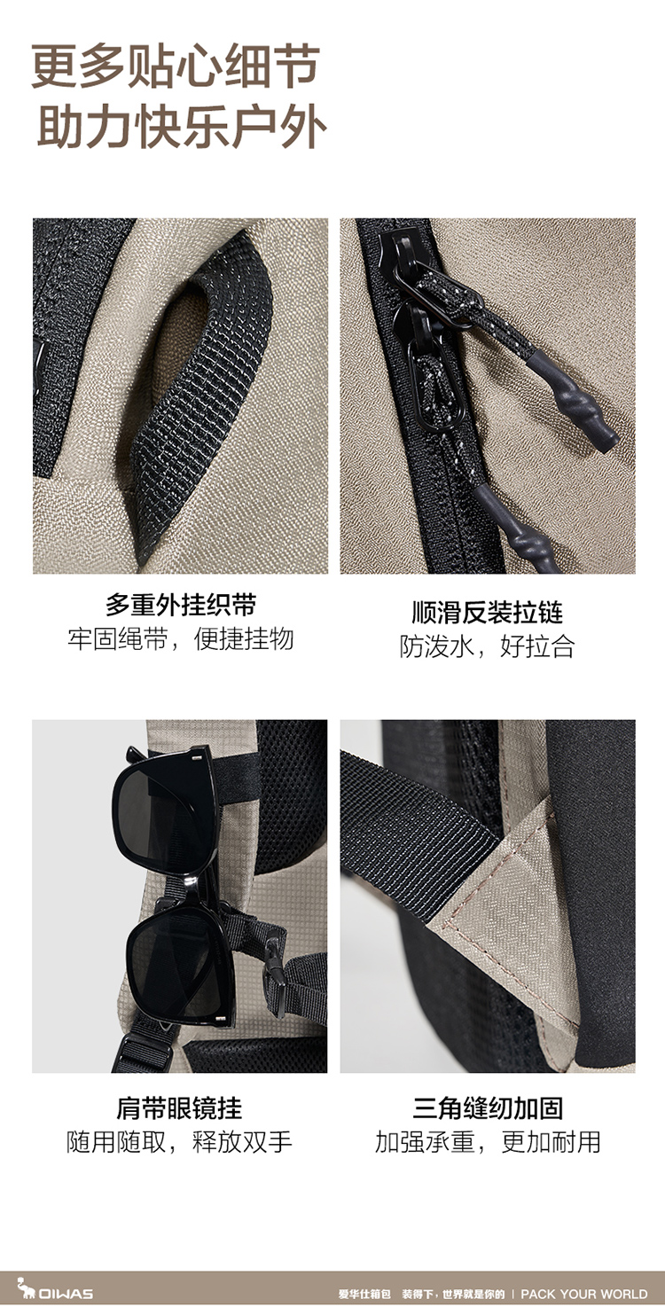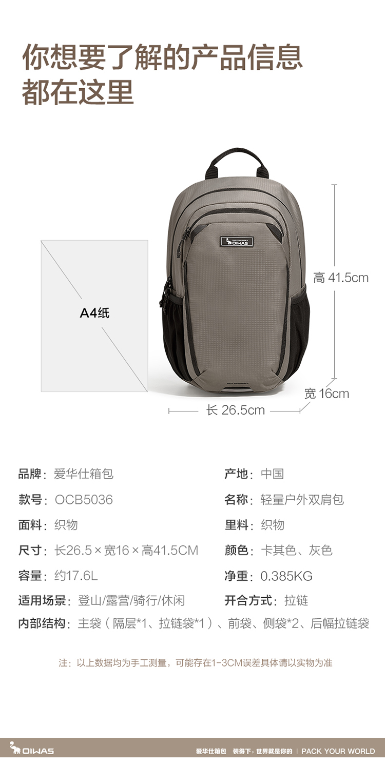爱华仕(OIWAS) OCB5036 26.5*16*41.5cm 轻盈透气书包防泼水 卡其色(单位:个)