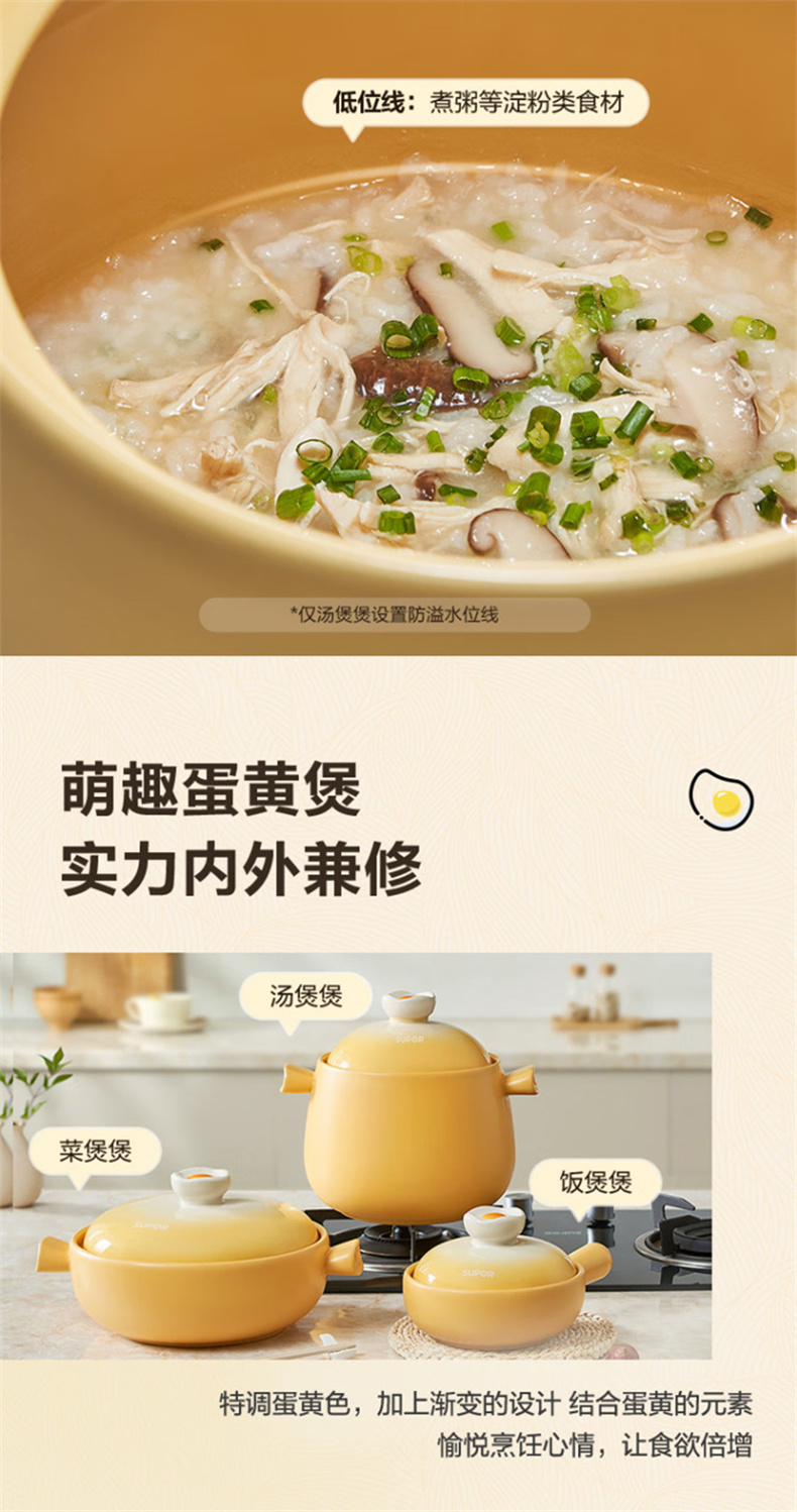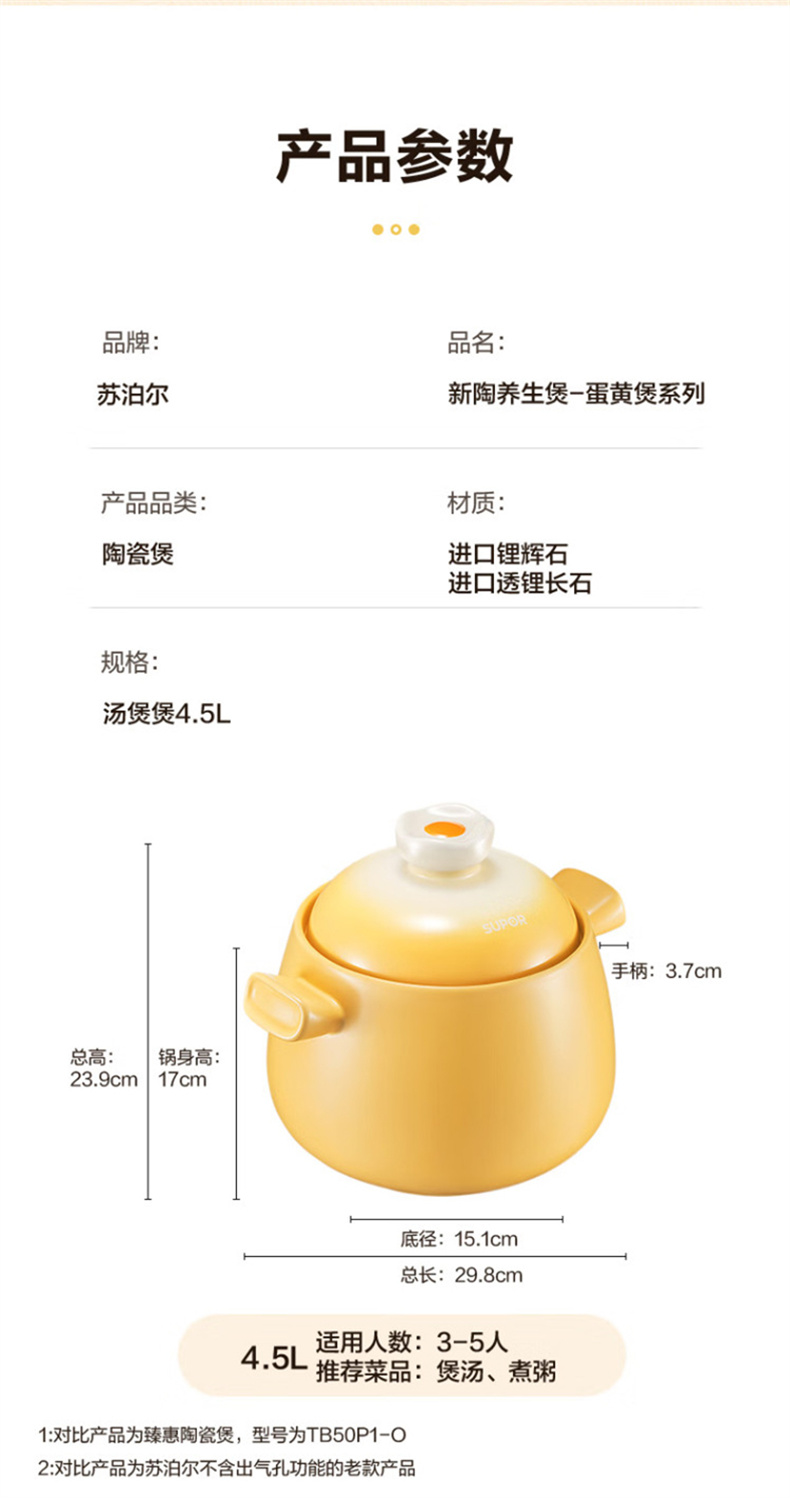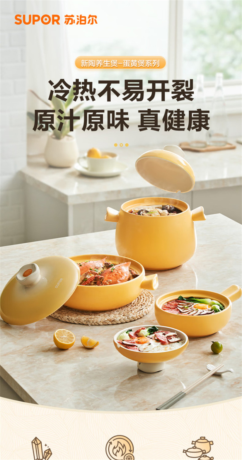 苏泊尔(SUPOR) EB45WT01 4.5L 新陶养生煲·蛋黄煲 蛋黄色(单位:个)