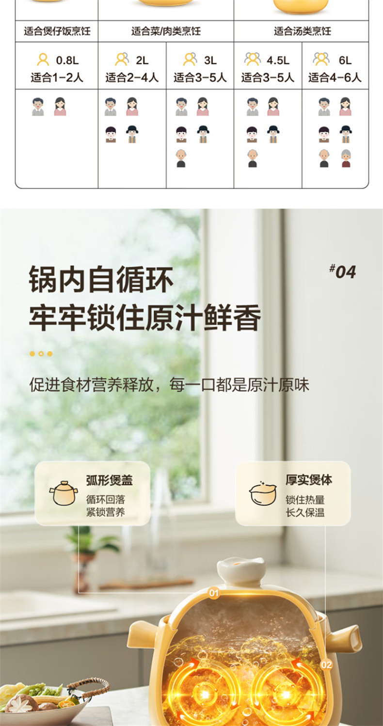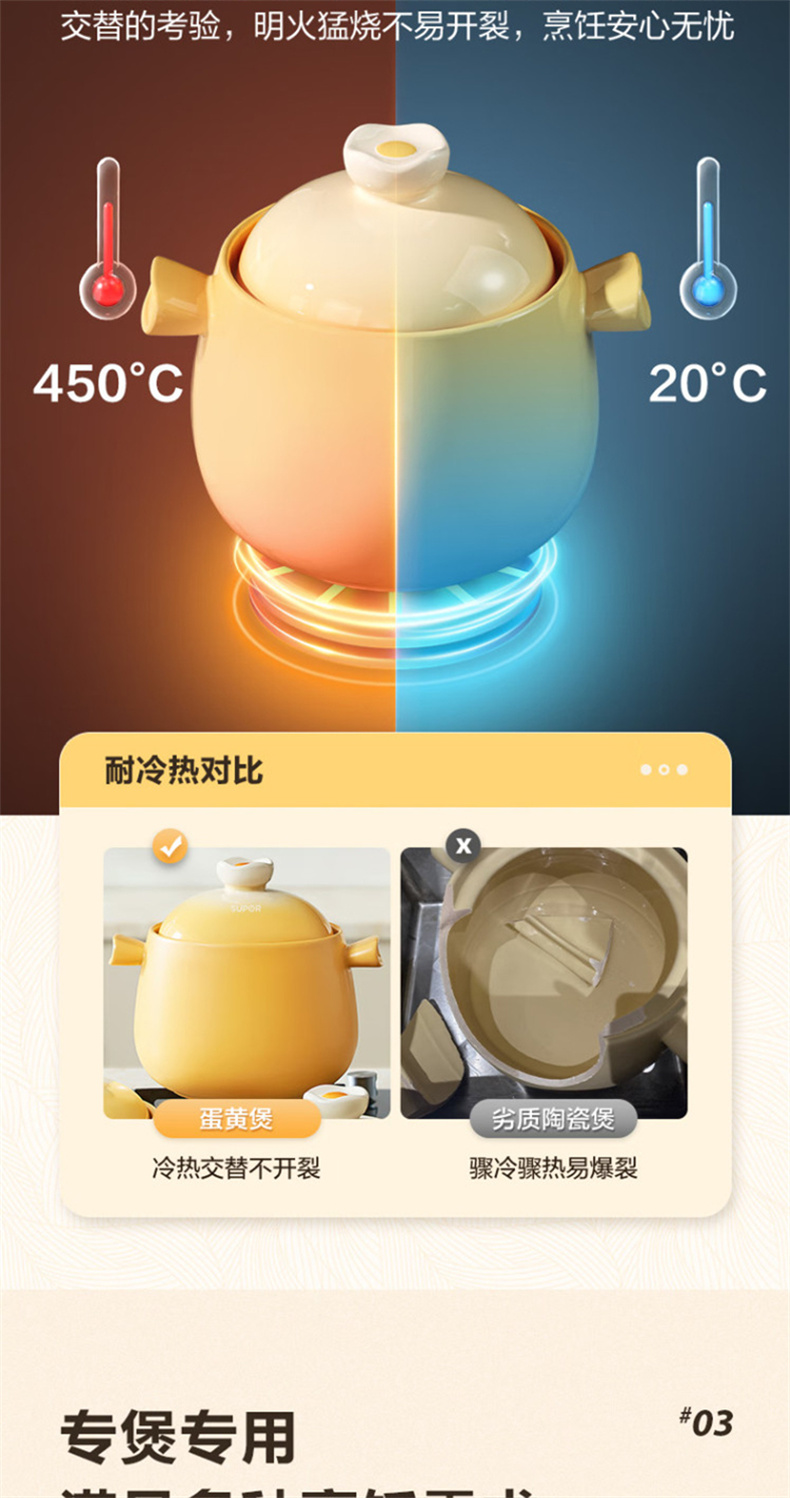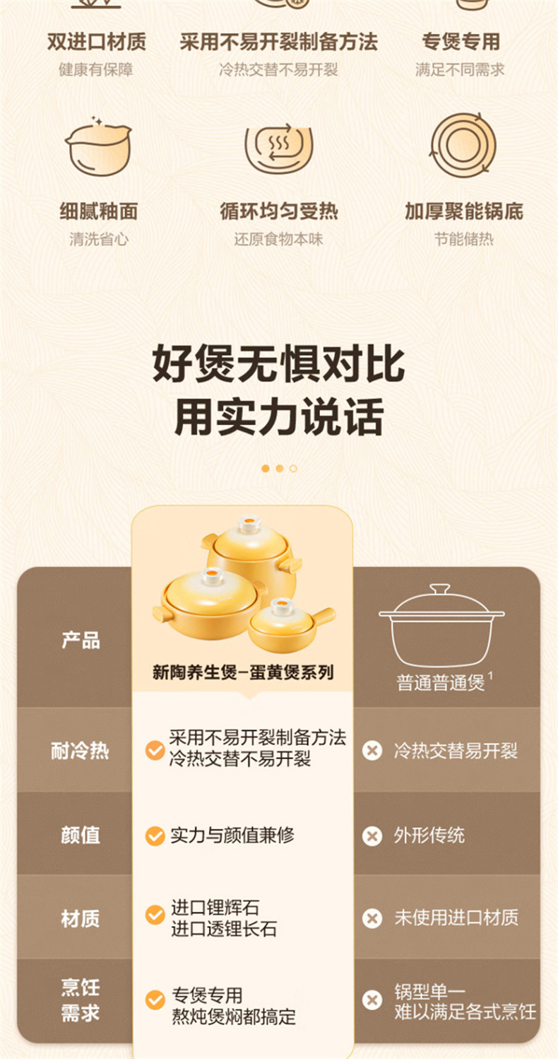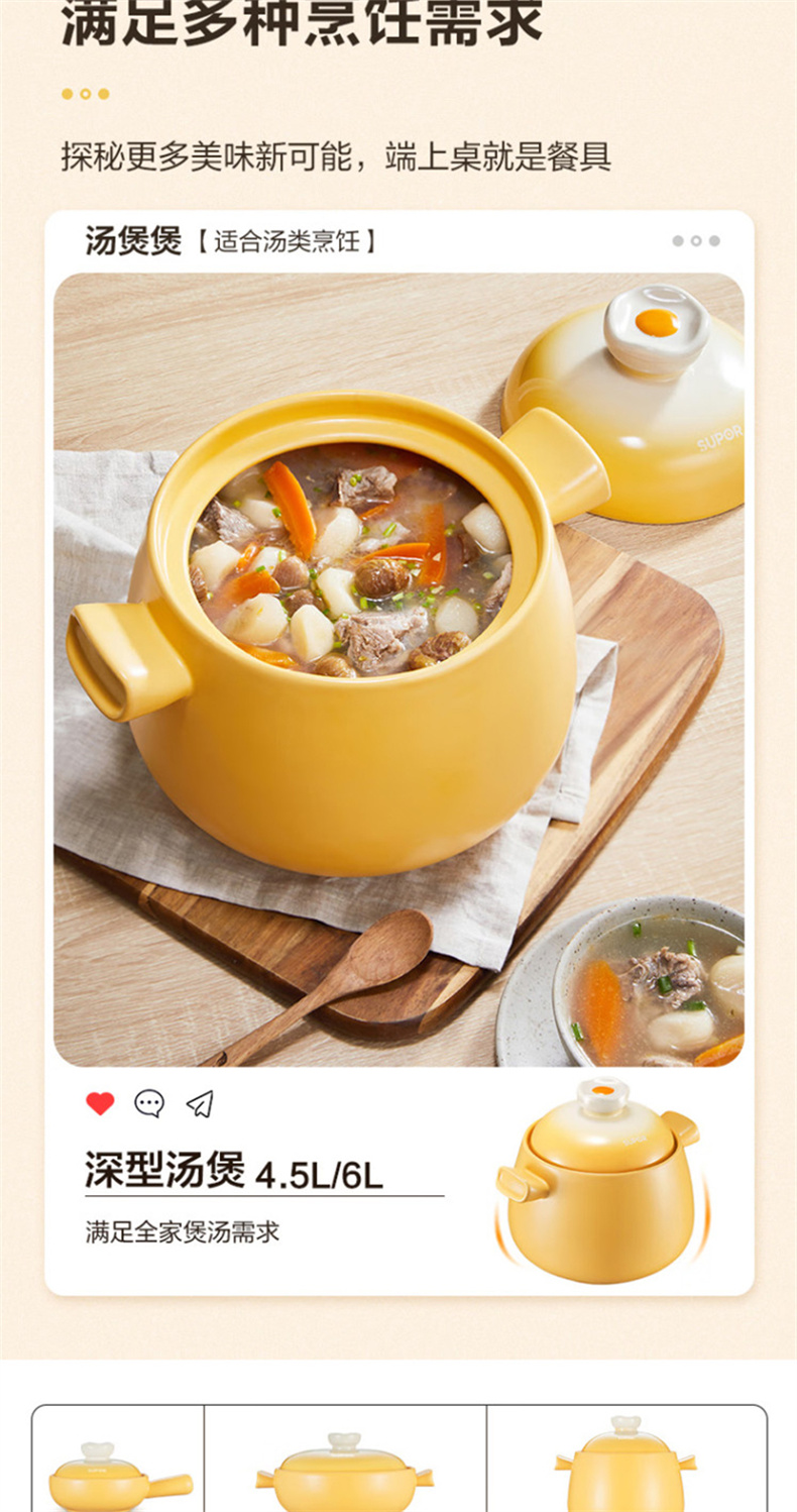 苏泊尔(SUPOR) EB45WT01 4.5L 新陶养生煲·蛋黄煲 蛋黄色(单位:个)