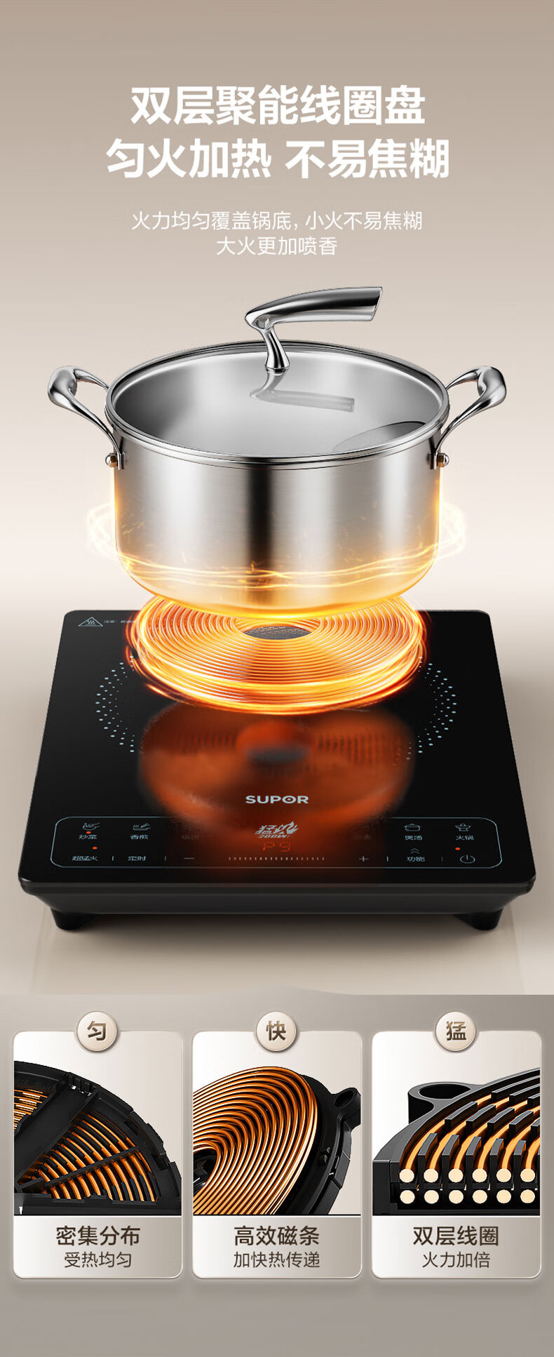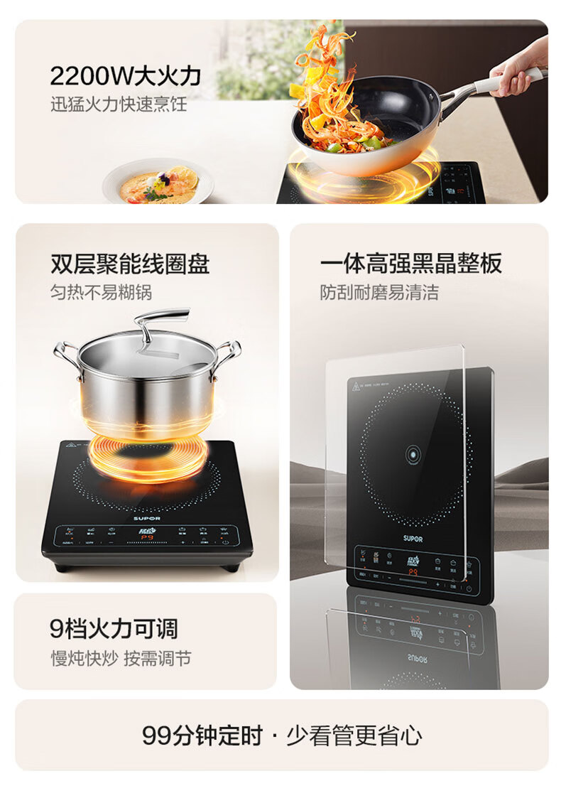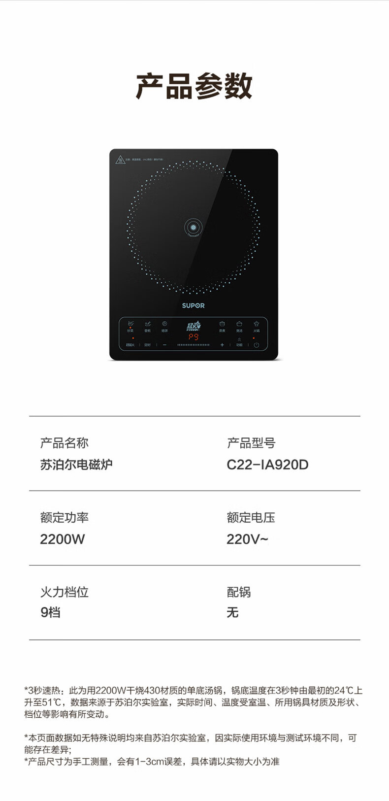 苏泊尔(SUPOR) C22-IA920D 2200W 家用电磁炉 单机 黑色(单位:台)