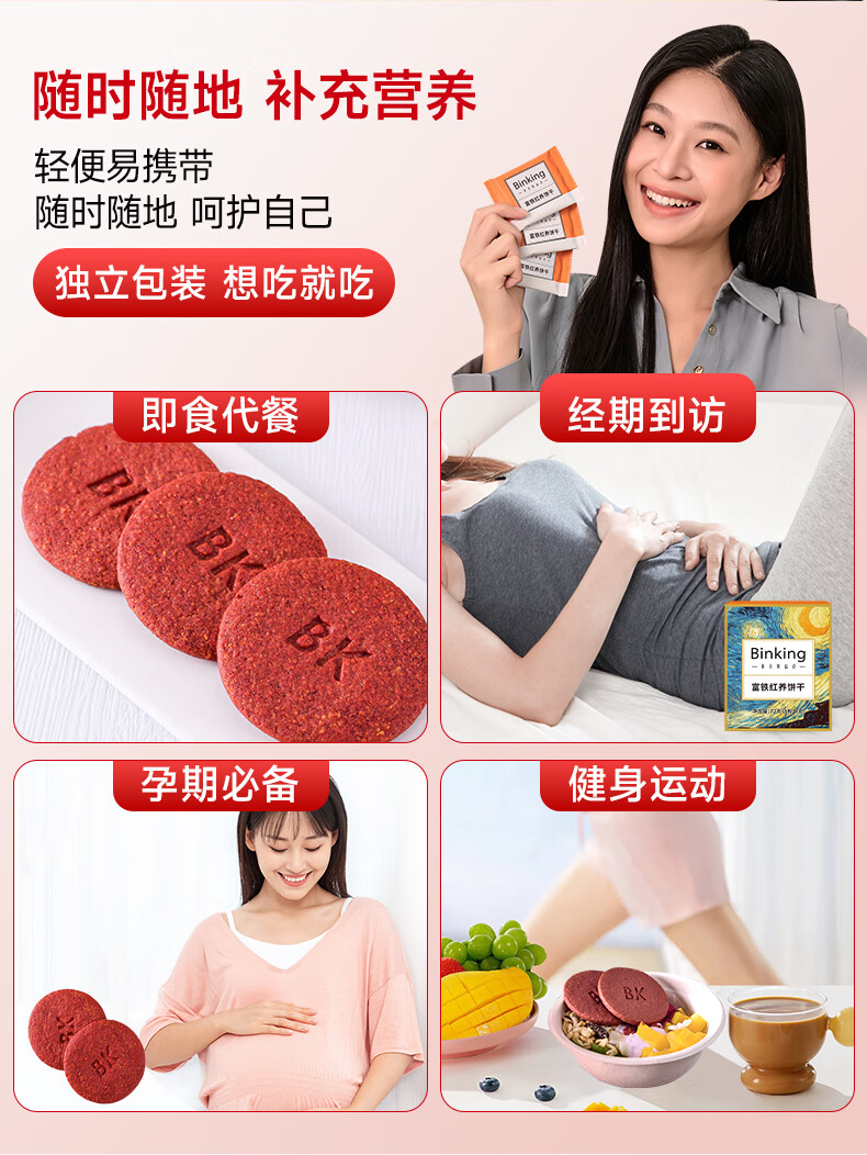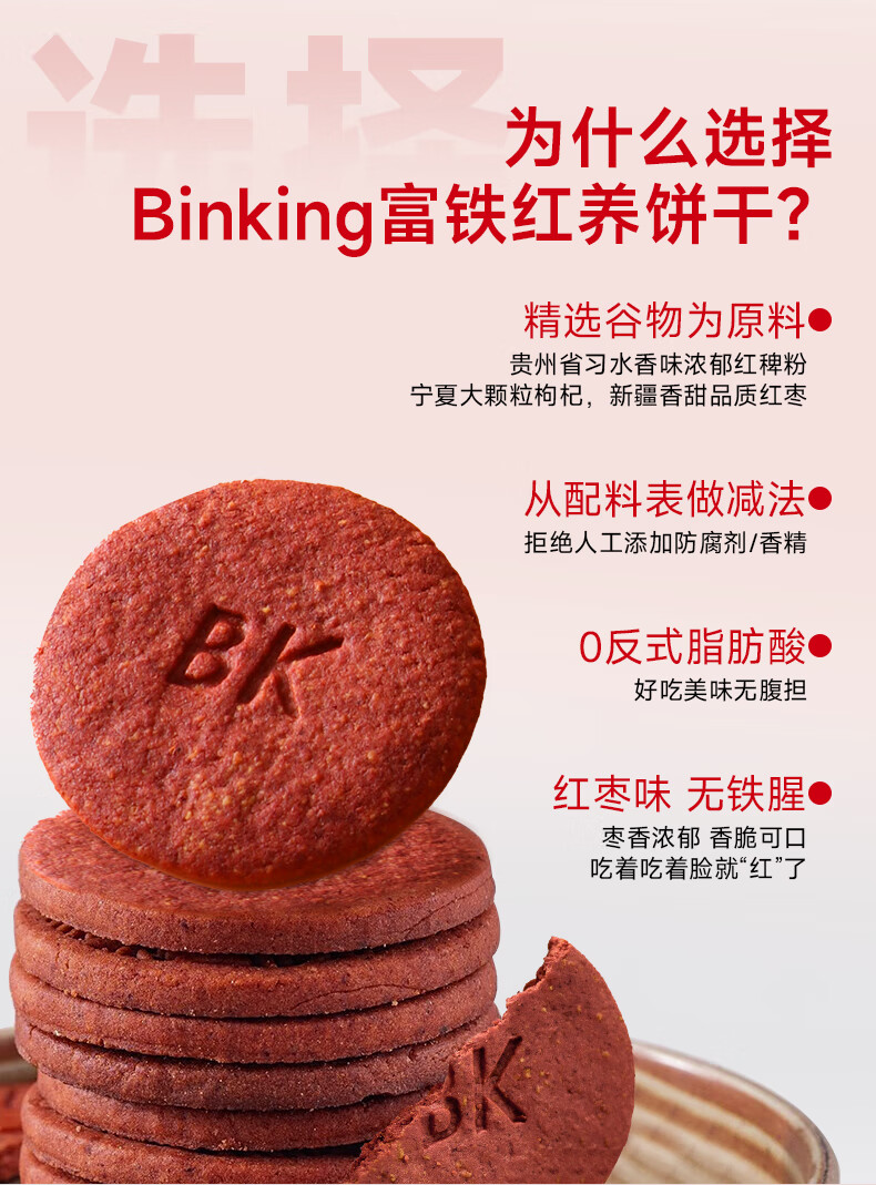 Binking 营养代餐 9克/枚*8枚/盒*12盒 富铁红养饼干 混色(单位:组)