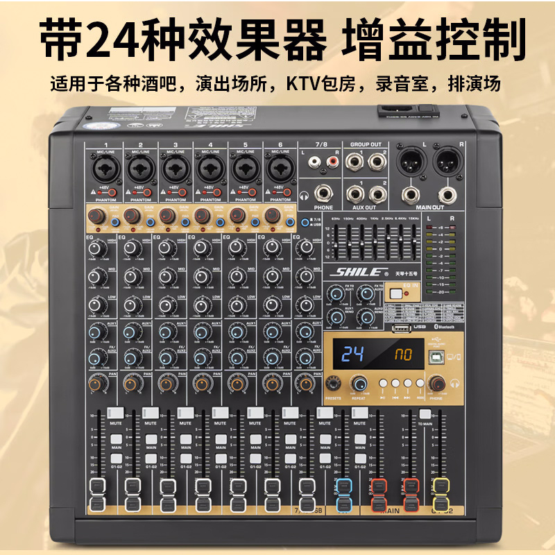 狮乐 (SHILE) 8路编组调音台 天琴十五号 355x357x90mm 曜石黑(单位:台)