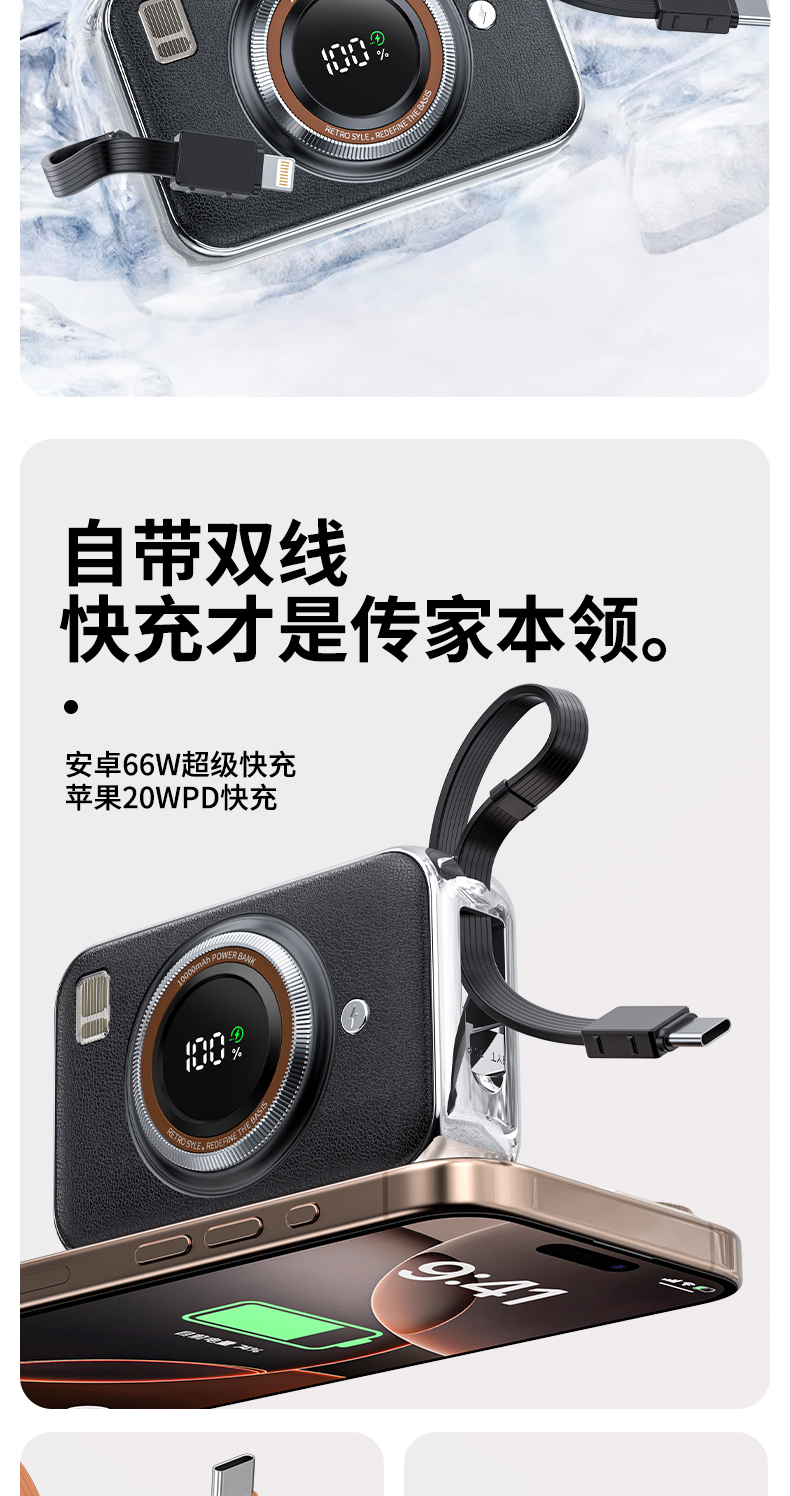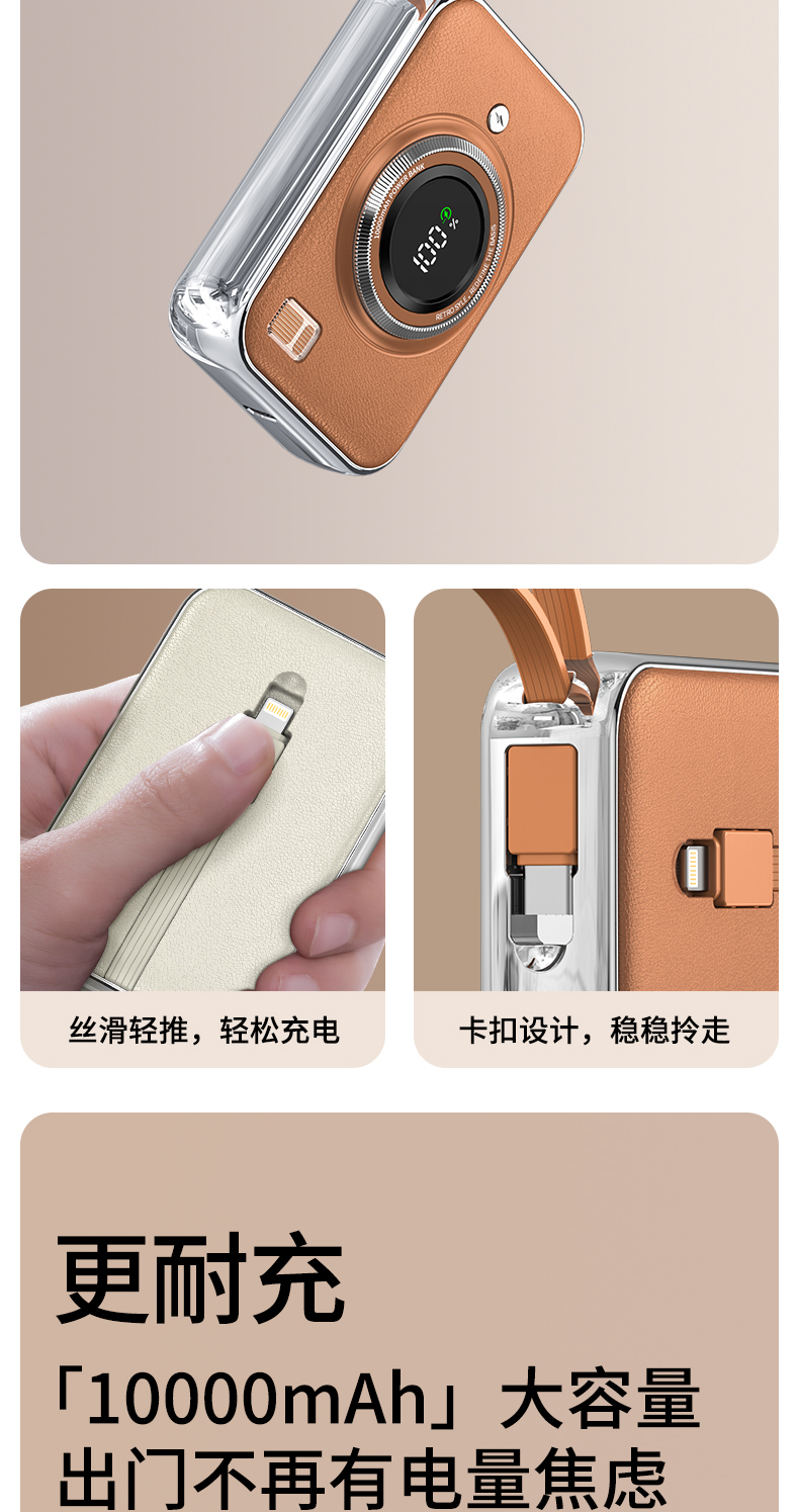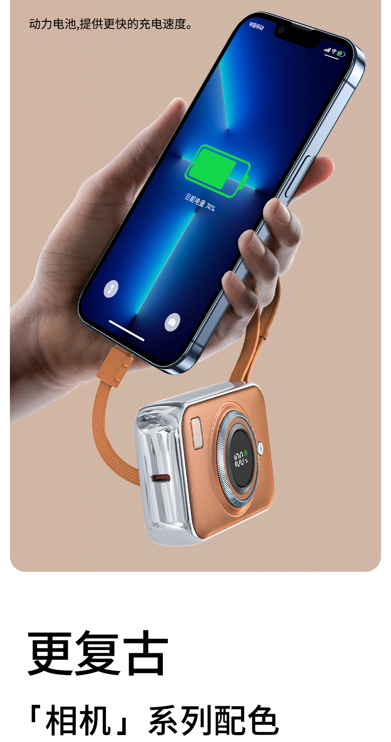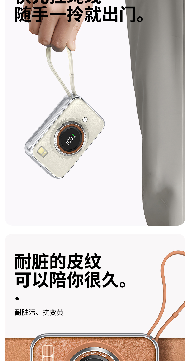 雷摄(LEISE) 相机形移动电源 LS-R69S 22.5W快充自带双线可上飞机便携小巧10000毫安 米白色(单位:件)