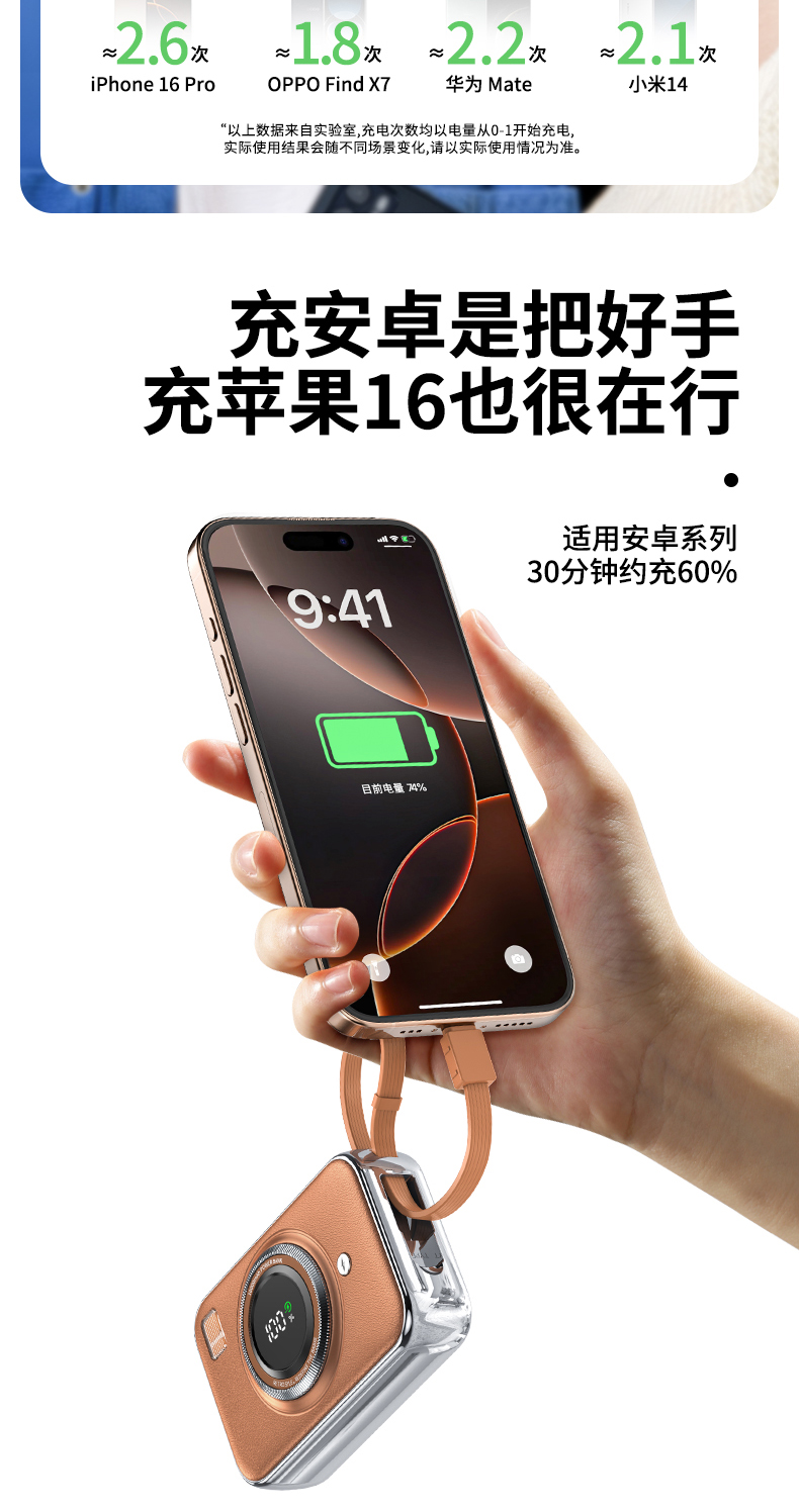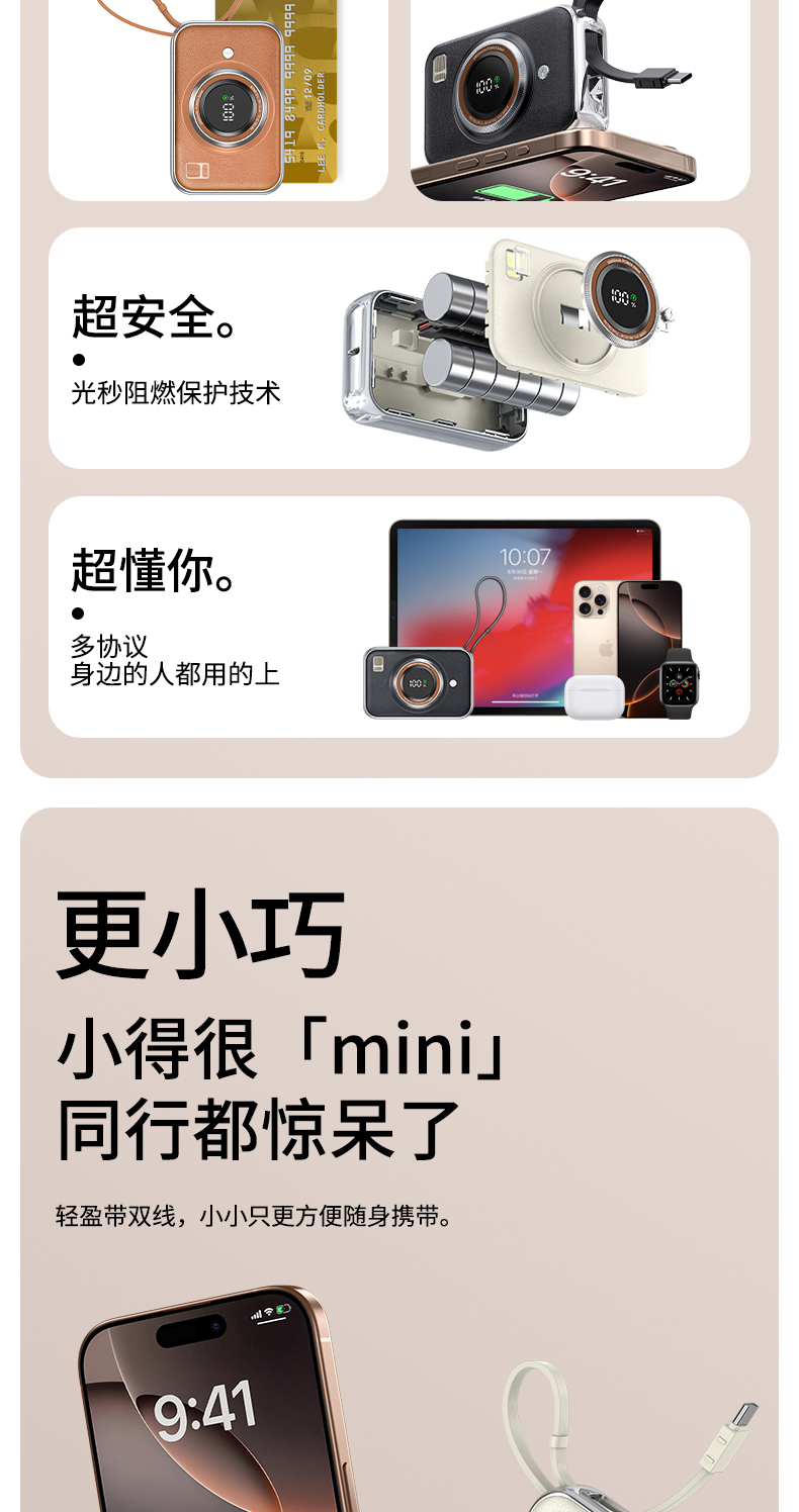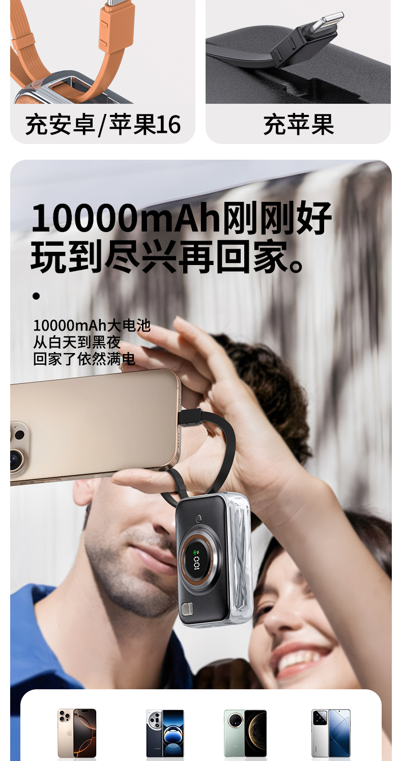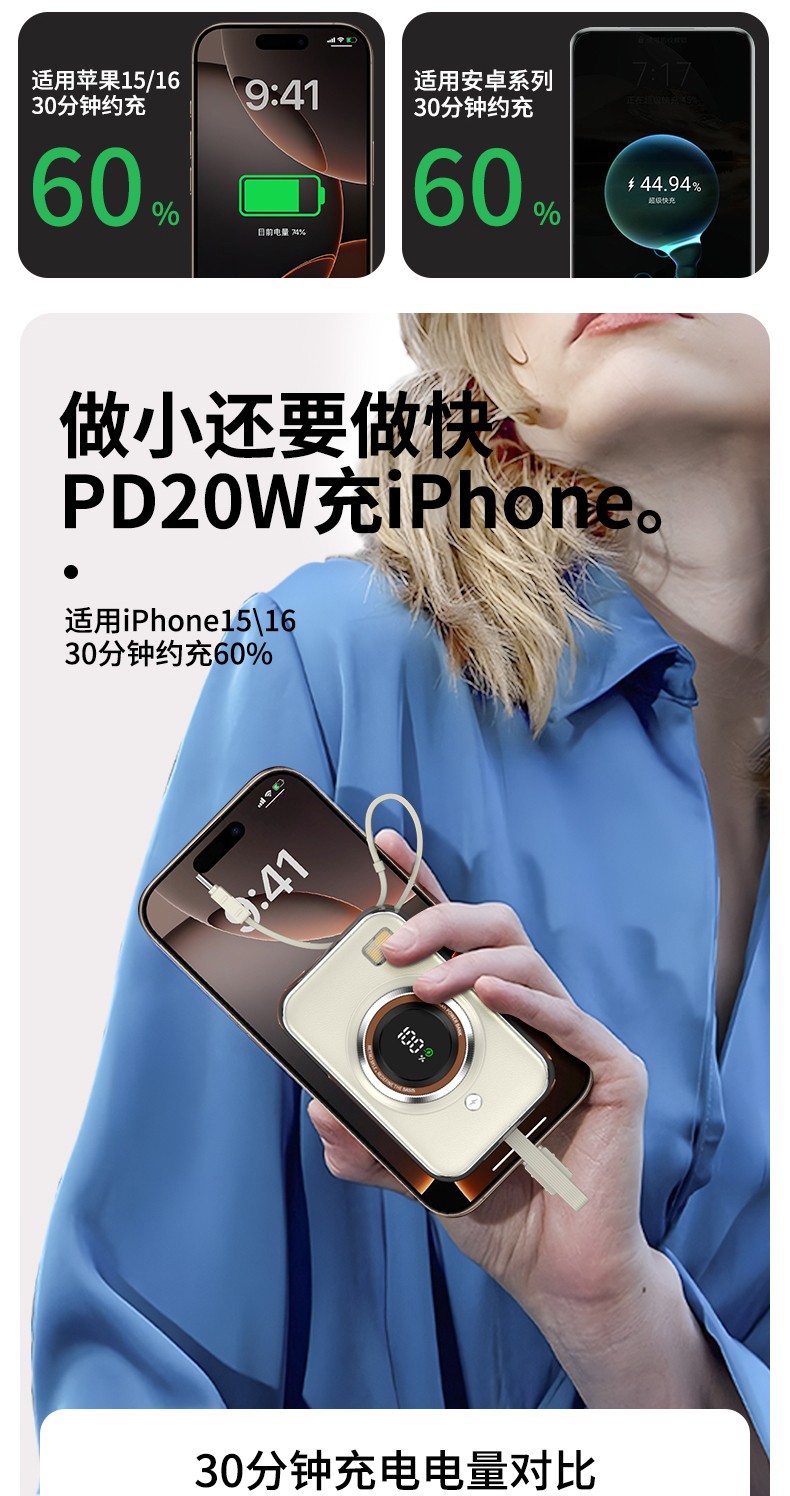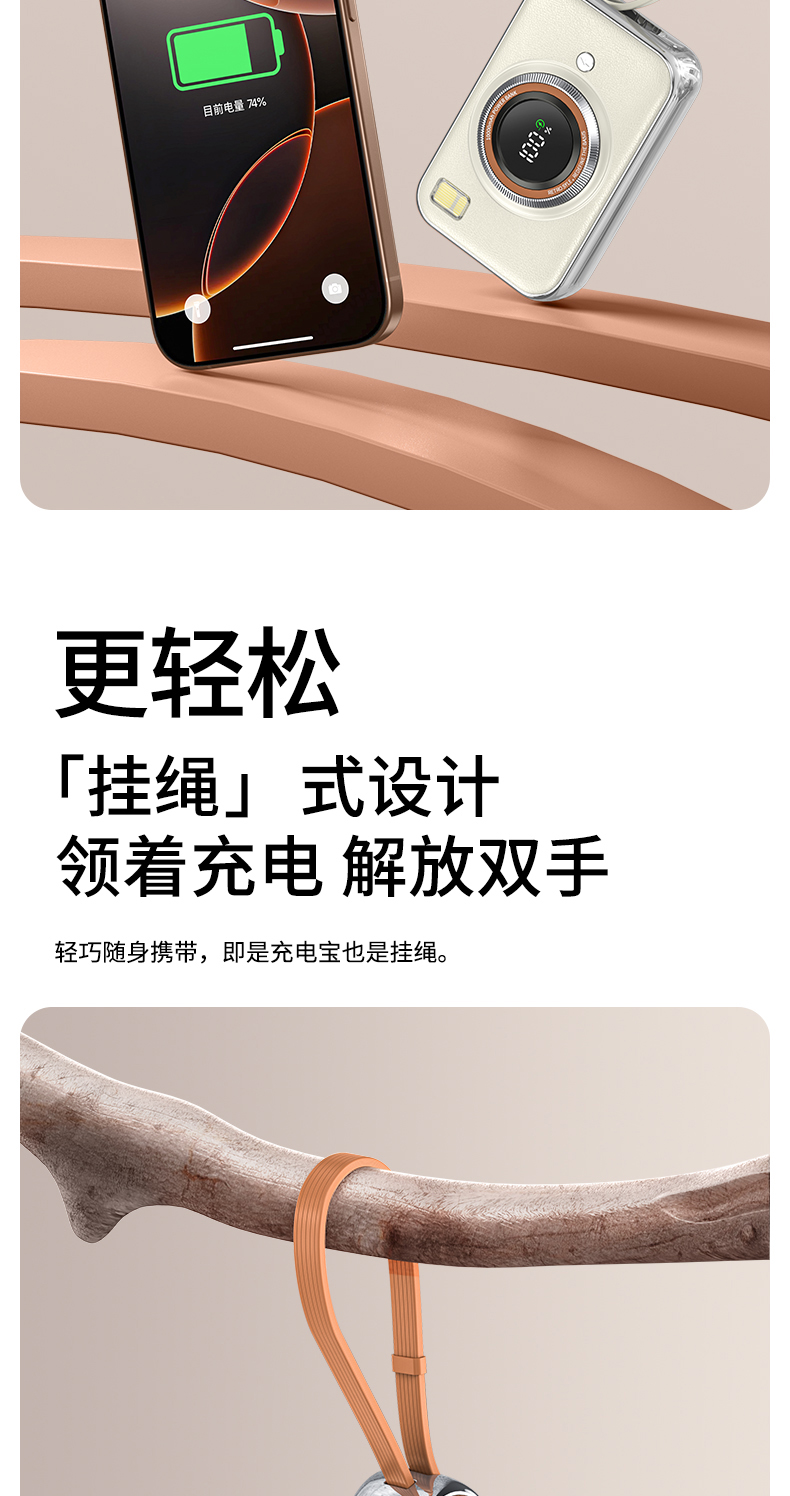 雷摄(LEISE) 相机形移动电源 LS-R69S 22.5W快充自带双线可上飞机便携小巧10000毫安 米白色(单位:件)