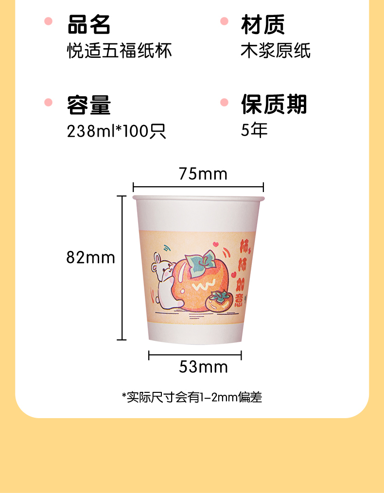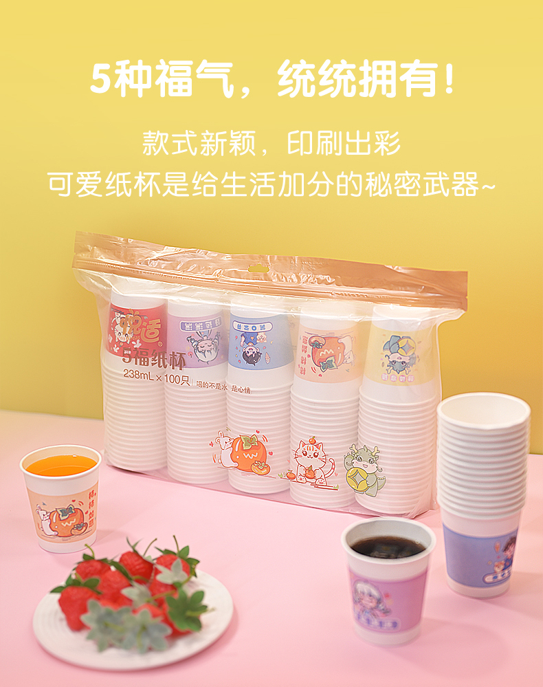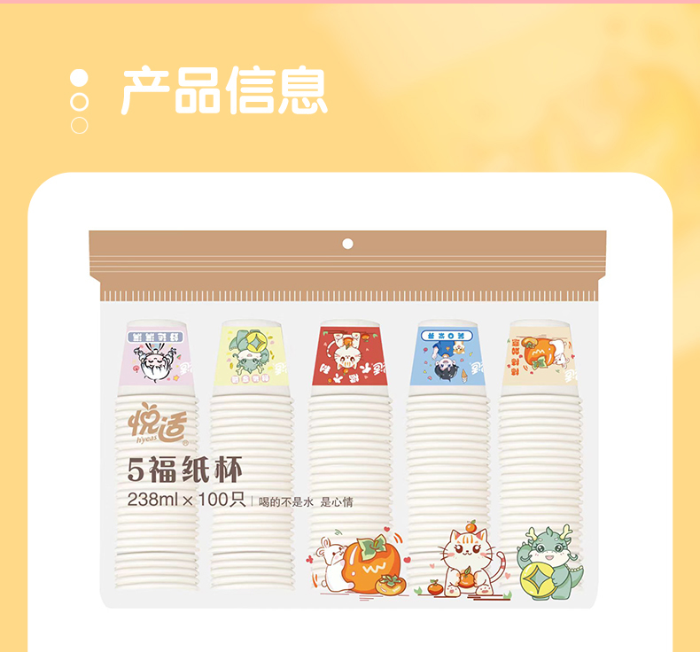悦适/h'yeas BZC100 238ml*100只*1袋 悦适一次性纸质水杯 白色(单位:袋)