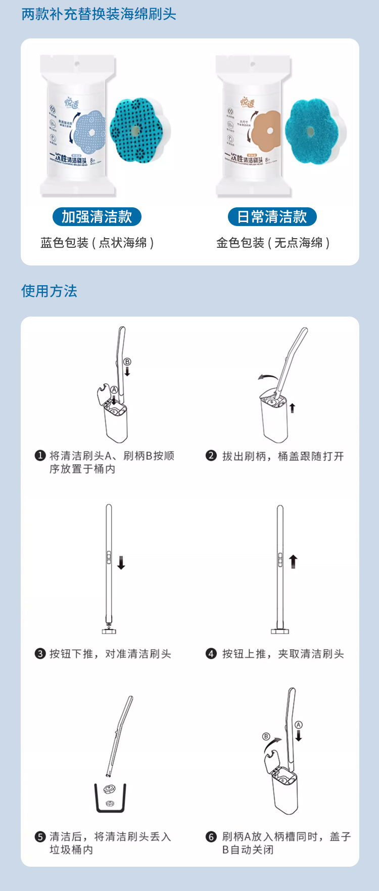 悦适/h'yeas EAA01 (1刷+1桶+12海绵刷头) 一次性马桶刷 白色(单位:套)