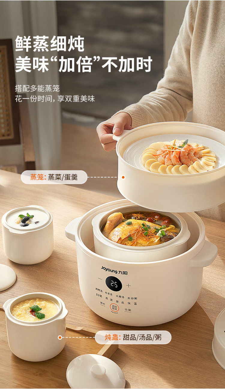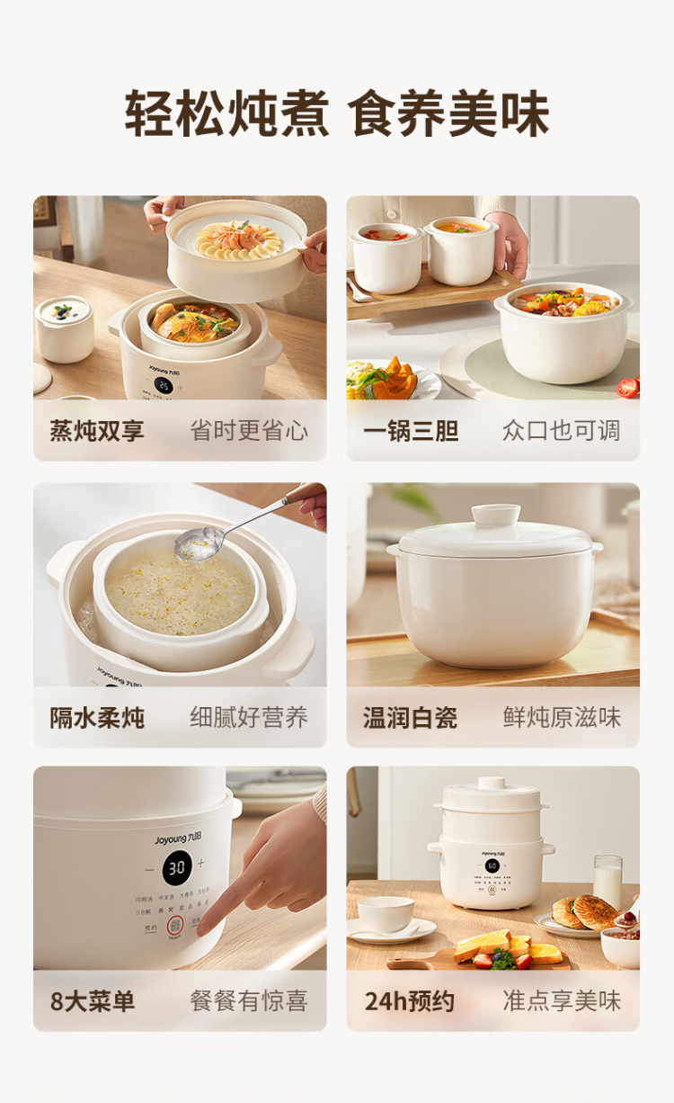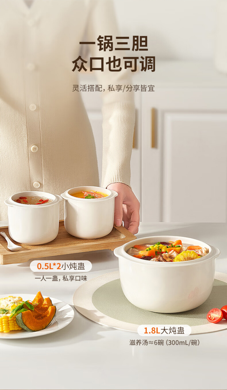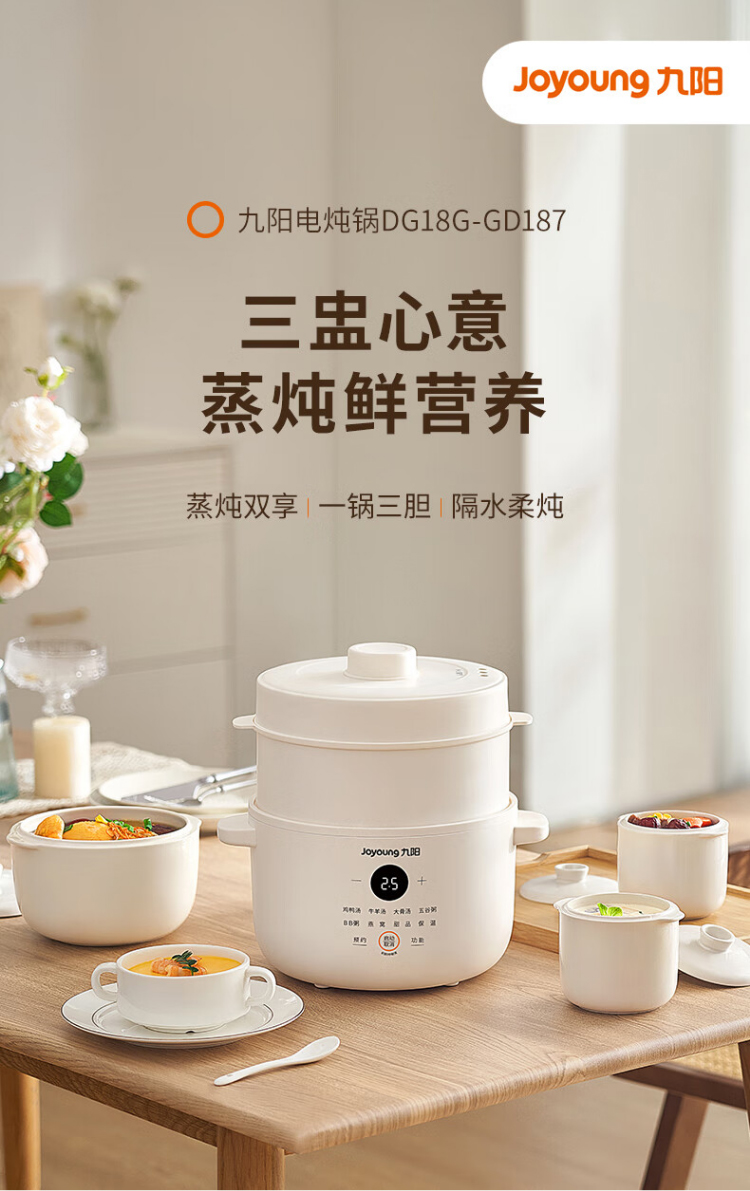 九阳(Joyoung) DG18G-GD187 1.8L+0.5L*2 三内胆电炖锅 白色(单位:台)