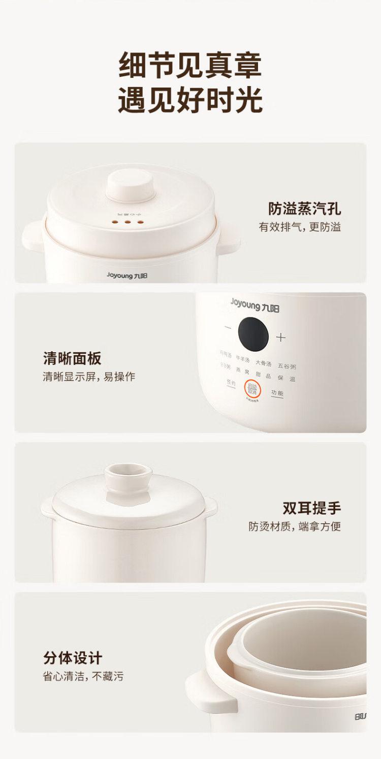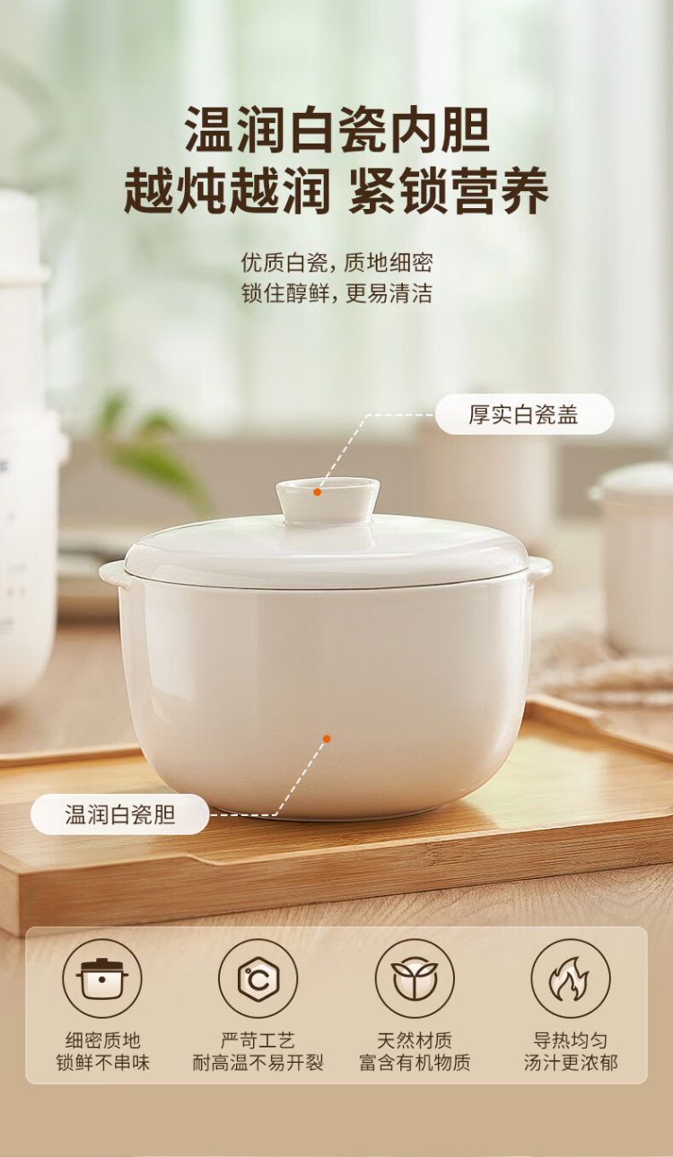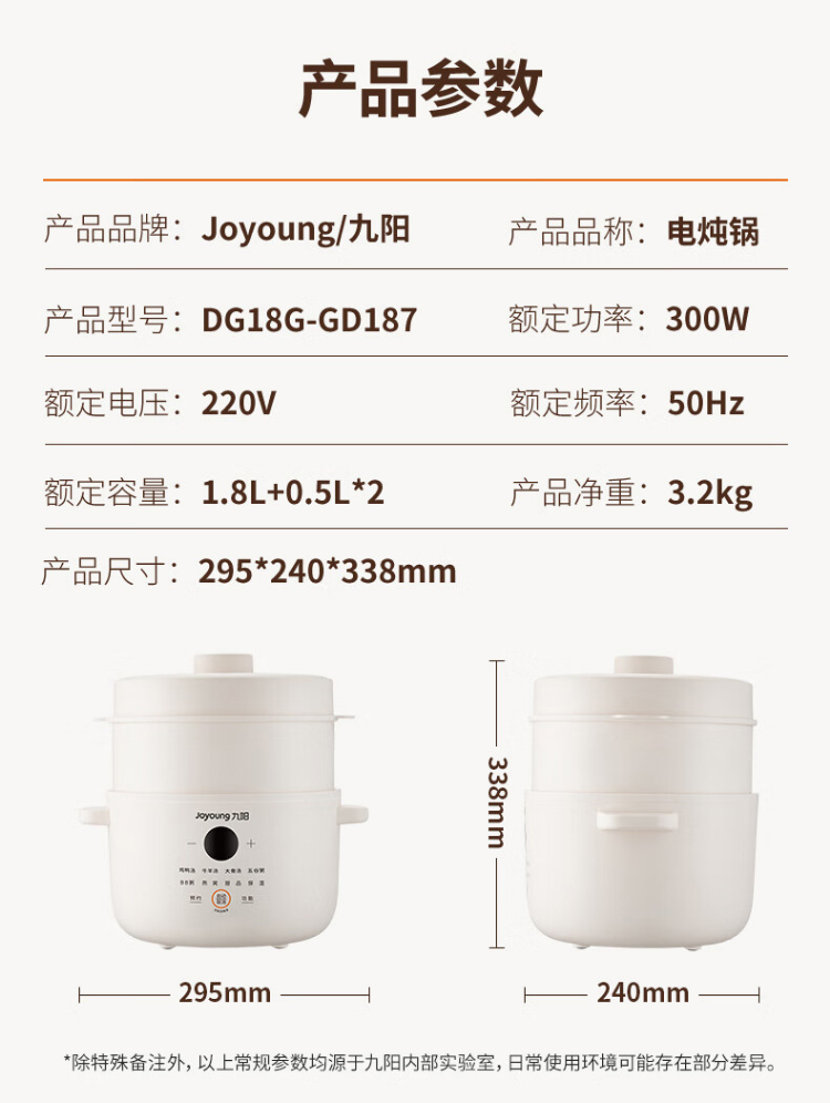 九阳(Joyoung) DG18G-GD187 1.8L+0.5L*2 三内胆电炖锅 白色(单位:台)