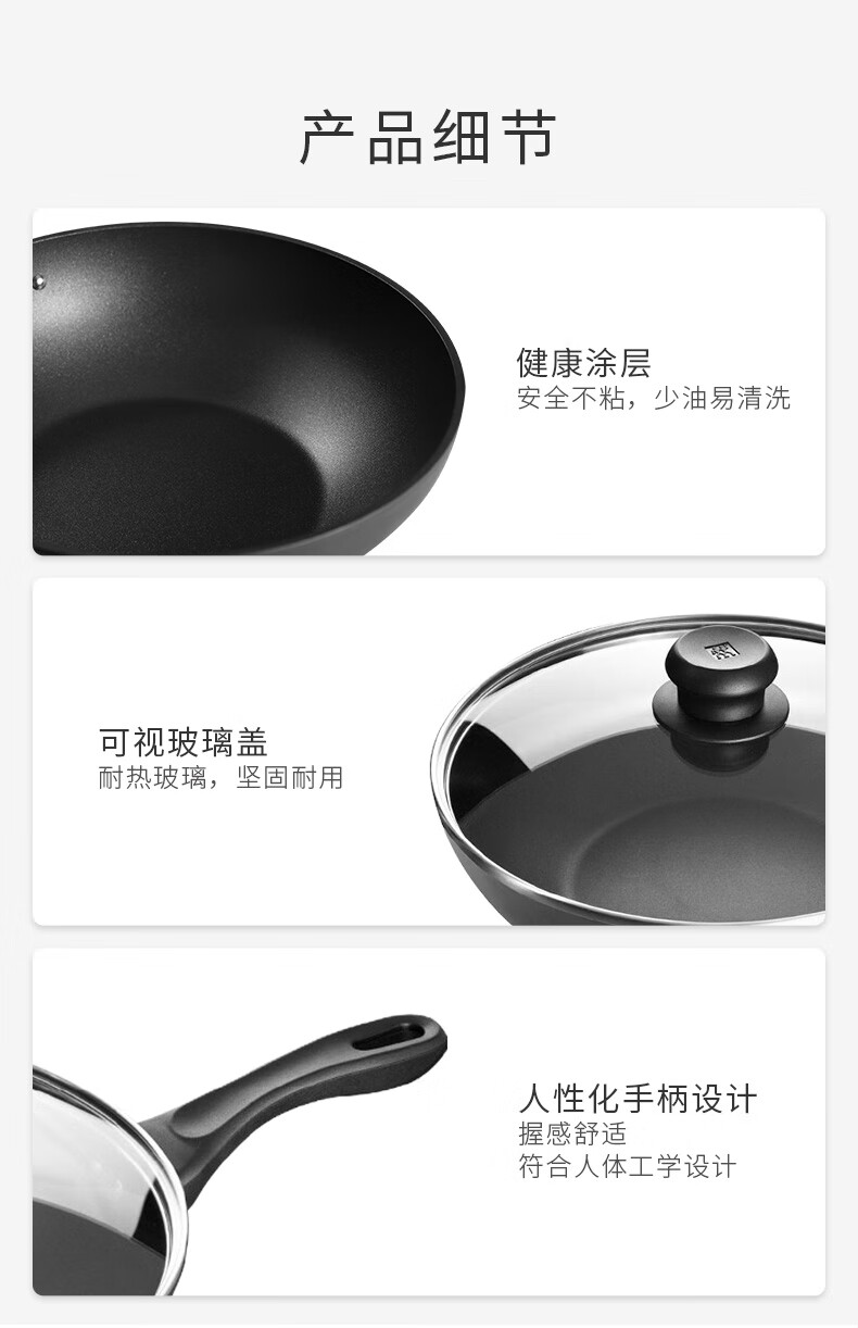 双立人 1017236 30cm 炒锅不粘锅 黑色(单位:个)