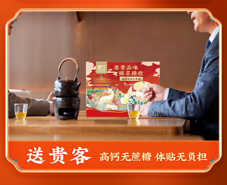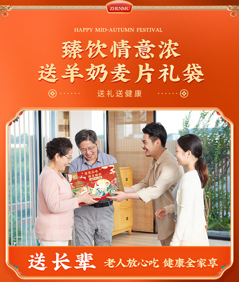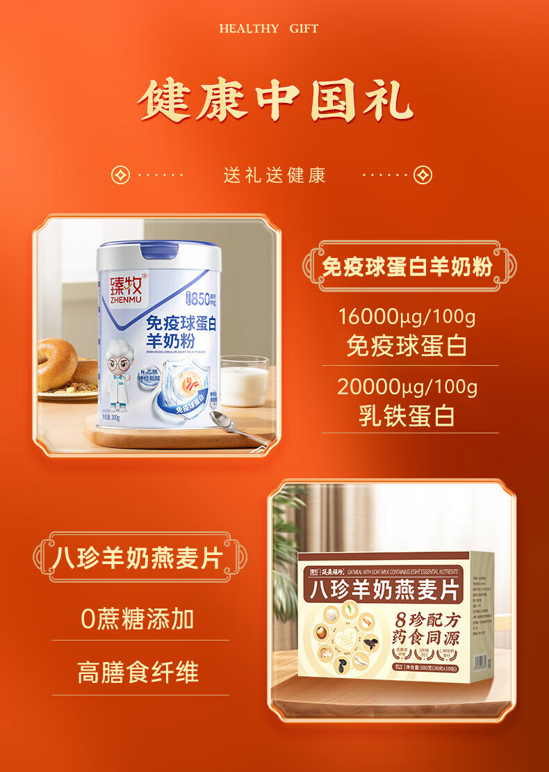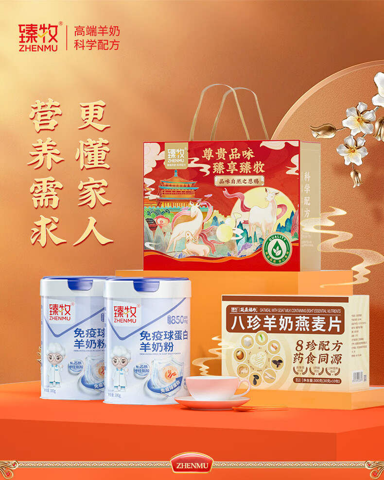 臻牧/zhenmu 免疫球蛋白羊奶粉300g*2+八珍燕麦300g 礼袋装 组合900g 炫橙色(单位:组)