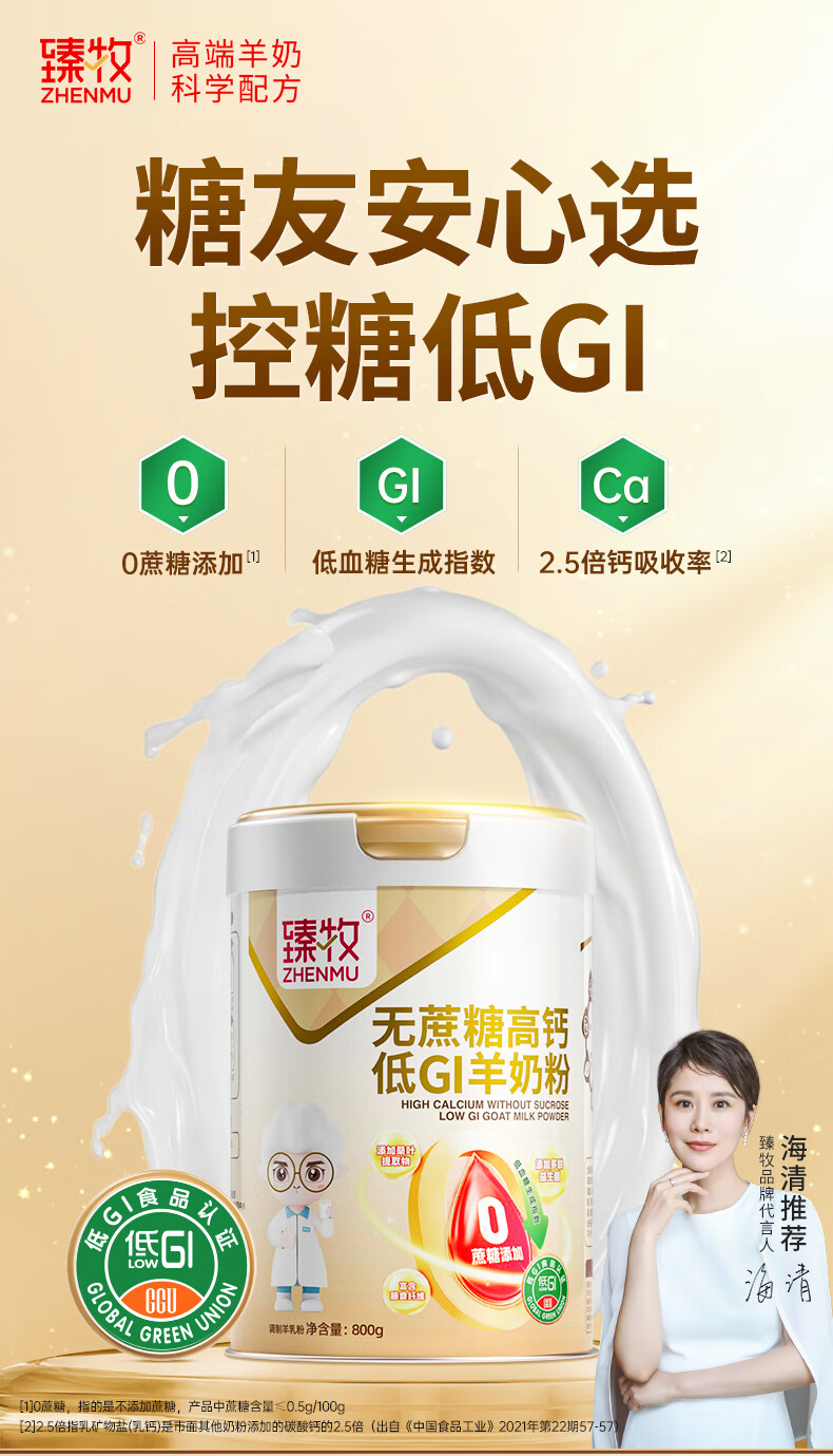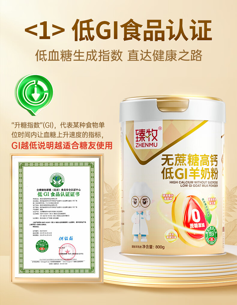 臻牧/zhenmu 无蔗糖高钙低gi低升糖羊奶粉 罐装 800g 白色(单位:罐)