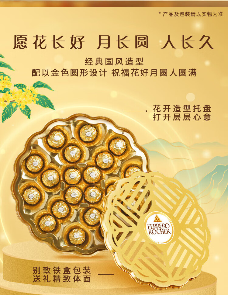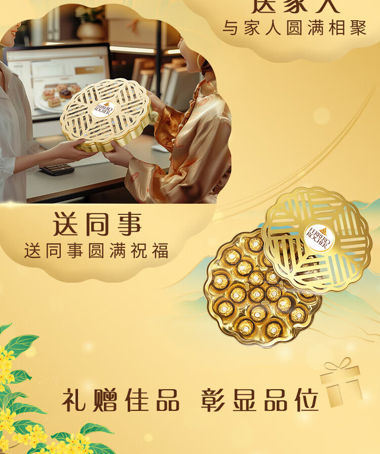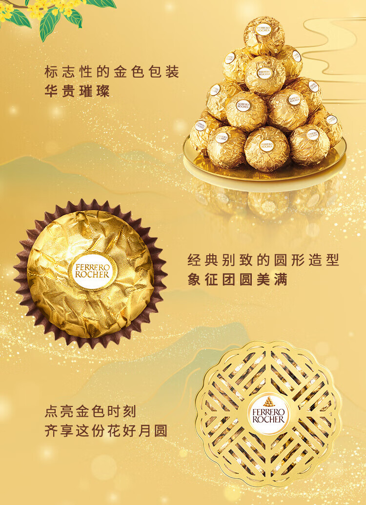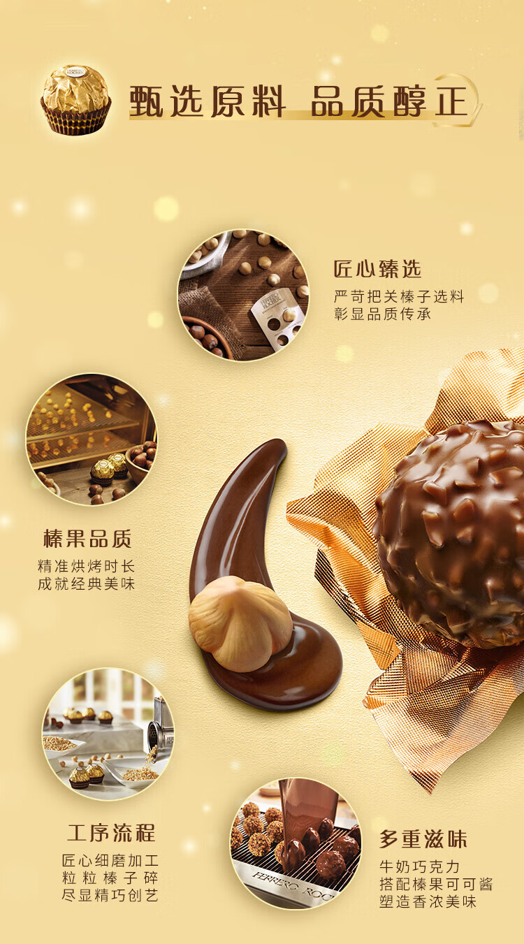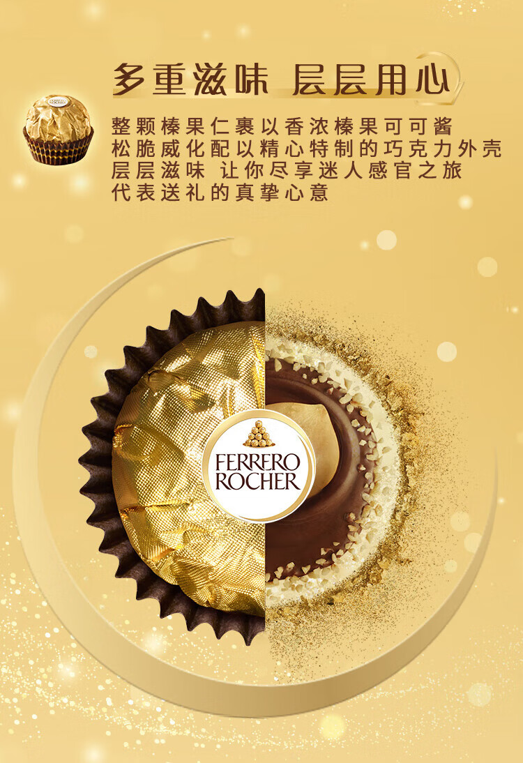 费列罗 巧克力糖果 225g 巧克力礼盒 金色(单位:盒)