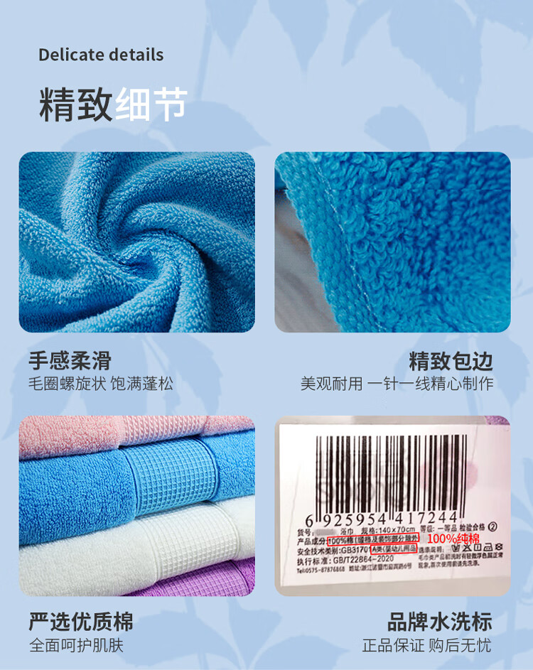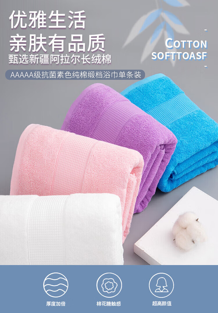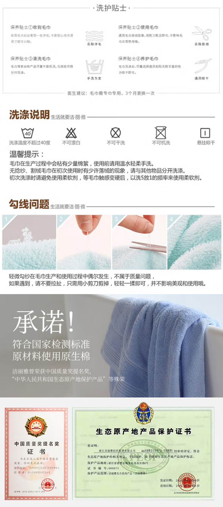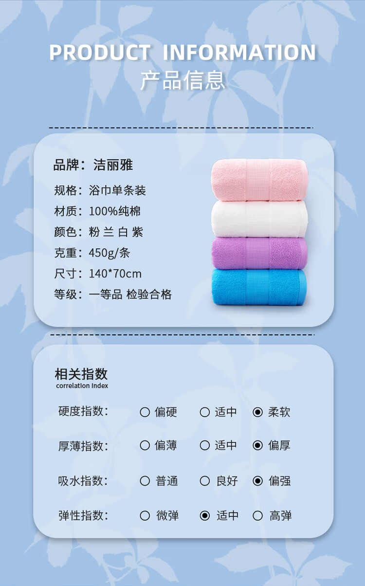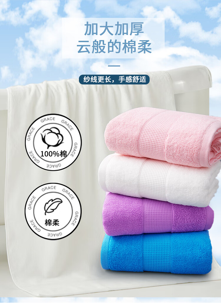 洁丽雅(Grace) 6724 70*140cm*450g 5A级抗菌纯棉浴巾 粉色(单位:条)