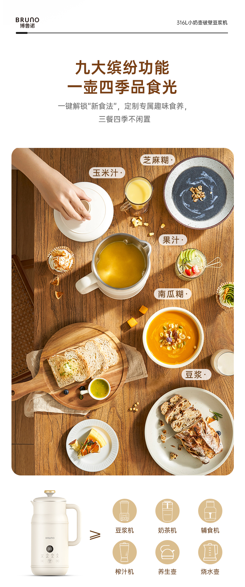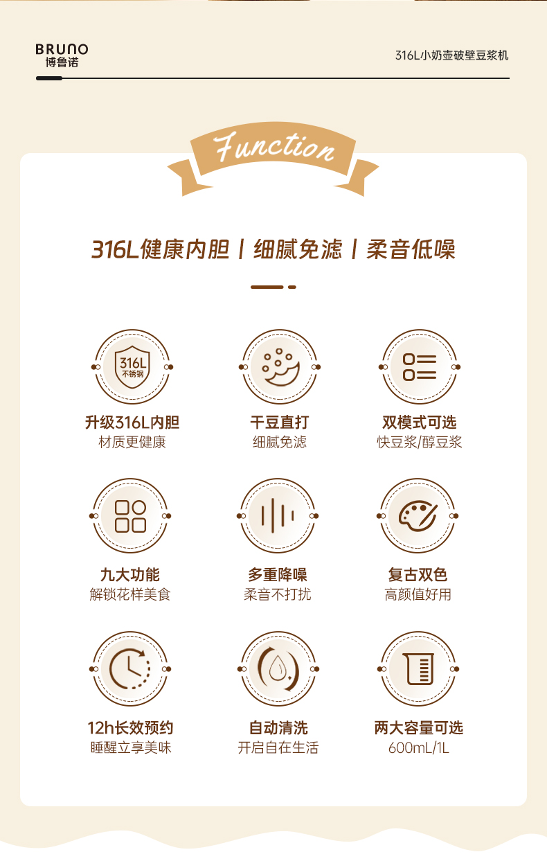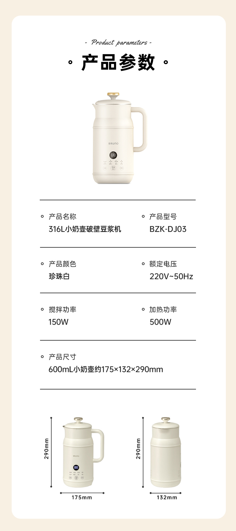 BRUNO BZK-DJ03 0.6L 豆浆机 白色(单位:个)