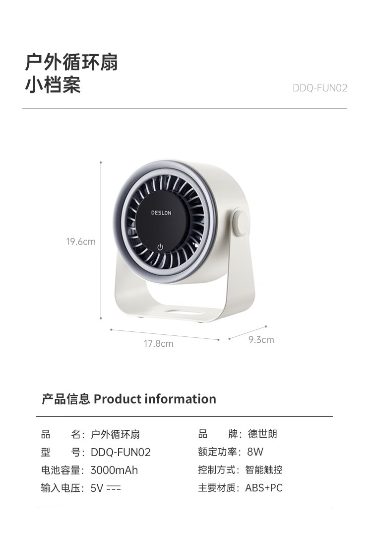 德世朗(DESLON) DDQ-FUN02 8W 遥控户外轻音循环扇 白色(单位:台)