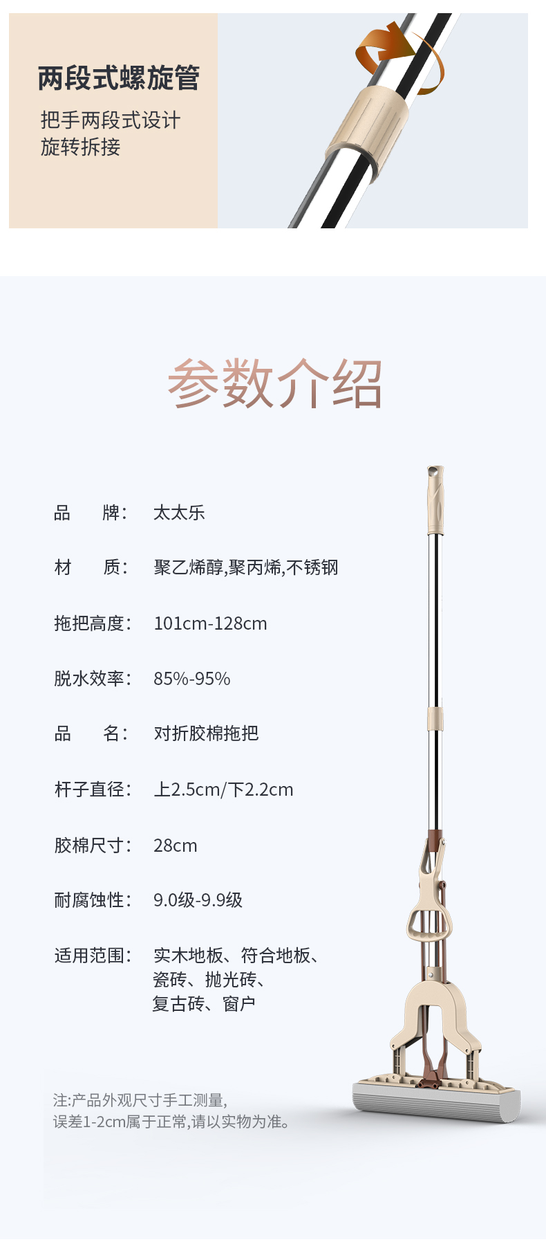 太太乐 TTL-2211 28cm 对折胶棉拖把 咖啡色(单位:只)