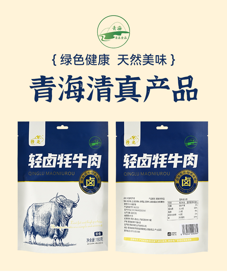 穆尧 轻卤牦牛肉 150g*3袋 低脂高蛋白 原味 藏青色(单位:袋)