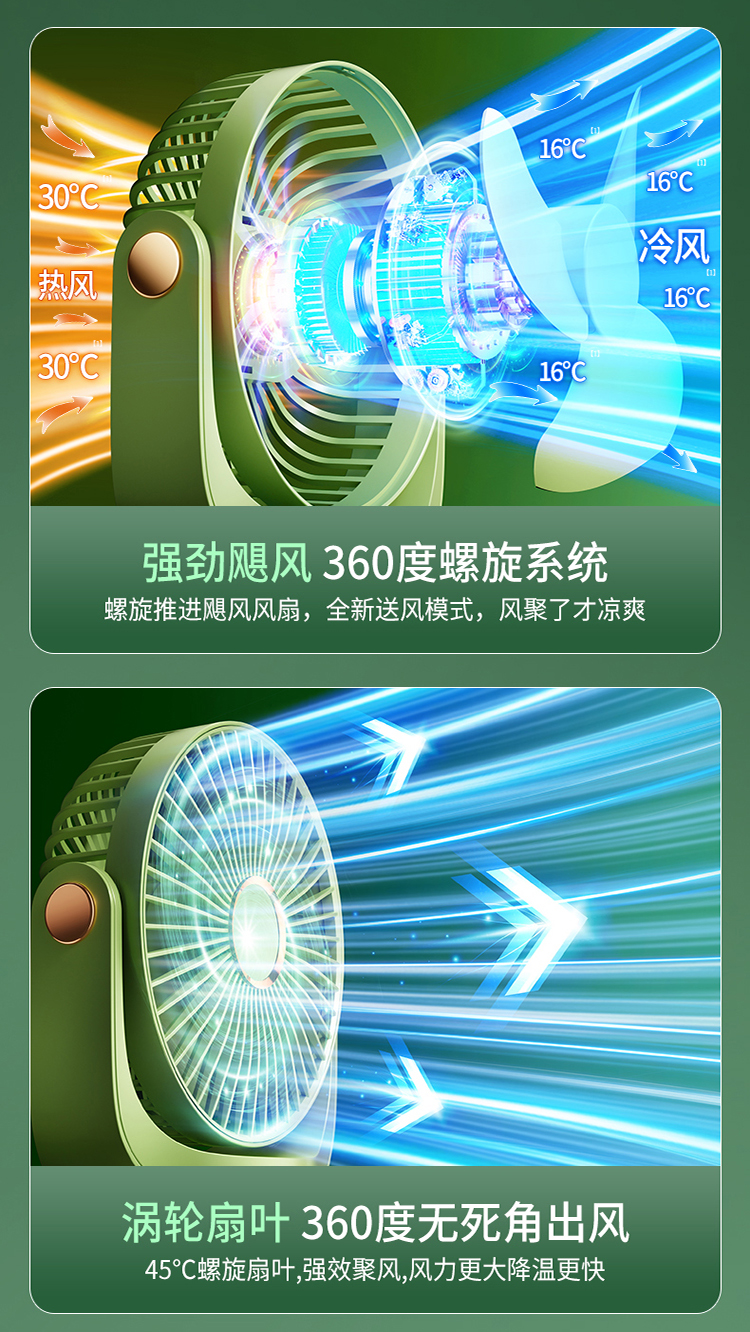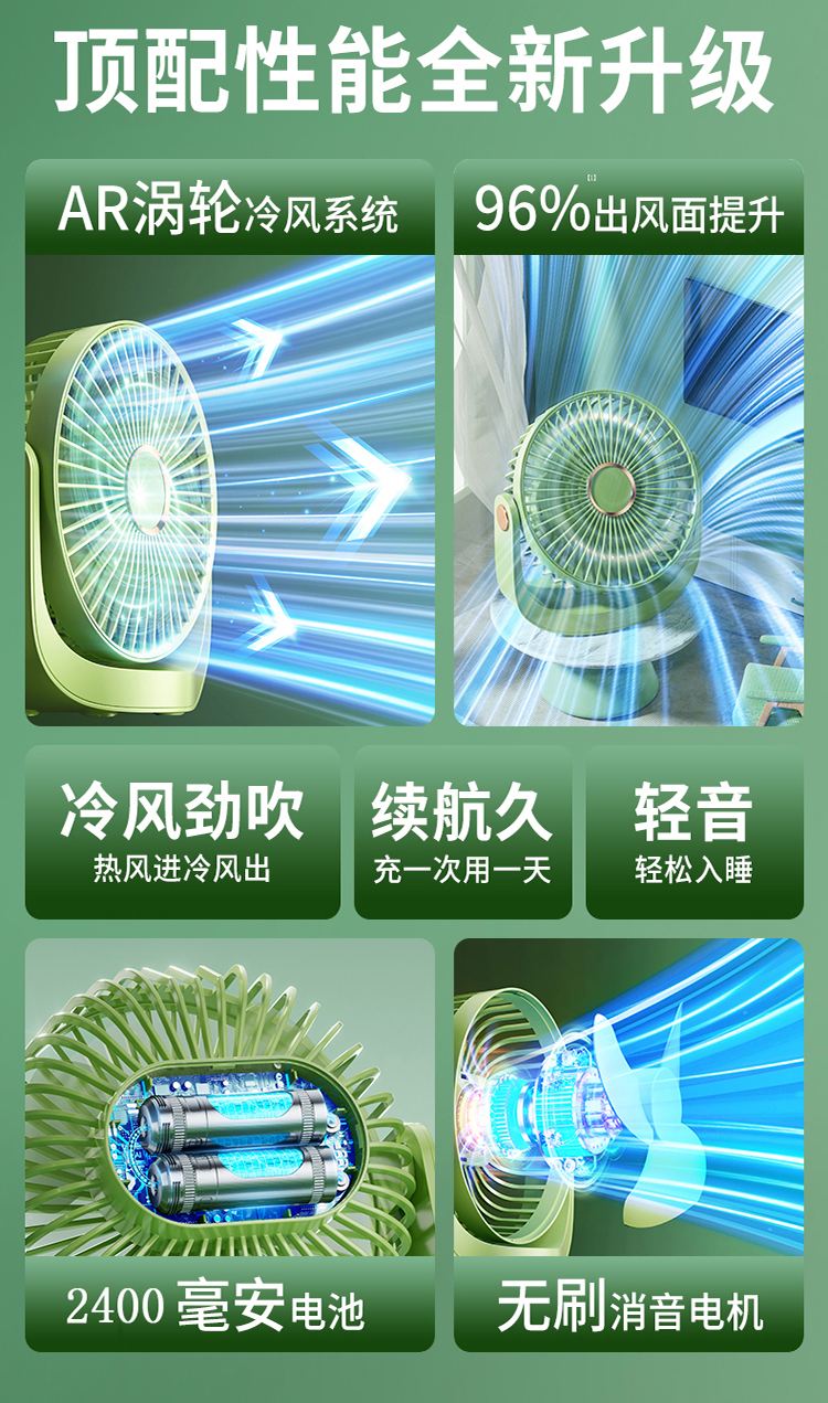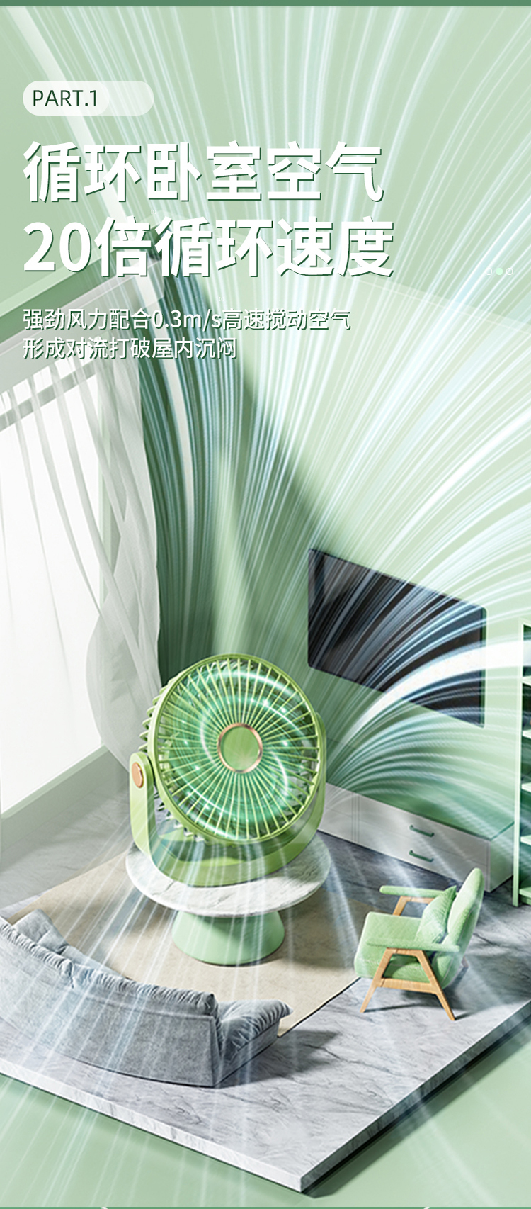 艾青春(AIYOUTH) AI-F16 2400mAh 桌面小夜灯风扇 雾雨绿(单位:台)