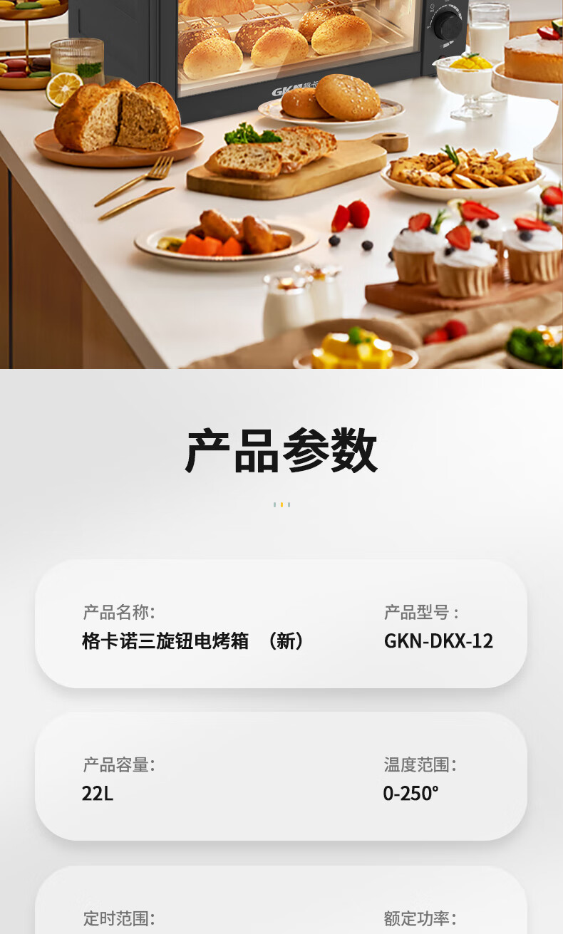 格卡诺(GKN) GKN-DKX-12 22L 家用多功能大容量烤箱 黑色(单位:台)
