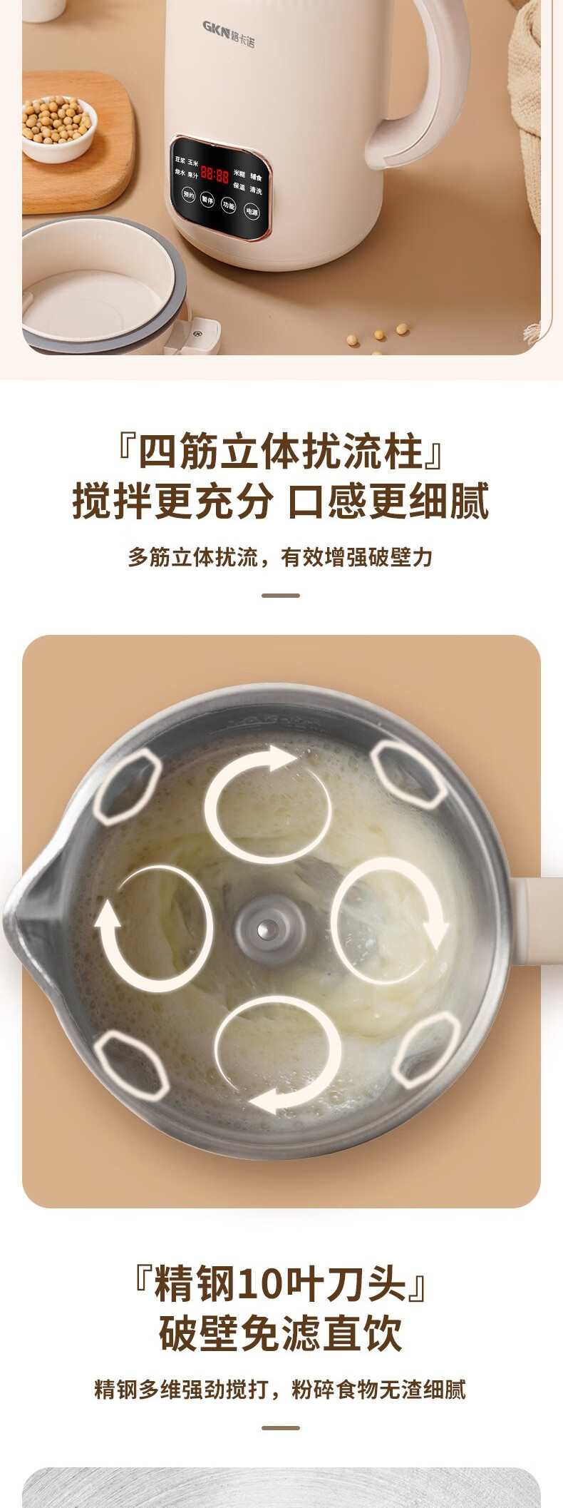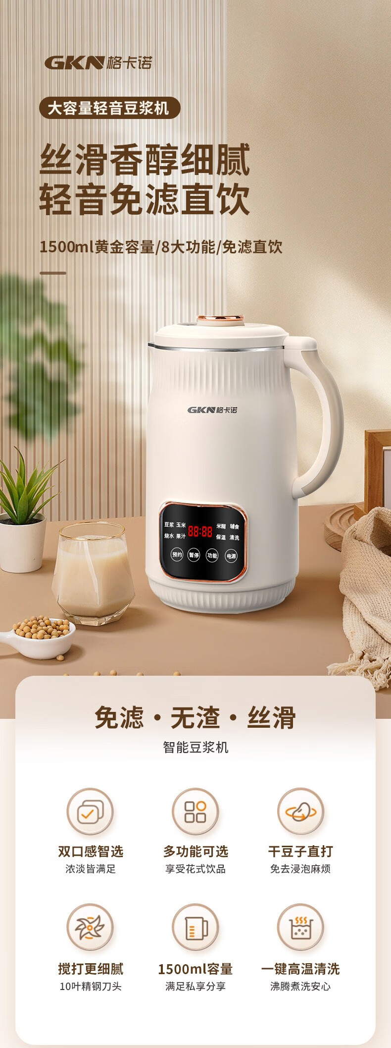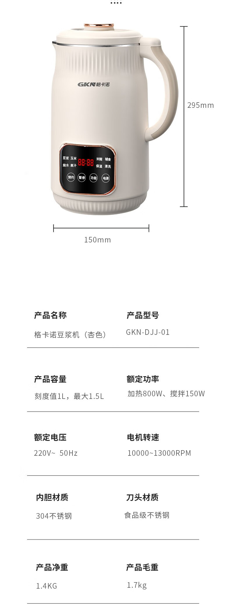 格卡诺(GKN) GKN-DJJ-01 800W 豆浆机 杏色(单位:个)