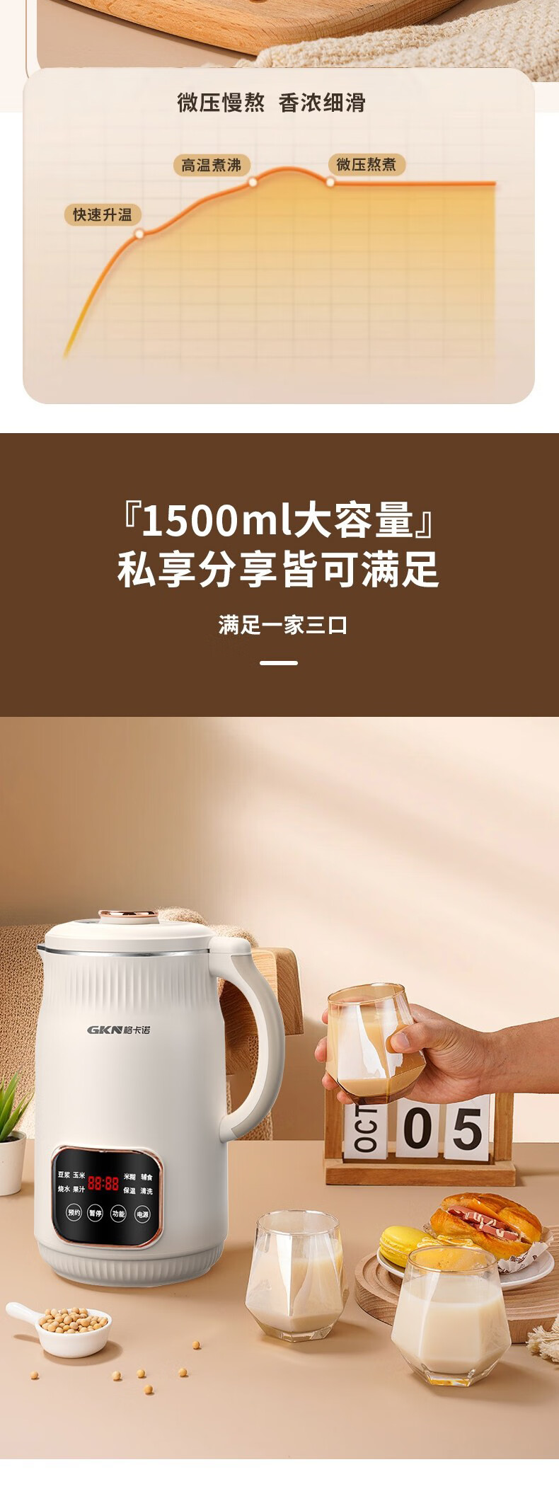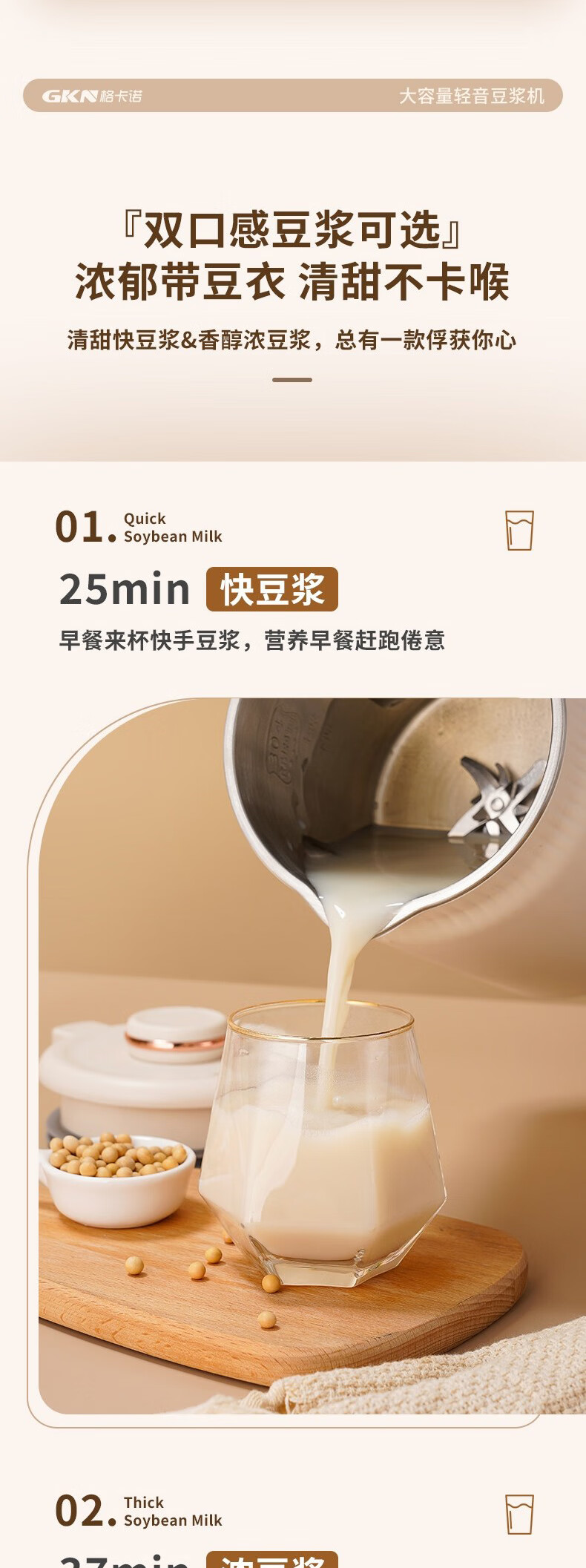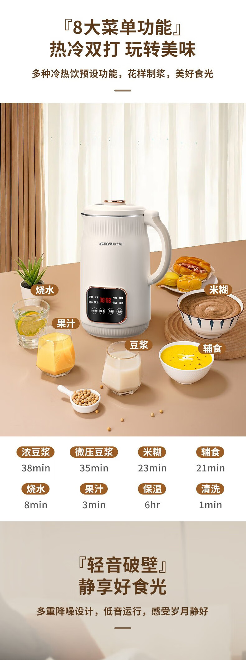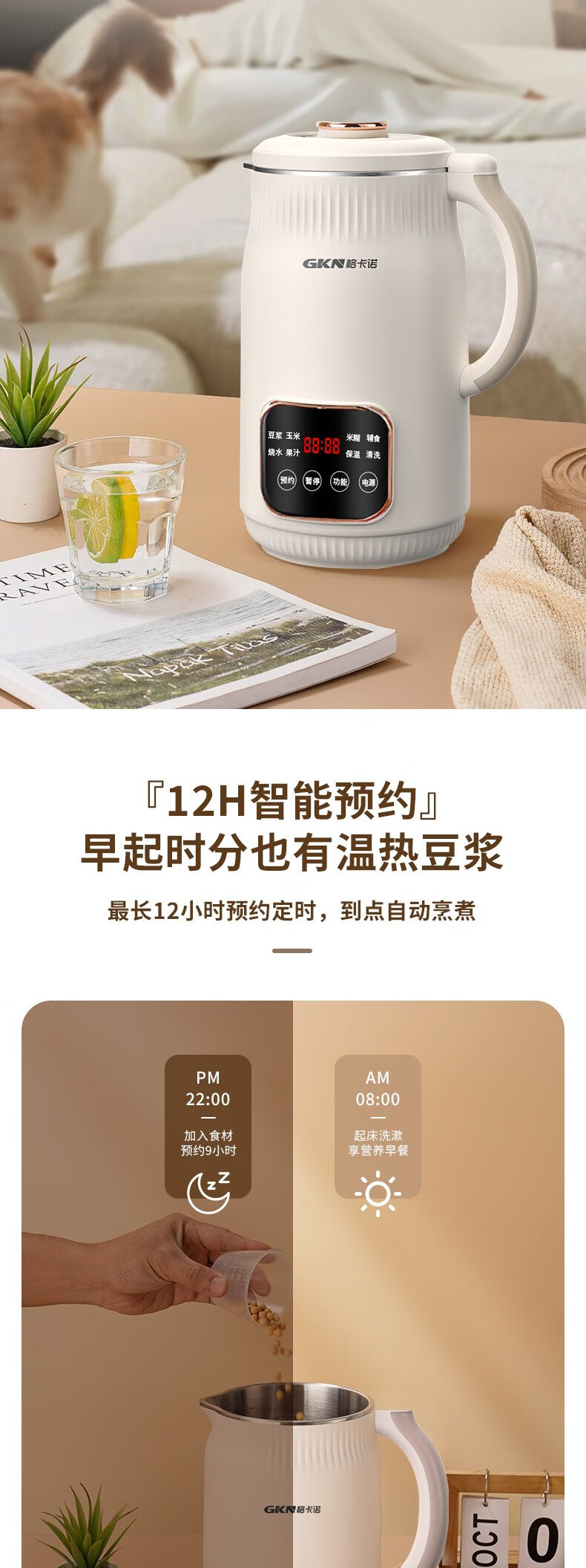 格卡诺(GKN) GKN-DJJ-01 800W 豆浆机 杏色(单位:个)