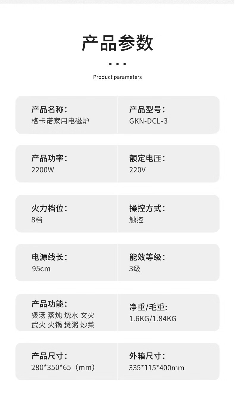 格卡诺(GKN) GKN-DCL-3 2200W 电磁炉 黑色(单位:个)