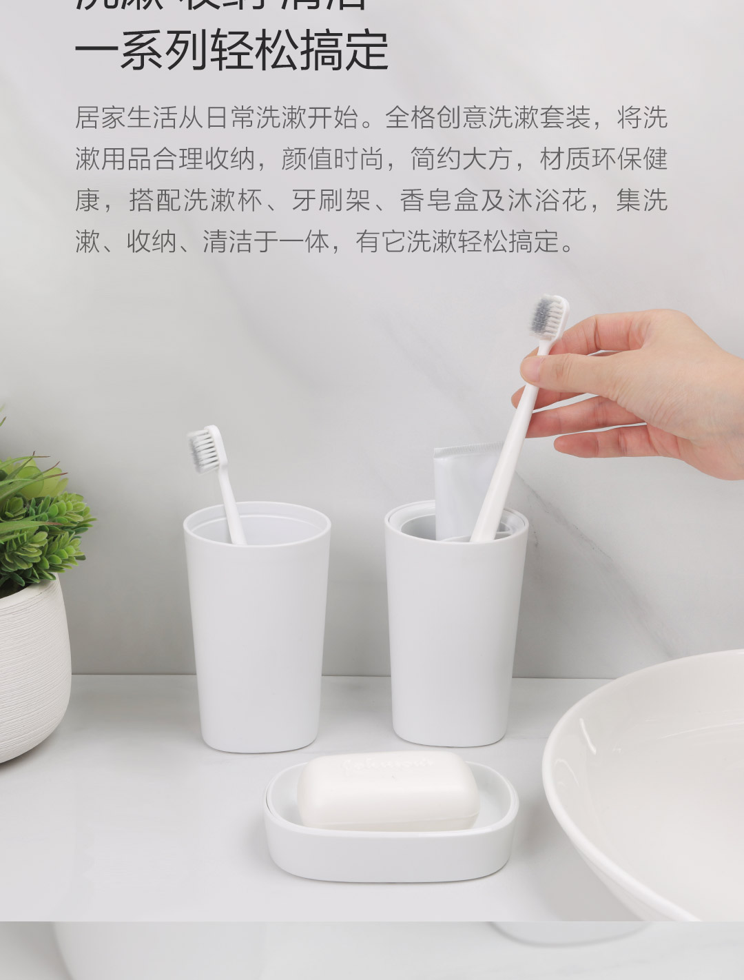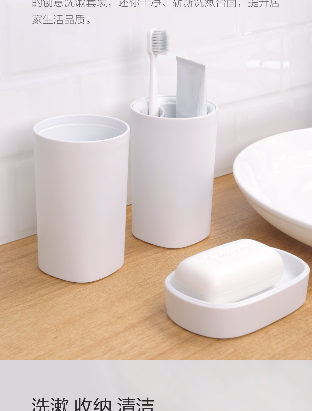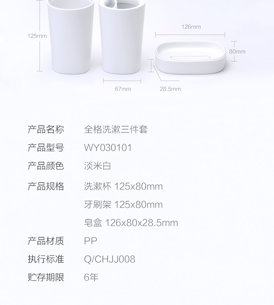 全格(Quange) WY030101 皂盒*1,漱口杯*2 简约洗漱三件套 淡米白(单位:组)