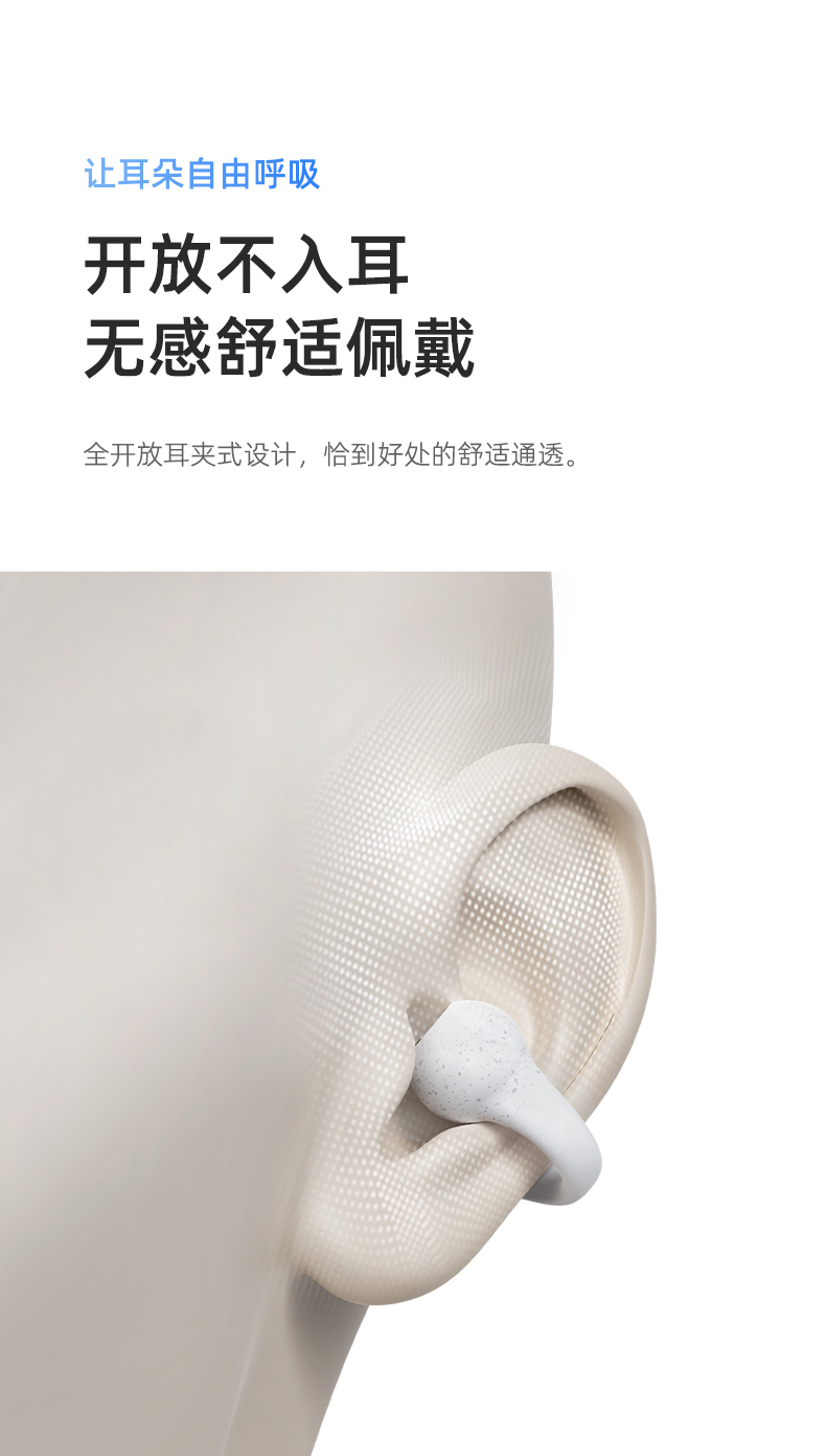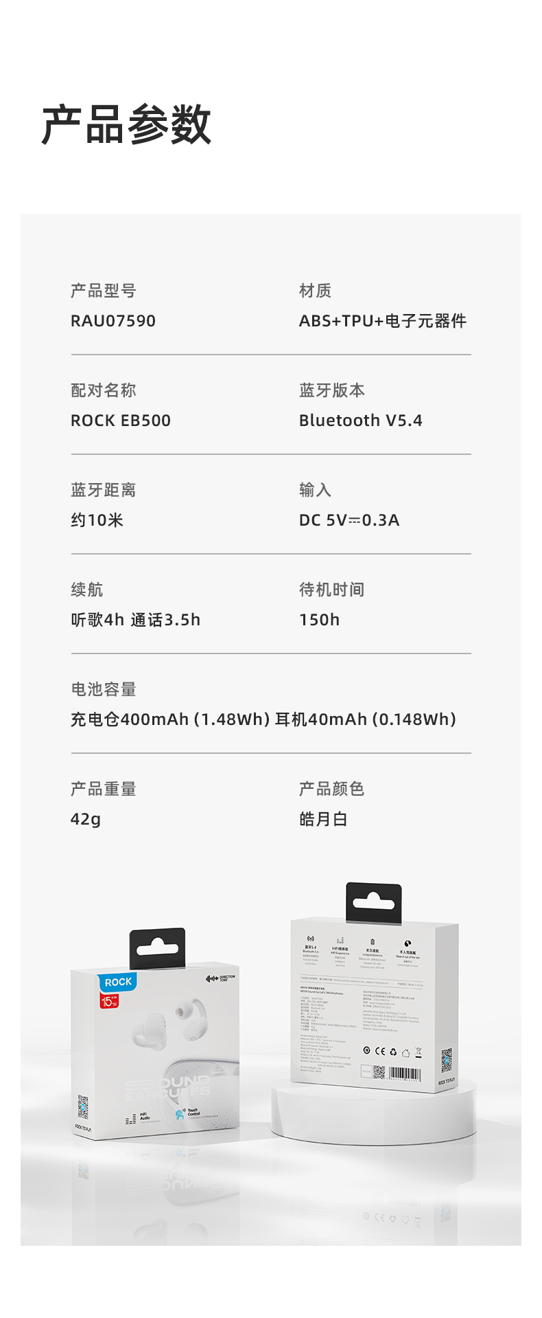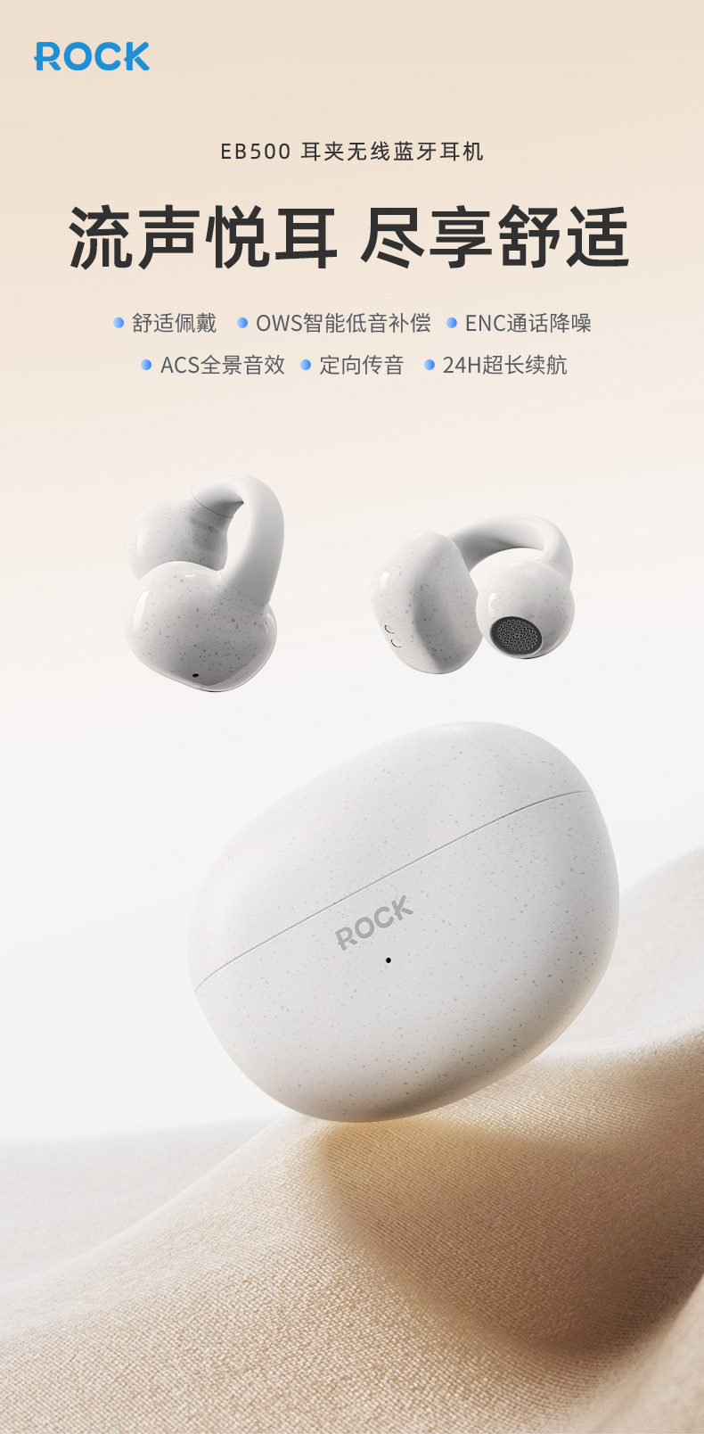 洛克(ROCK) 耳夹无线蓝牙耳机 RAU07590 电池容量:充电仓400mAh 皓月白(单位:副)