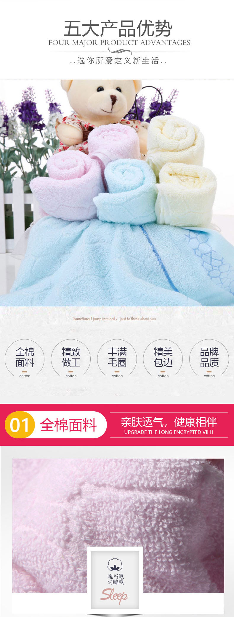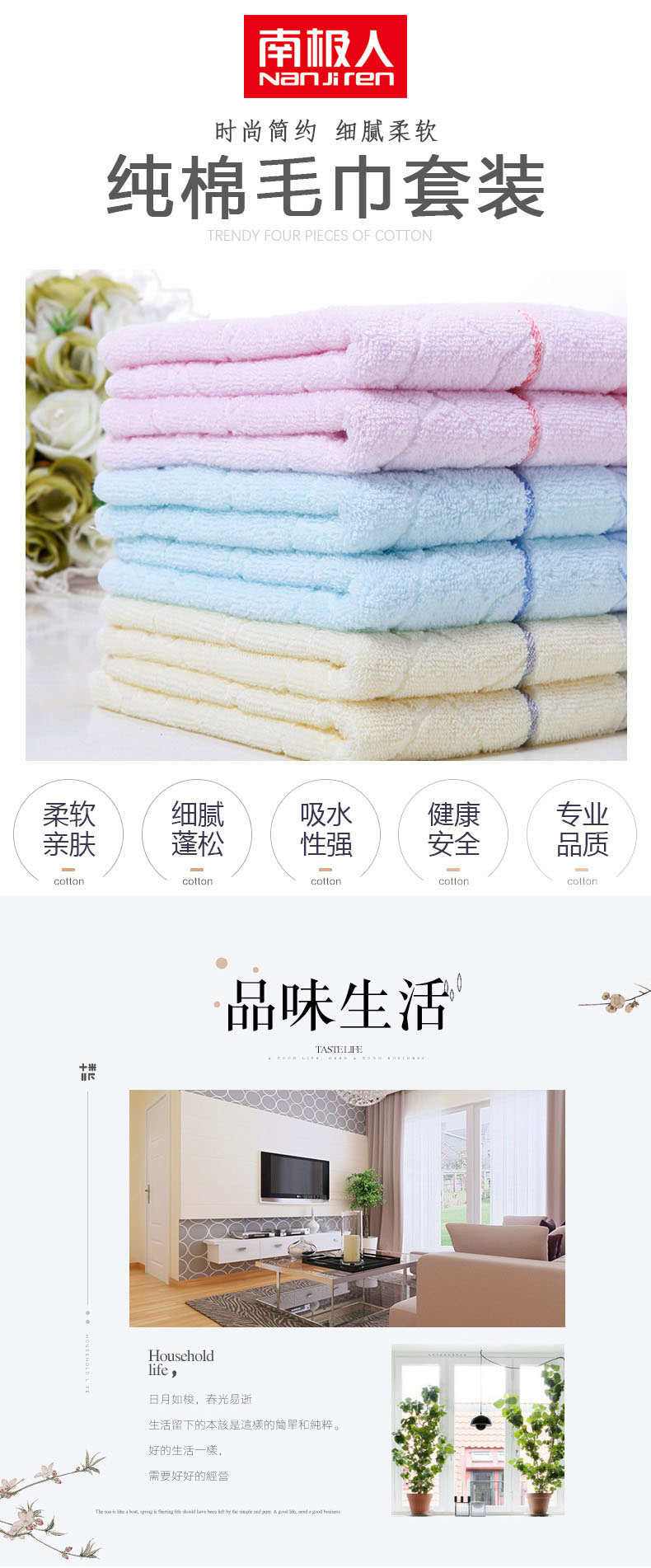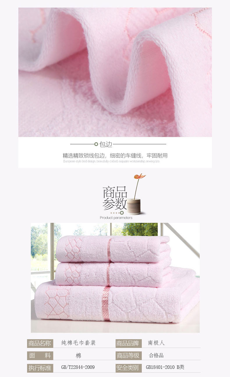 南极人 N08005-1 34*74cm*四条装 纯棉提花柔软亲肤毛巾 混色(单位:组)