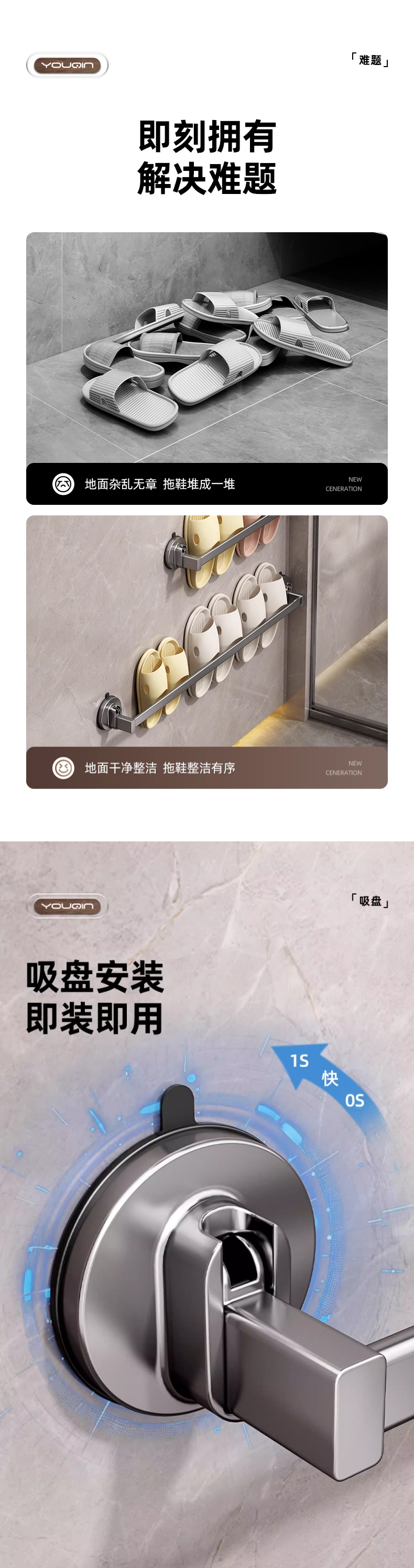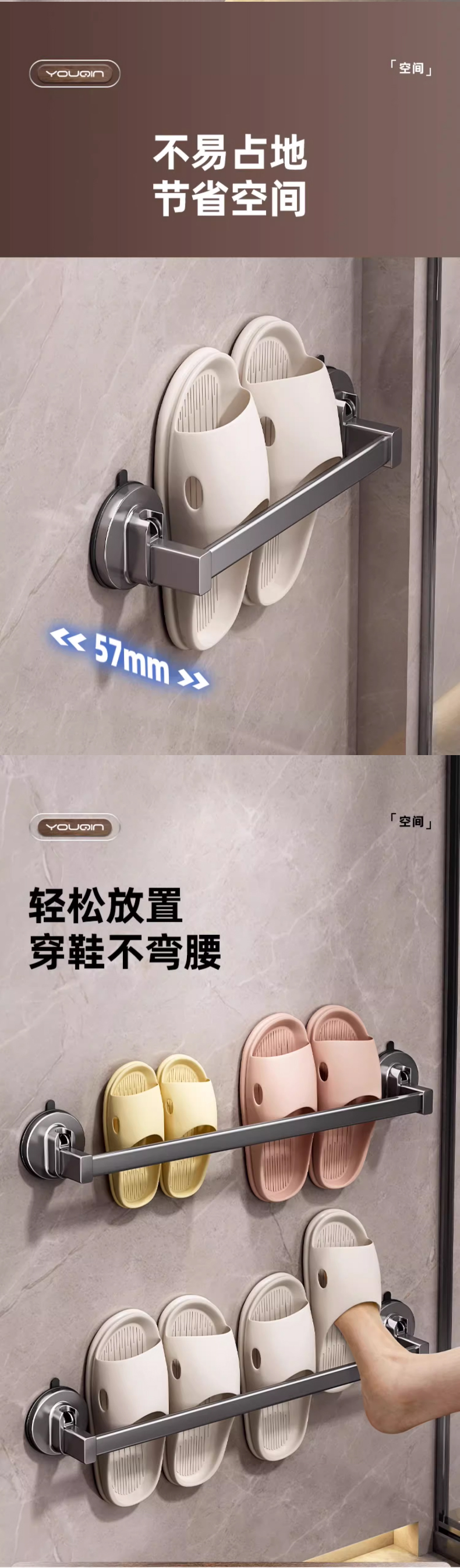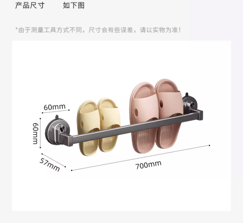 优勤(YOUQIN) JR-A7124XPDG70CM-QHS 70*5.7*6cm 吸盘三人拖鞋架免打孔 枪灰色(单位:个)