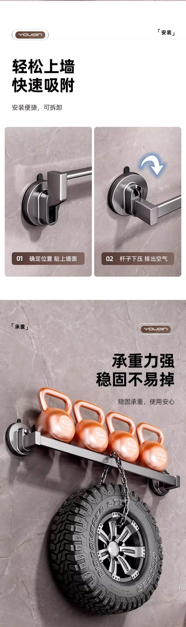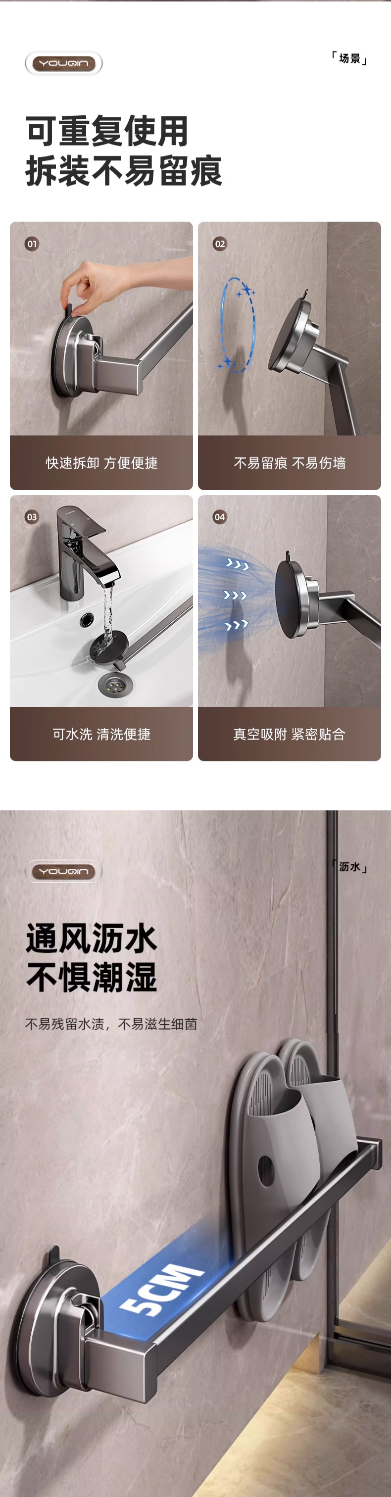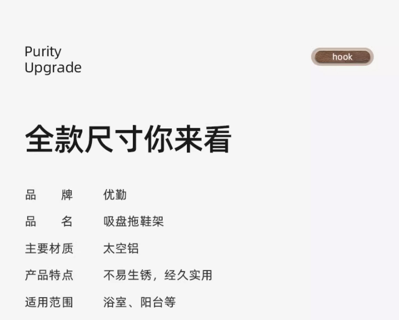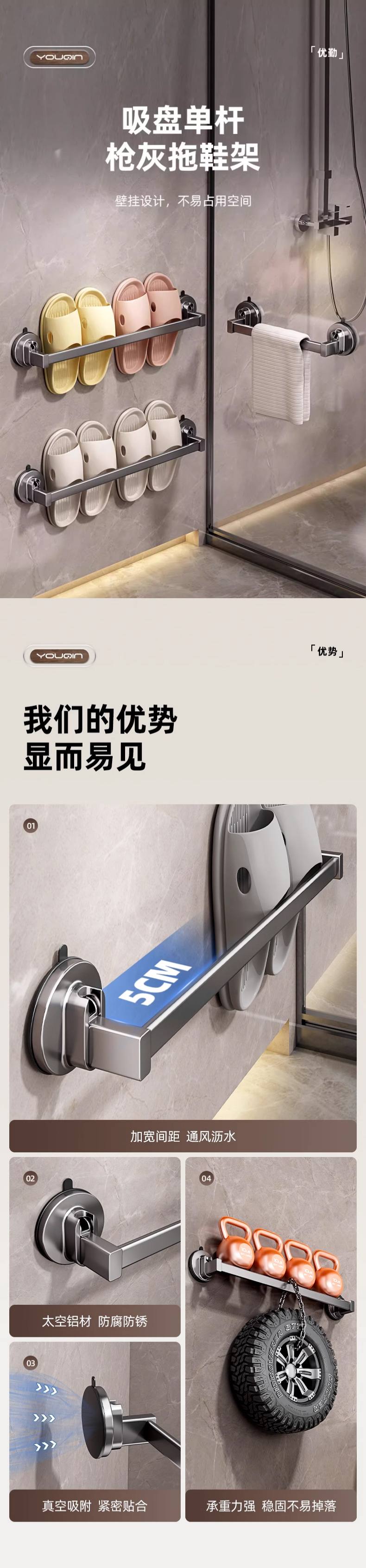 优勤(YOUQIN) JR-A7124XPDG70CM-QHS 70*5.7*6cm 吸盘三人拖鞋架免打孔 枪灰色(单位:个)