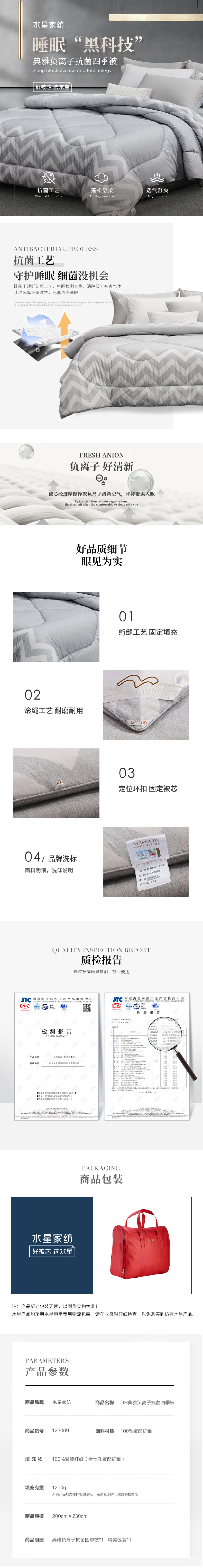 水星家纺典雅负离子抗菌四季被200*230cm(单位:床) 灰色