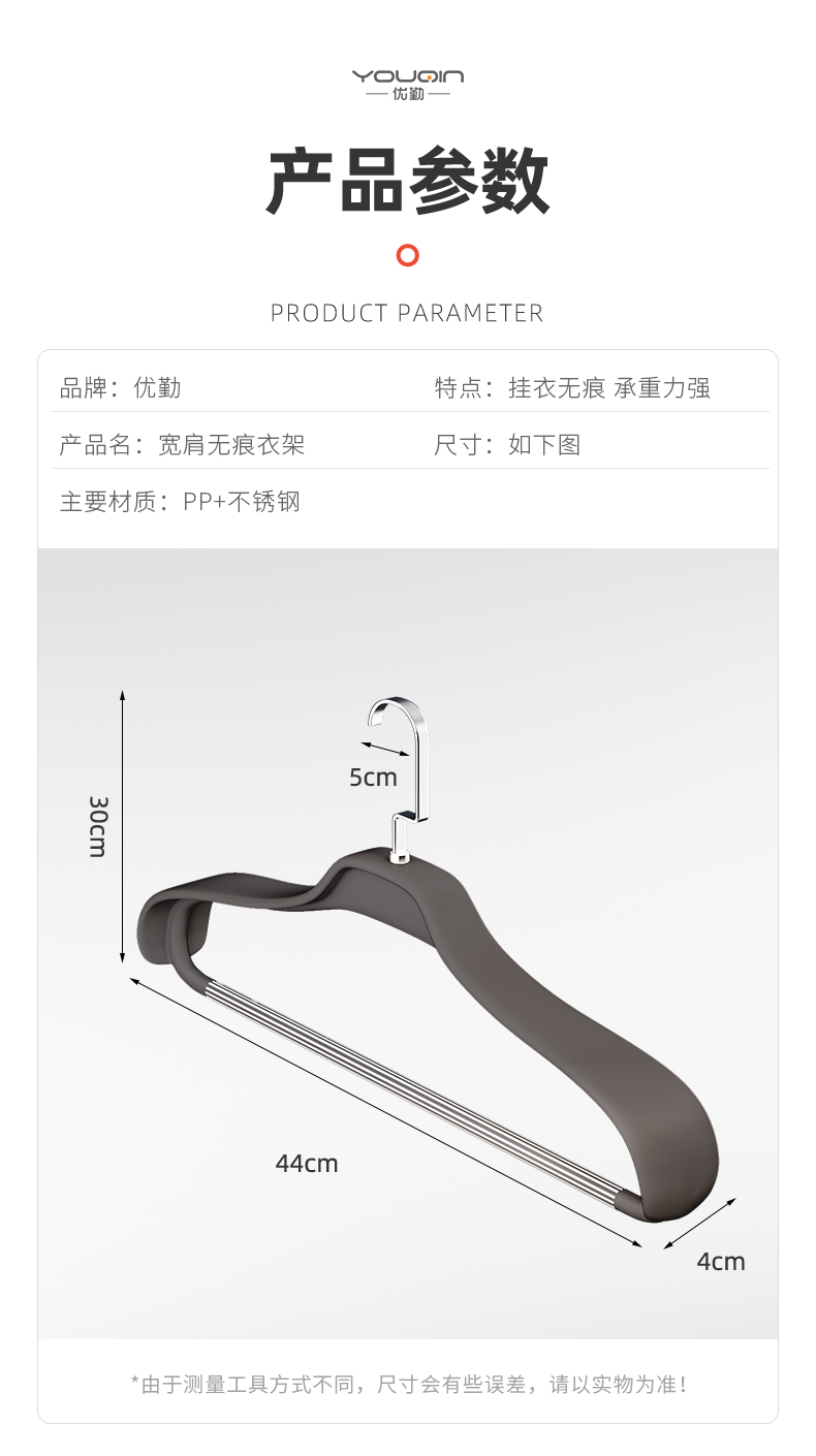 优勤(YOUQIN) R-703NSKJYJWZZ-HS*10 44*30*4cm/10个装 大衣专用衣服挂架无痕 灰色(单位:套)