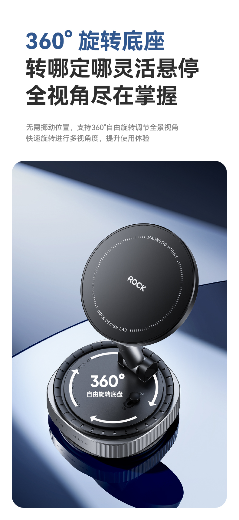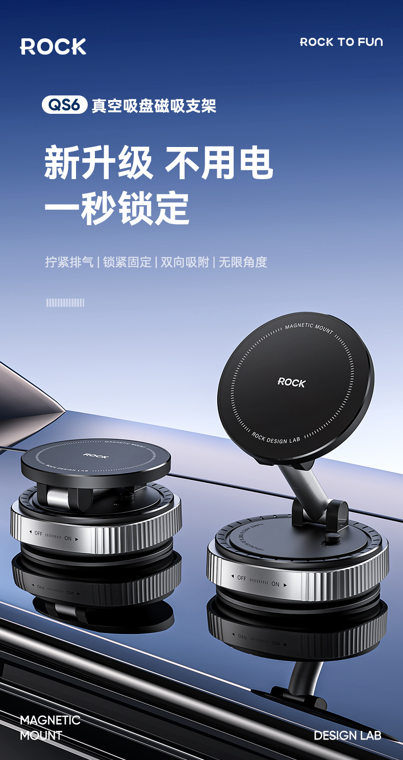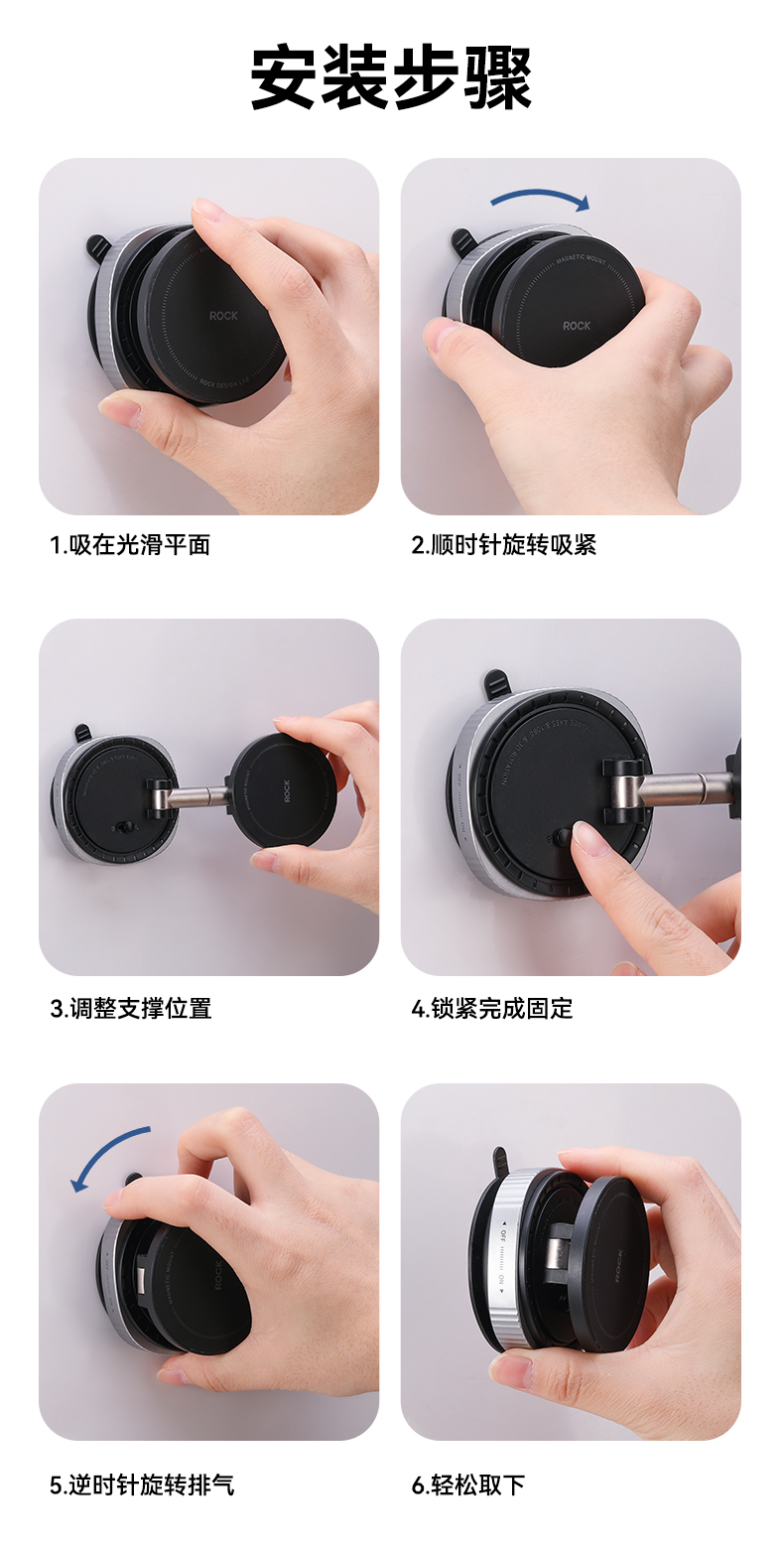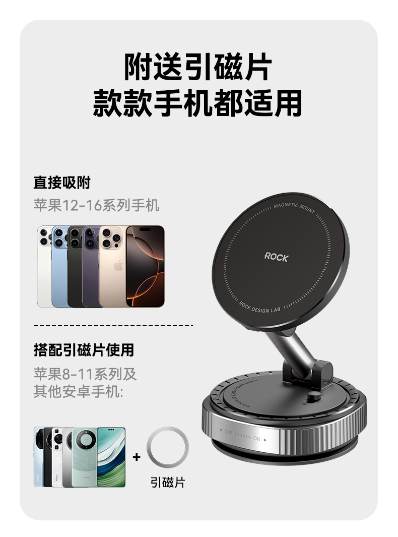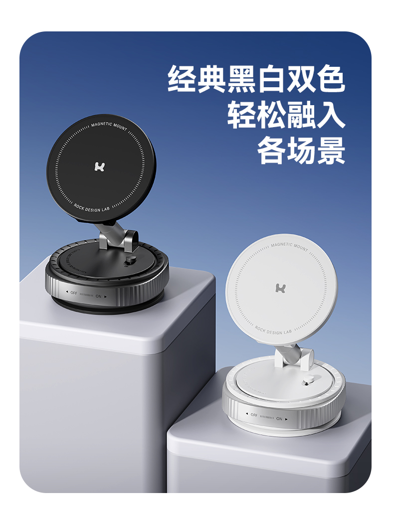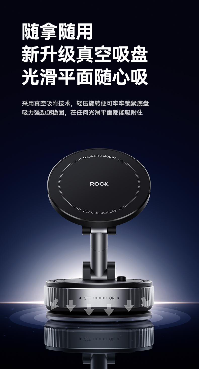 ROCK RPH1016 重量: 约100g 真空吸盘磁吸手机支架 黑色(单位:个)