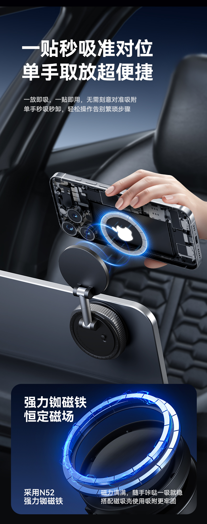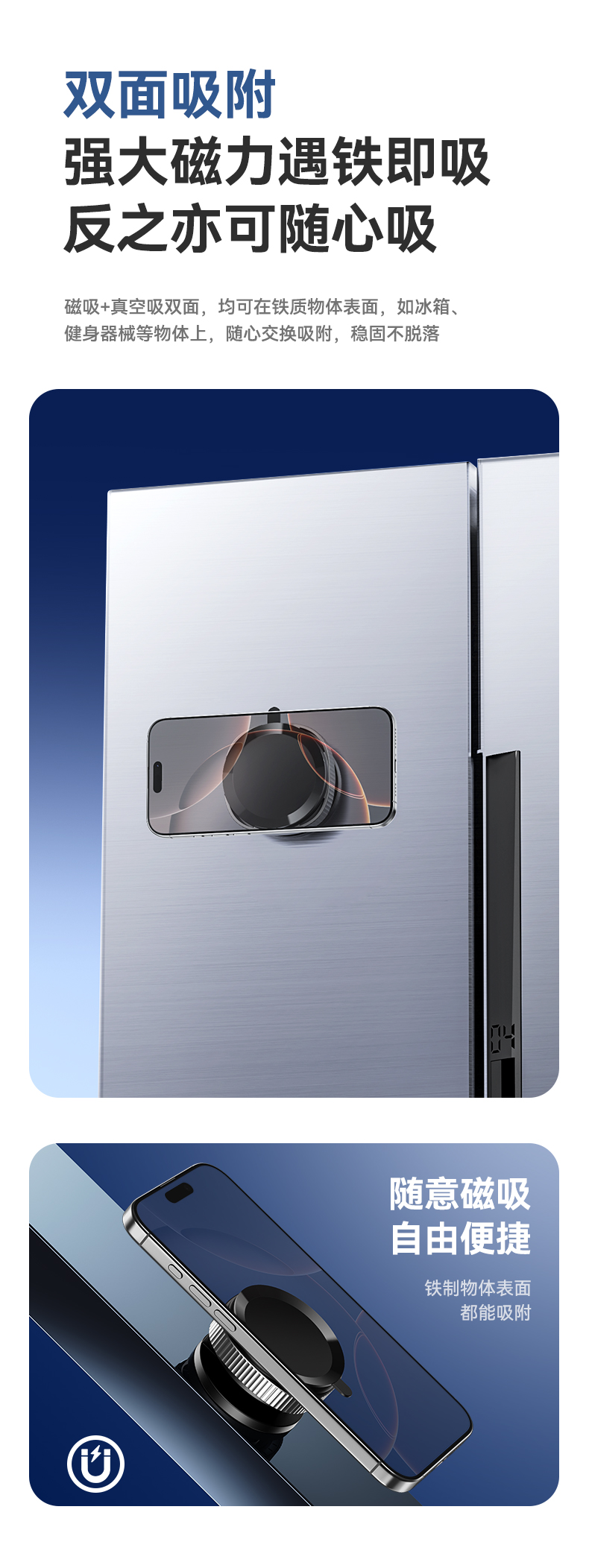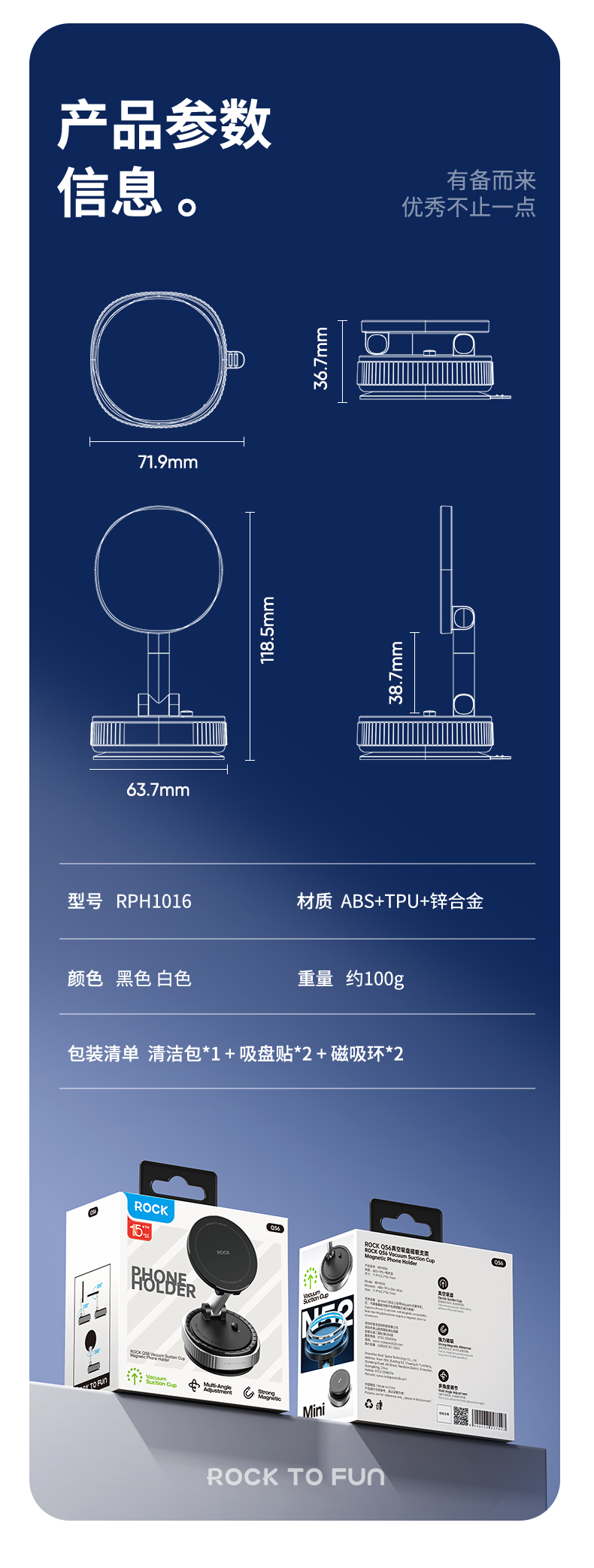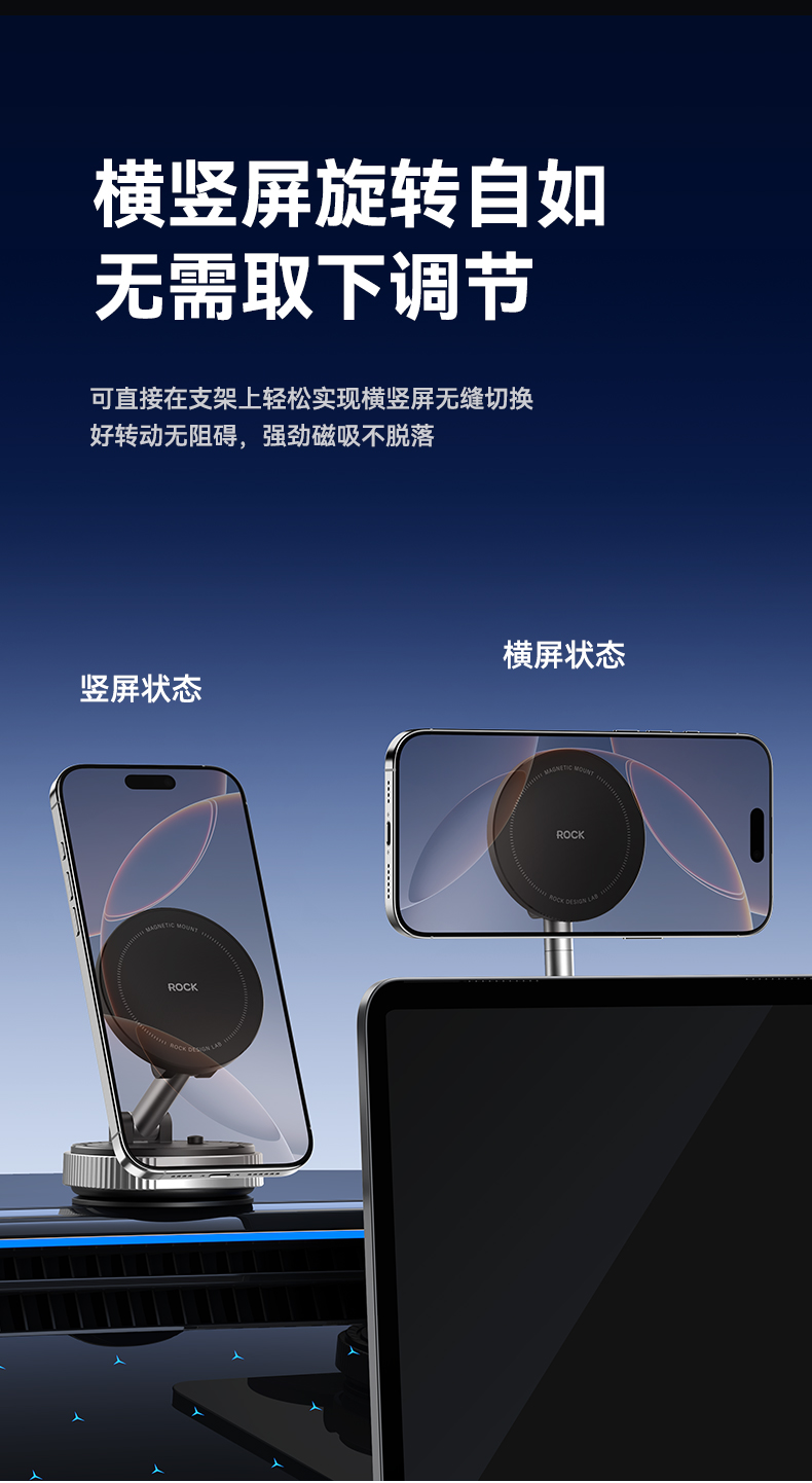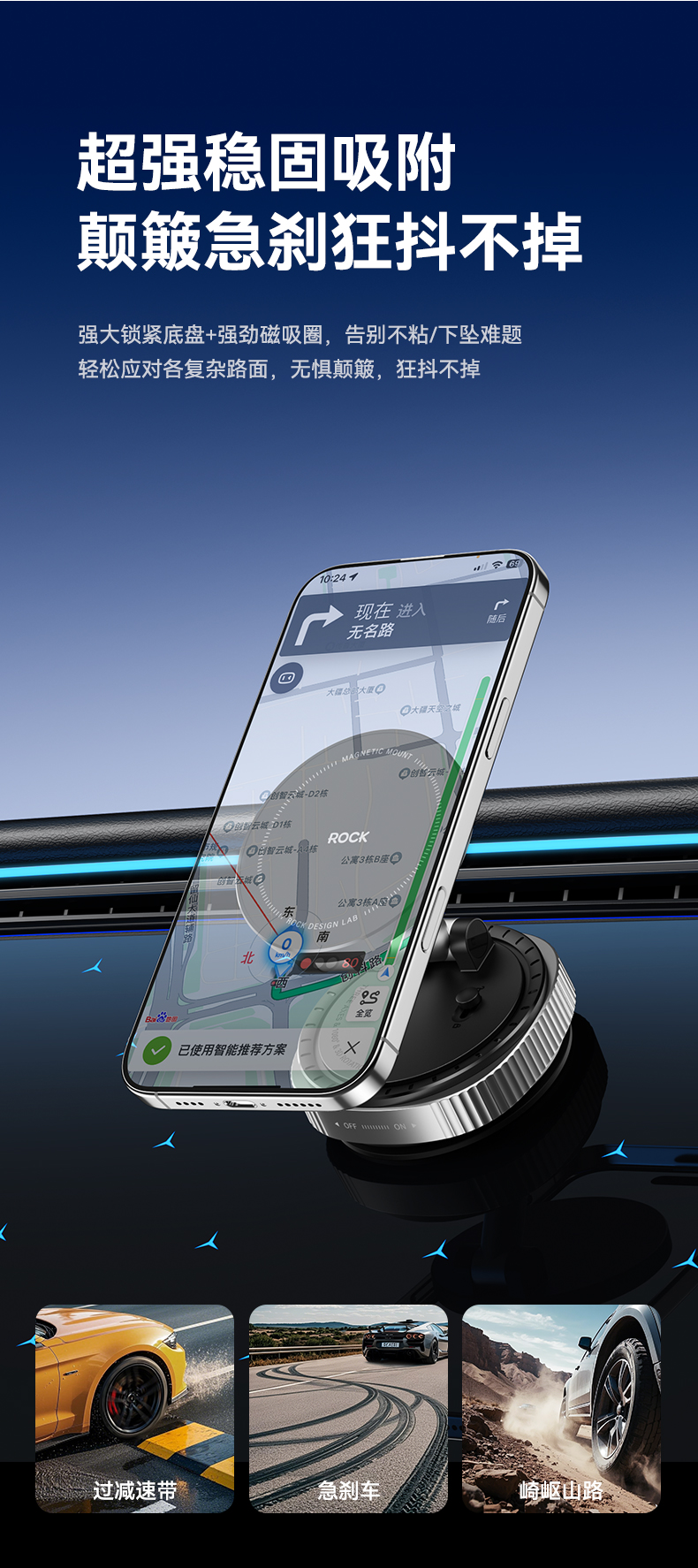 ROCK RPH1016 重量: 约100g 真空吸盘磁吸手机支架 黑色(单位:个)