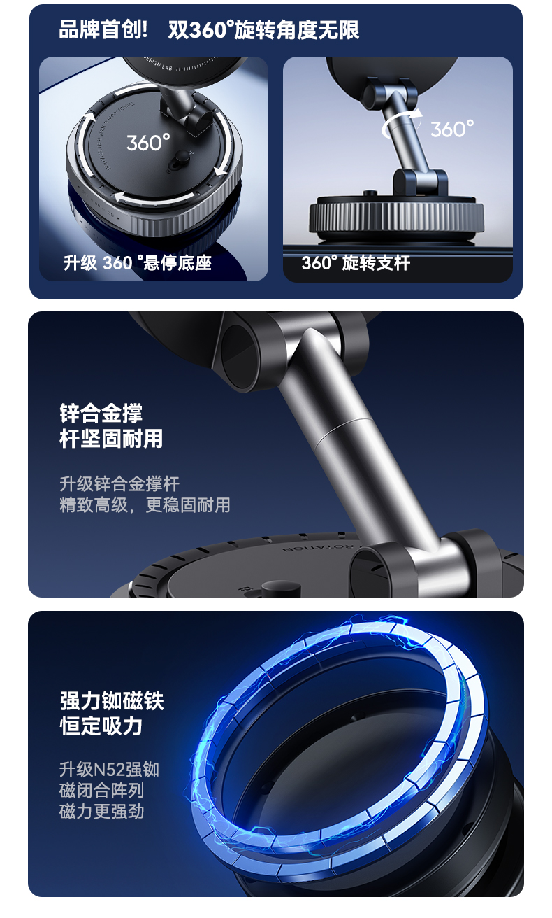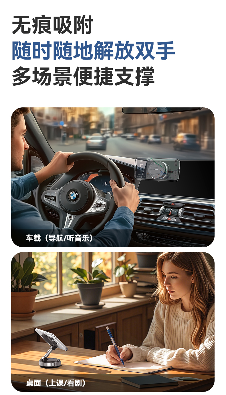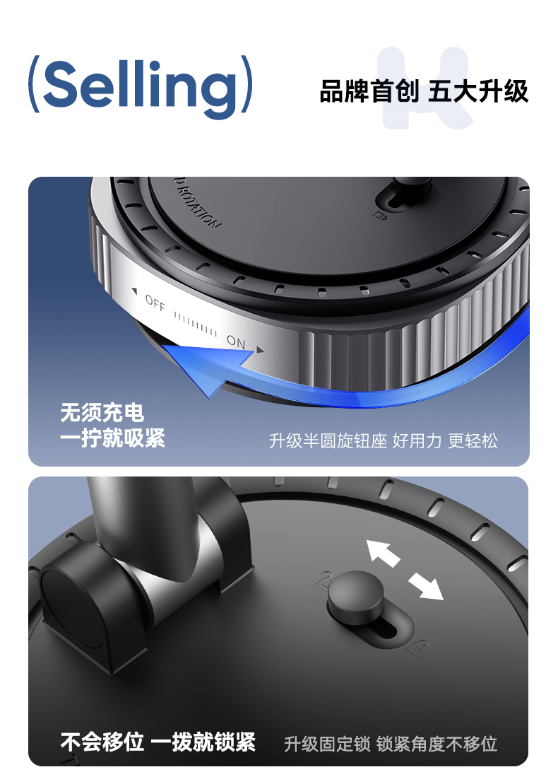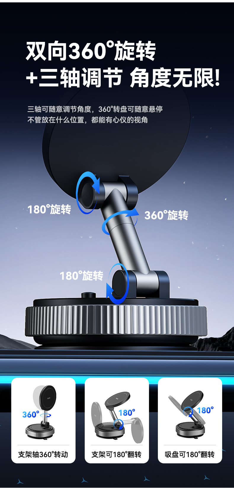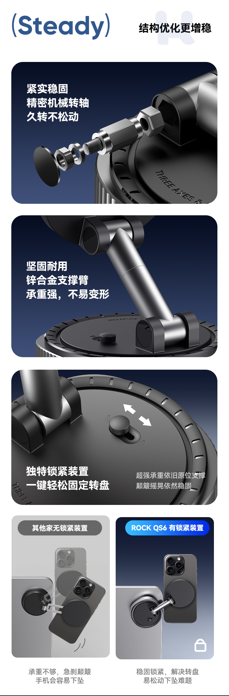 ROCK RPH1016 重量: 约100g 真空吸盘磁吸手机支架 黑色(单位:个)