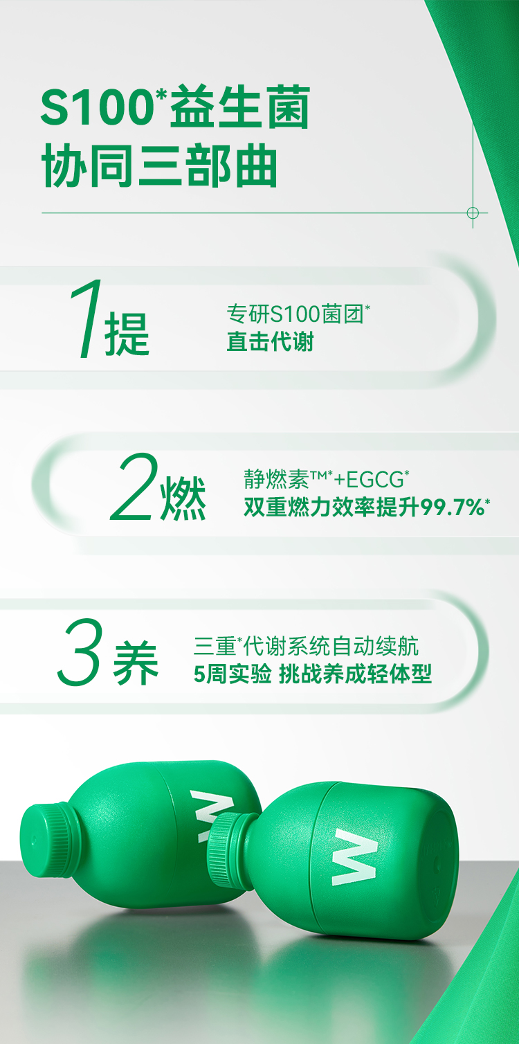 WonderLab S100益生菌 2g*10瓶/盒 提升代谢 体重管理 松石绿(单位:盒)