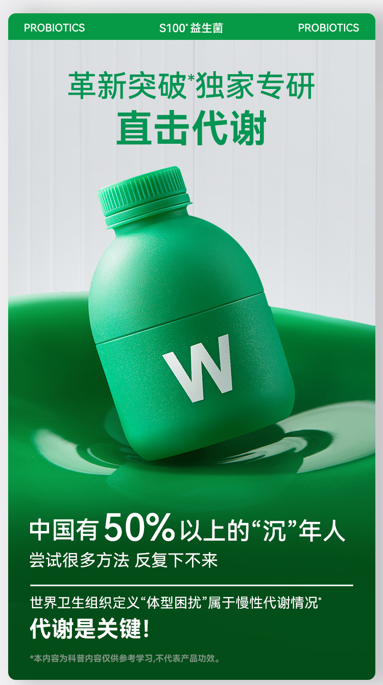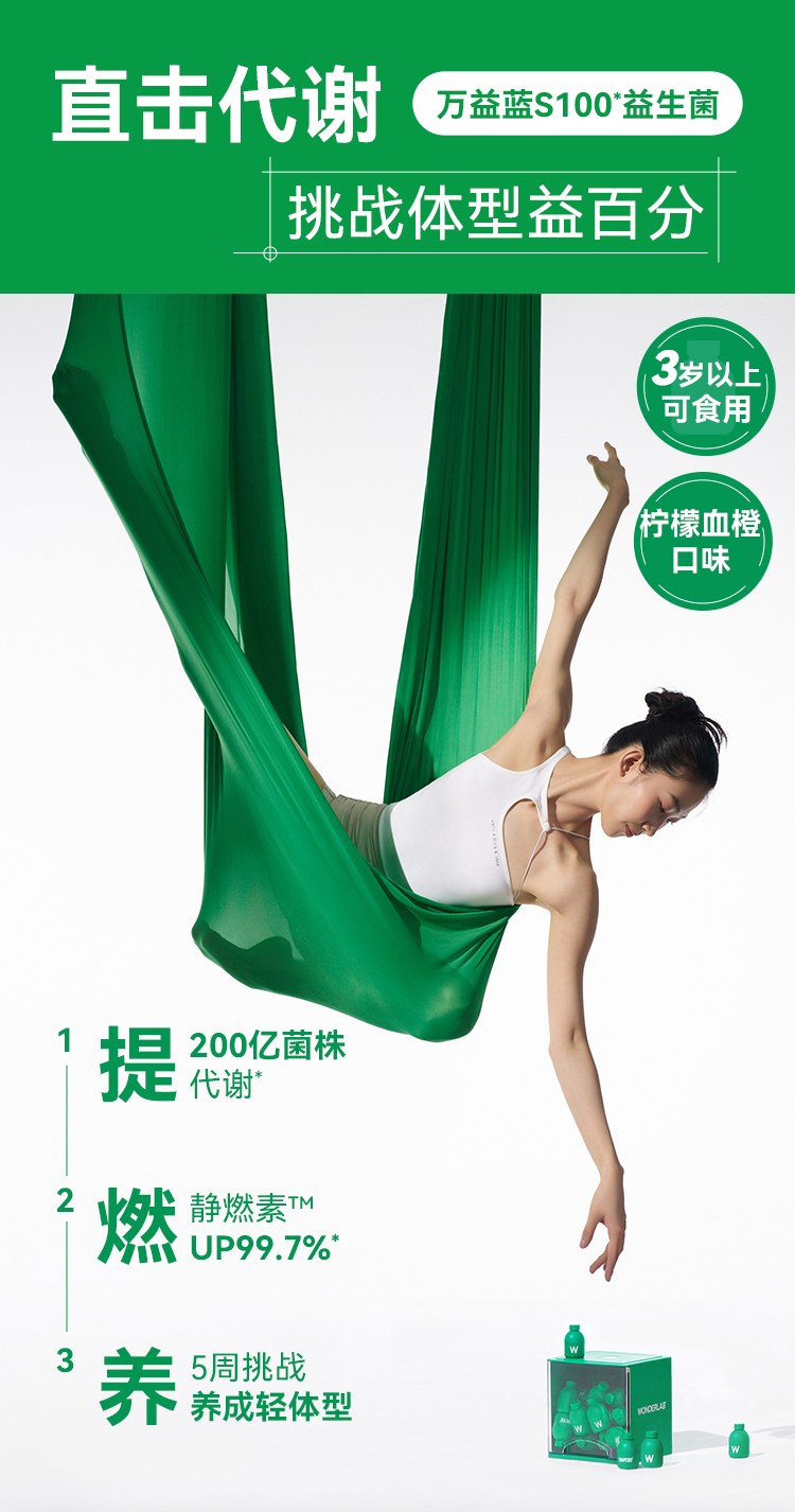 WonderLab S100益生菌 2g*10瓶/盒*3盒 提升代谢 体重管理 松石绿(单位:组)