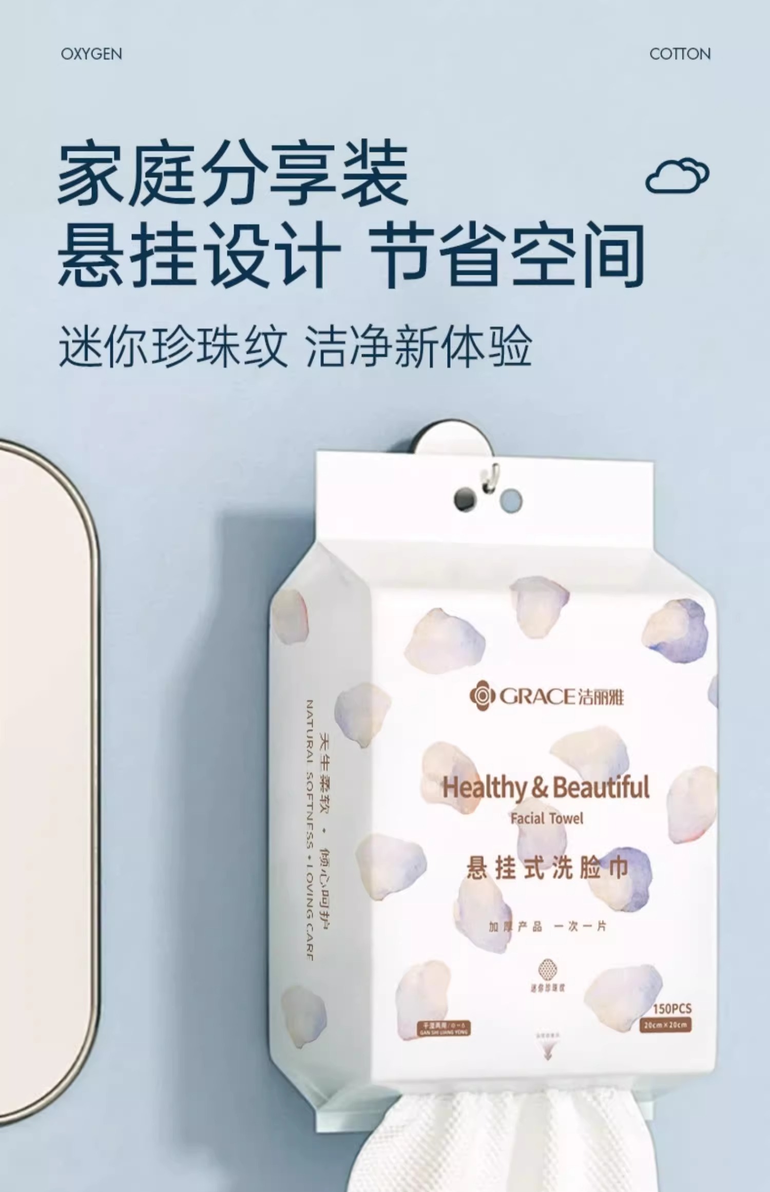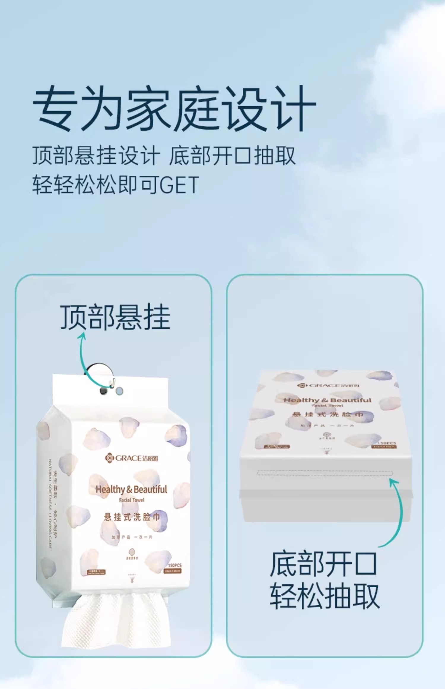 洁丽雅(Grace) 悬挂式洗脸巾 MRJ856 150抽单包装 白色(单位:包)