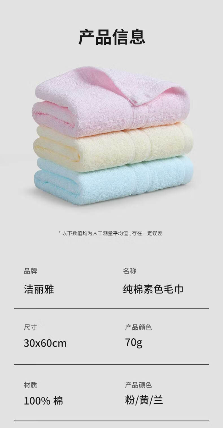 洁丽雅(Grace) 纯棉毛巾 6734 3条装 混色(单位:组)