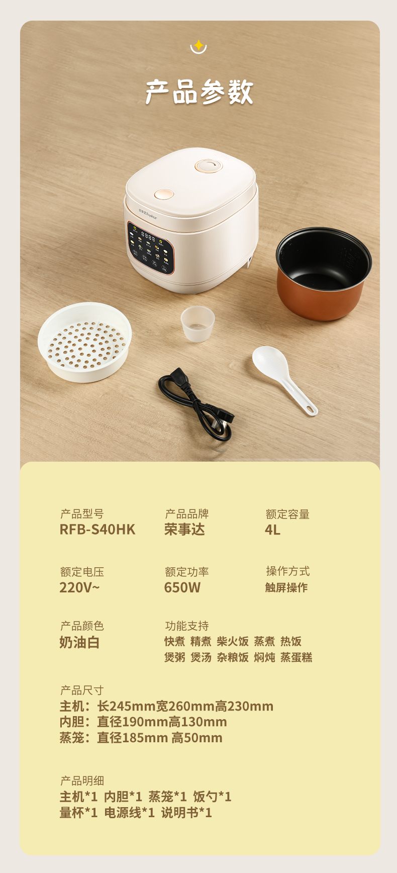 荣事达(Royalstar) RFB-S40HK 4L 电饭煲 象牙色(单位:台)