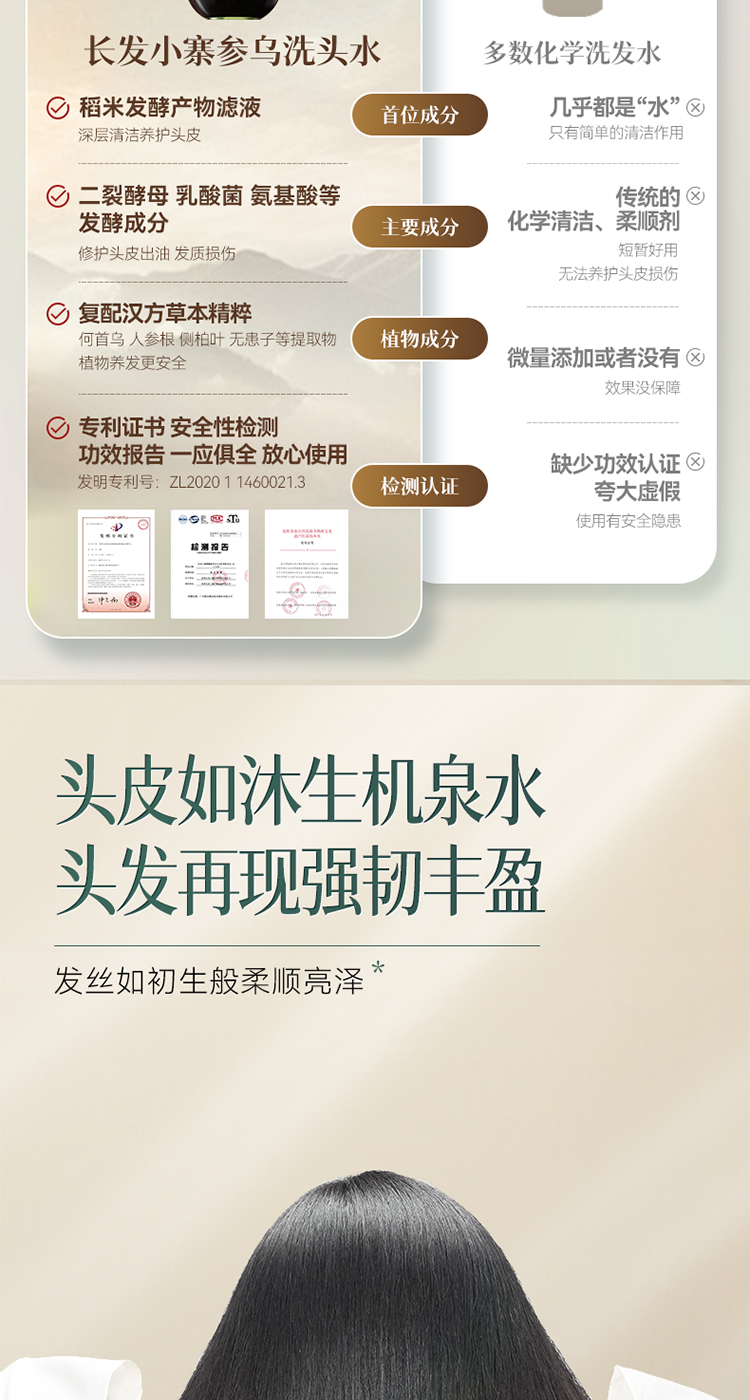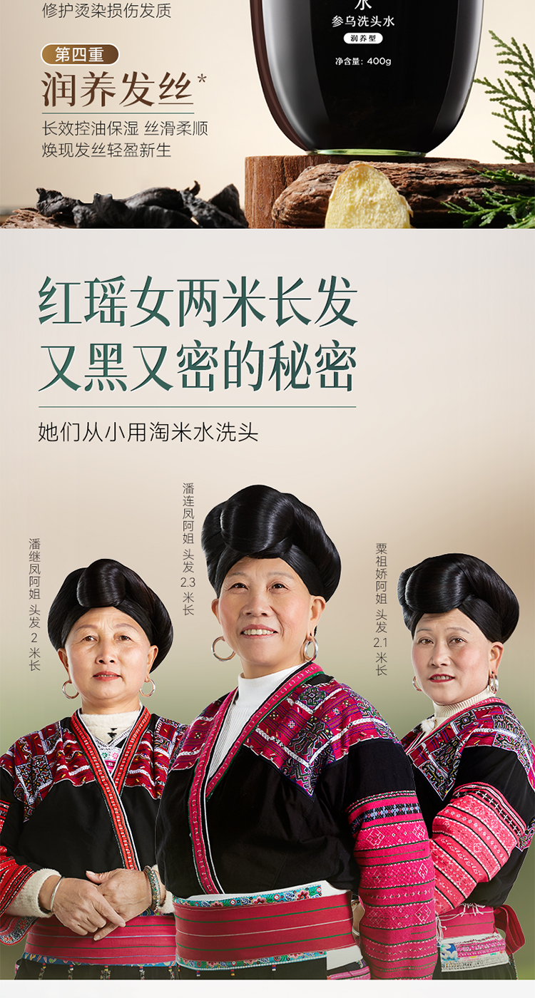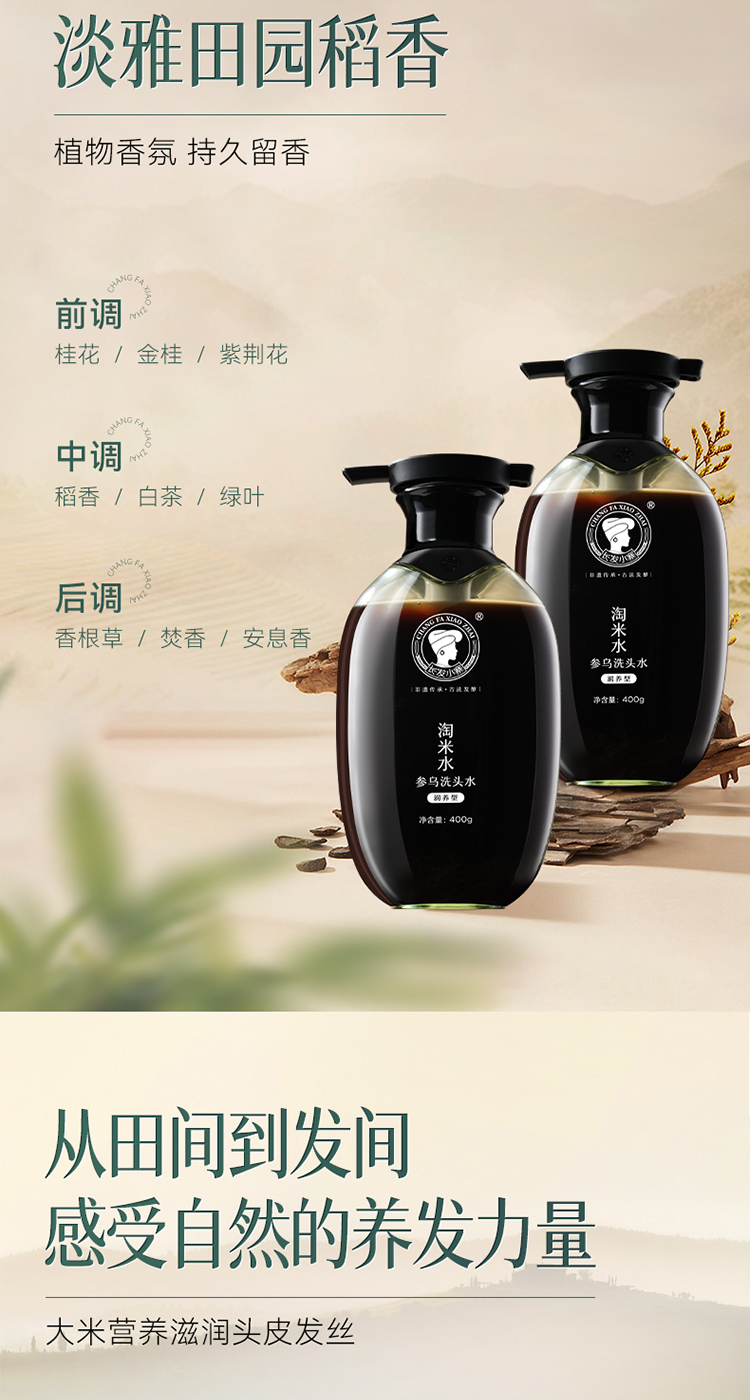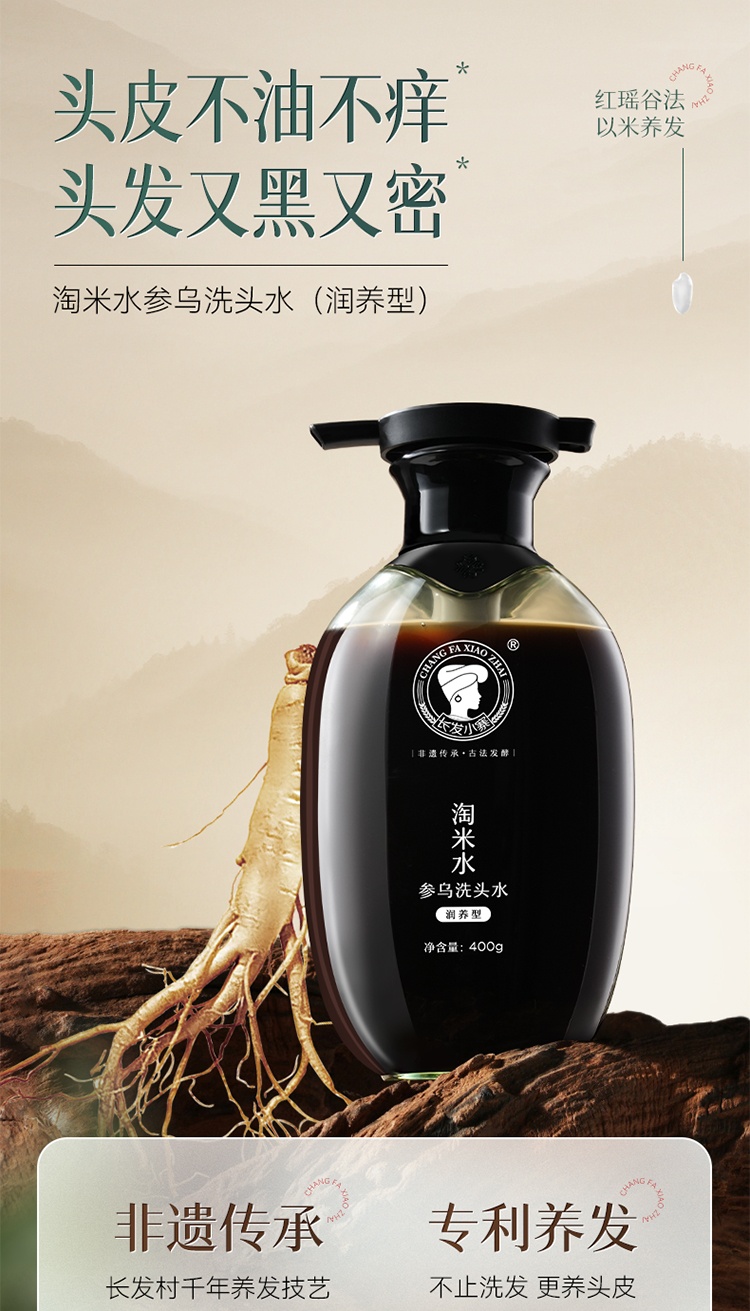长发小寨 (滋润型) 400g 淘米水参乌洗头水 黑色(单位:瓶)