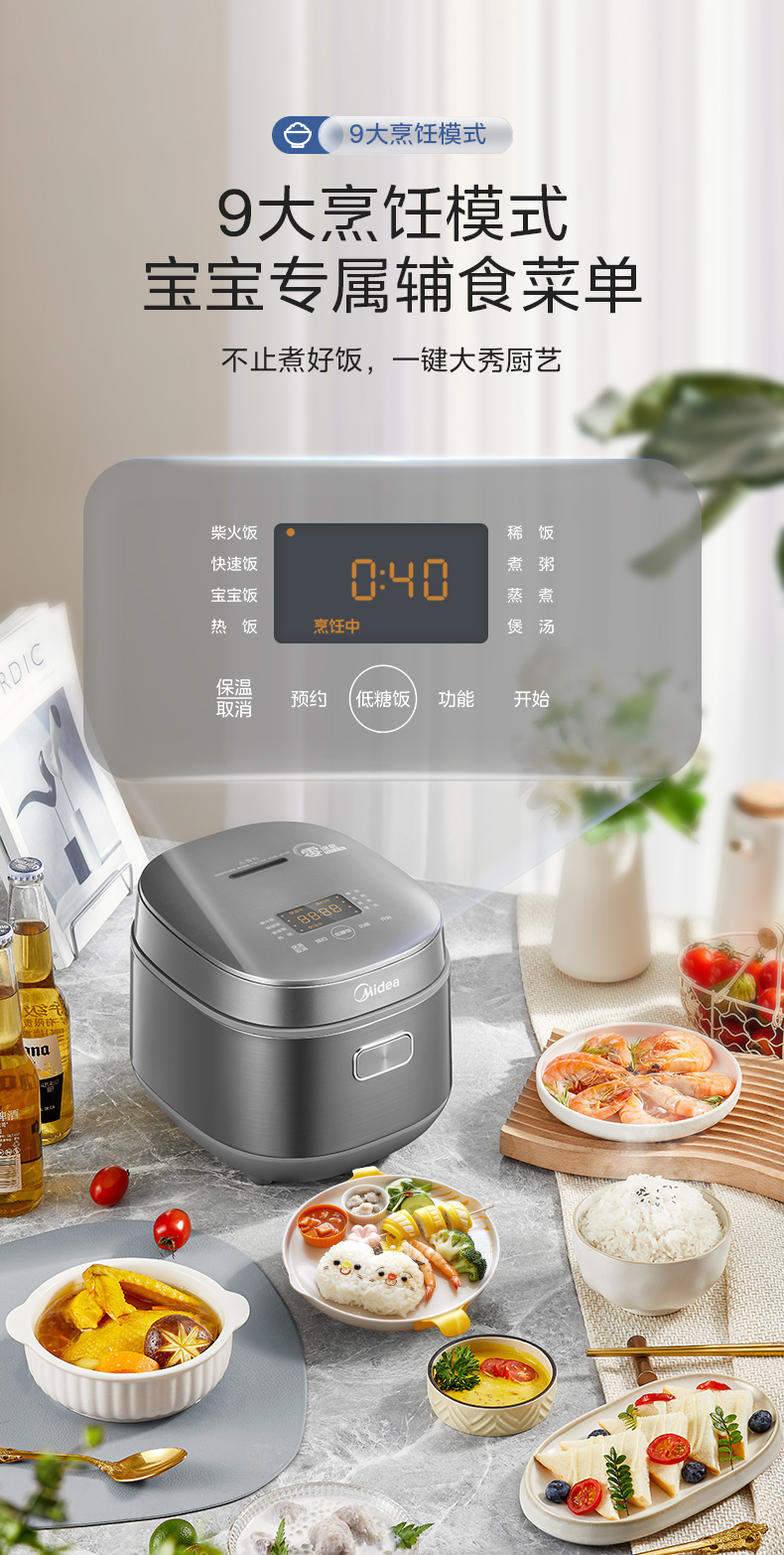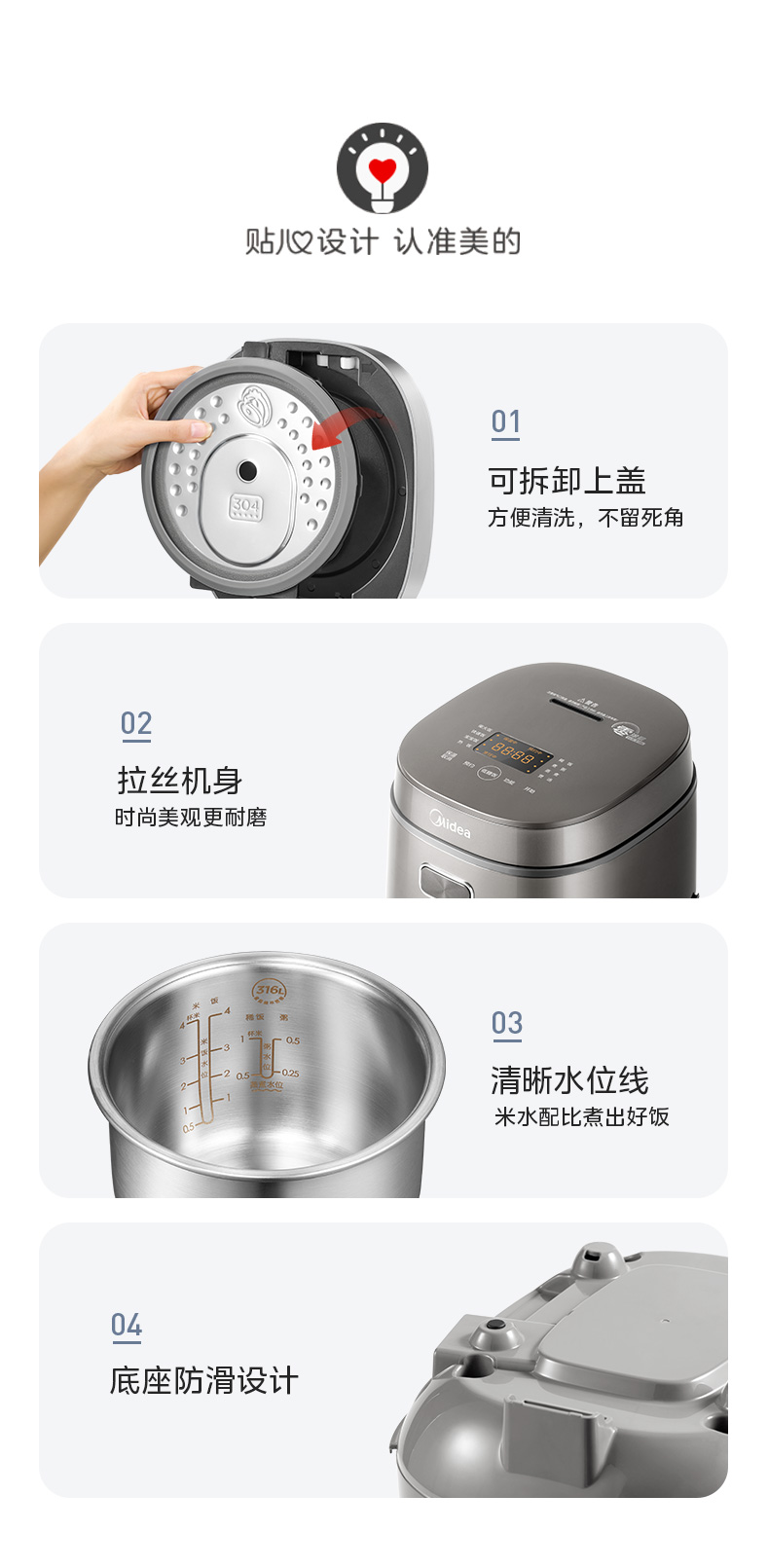 美的(Midea) 电饭煲 MB-AFB2022LS 2L 钛钢灰(单位:台)