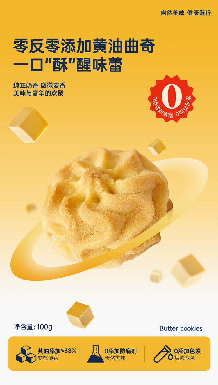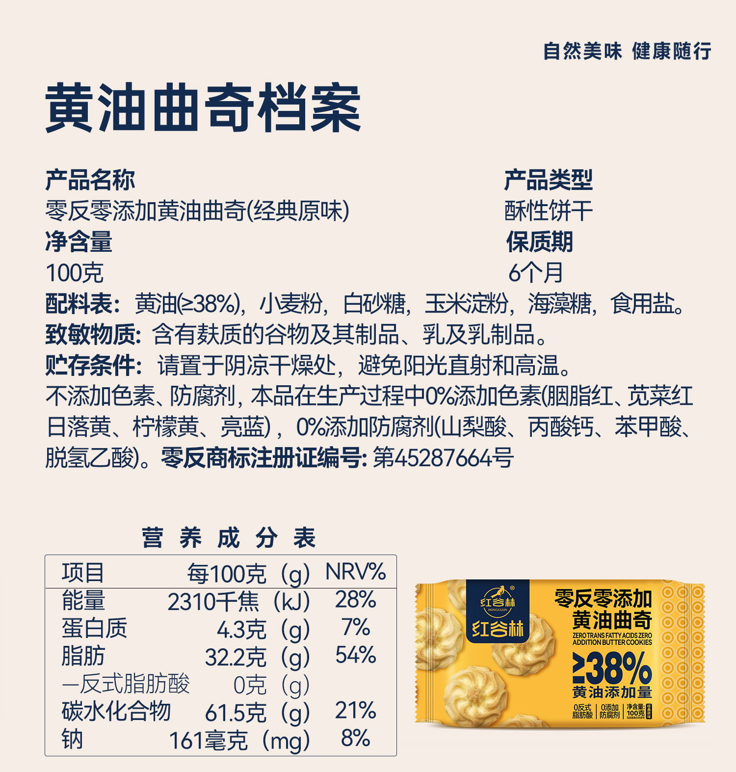 红谷林 零反零添加 黄油曲奇 (经典原味*2袋+巧克力味*1袋) 100g*3袋 拿铁色(单位:组)
